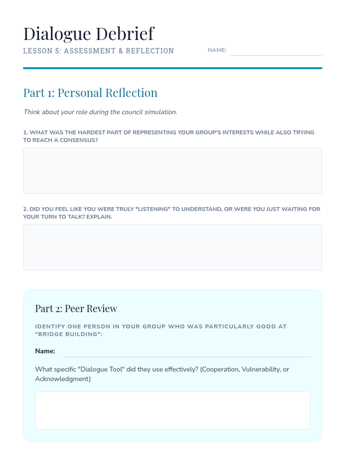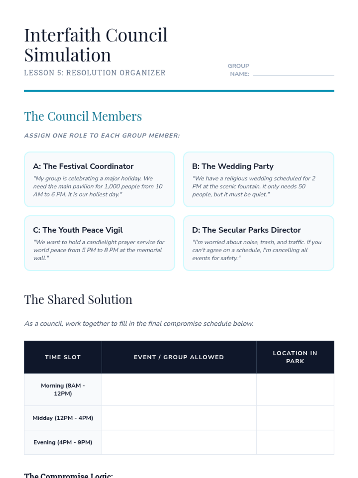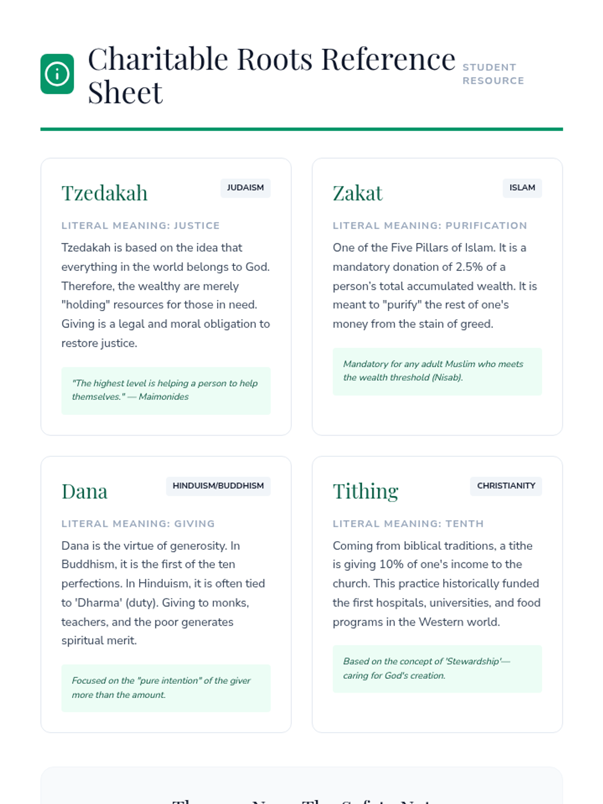 A 5-lesson sequence for 7th-grade students focused on the ethical frameworks of major world religions and their impact on society. Students evaluate how religious values shape laws, charity, conflict, and peace-building through discussion and case studies.