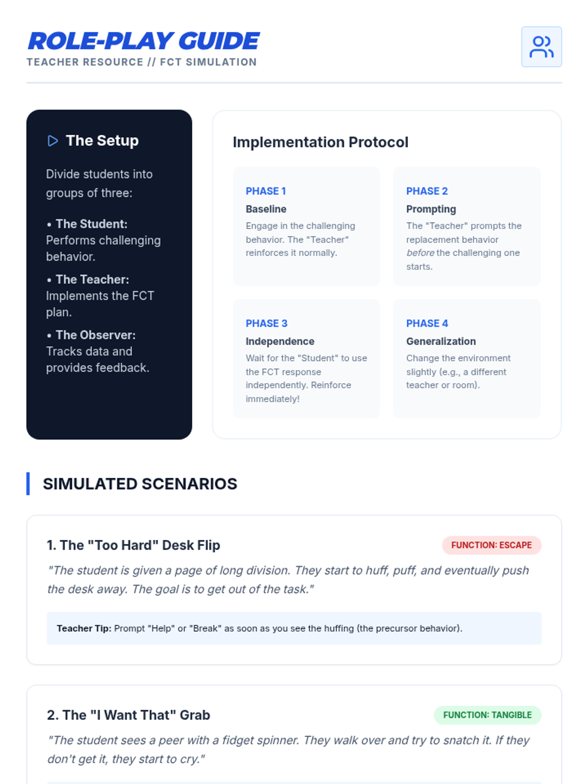This sequence teaches 12th-grade students how to replace challenging behaviors with adaptive skills. Students explore the ethics of behavior change, master Functional Communication Training, learn instructional techniques like shaping and chaining, and design comprehensive intervention plans based on differential reinforcement.