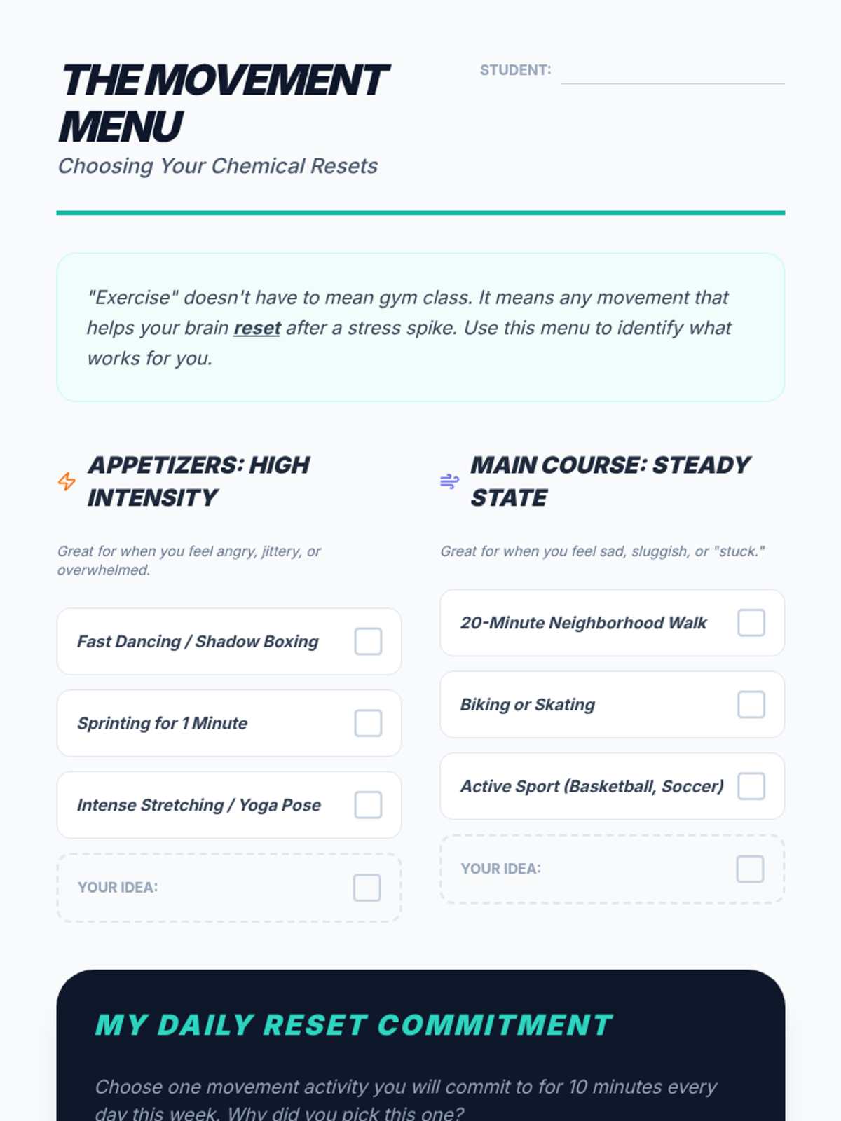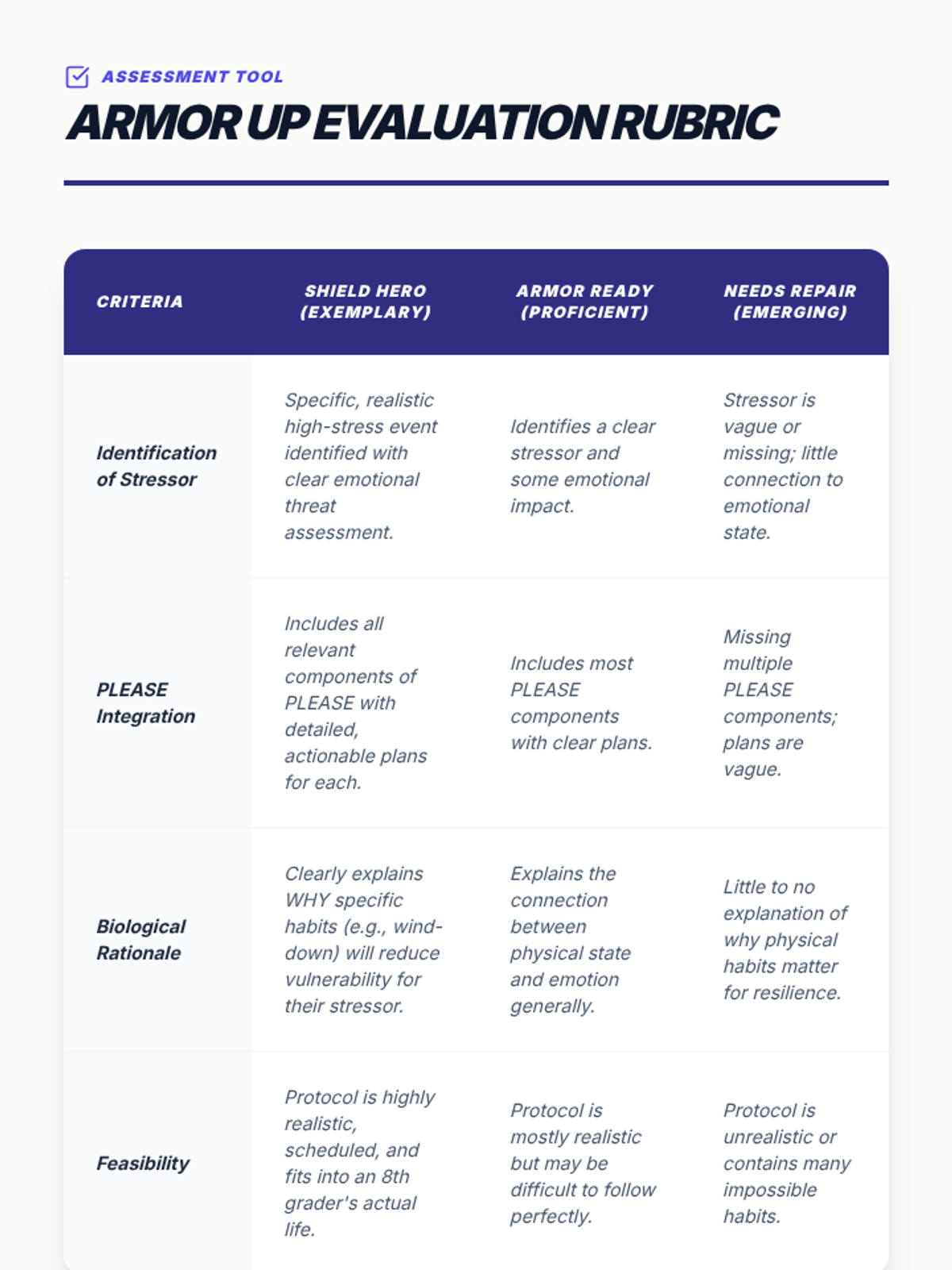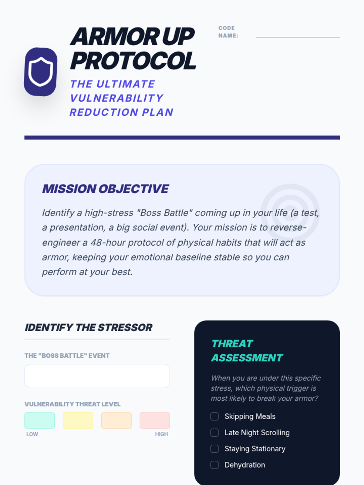 This 5-lesson sequence for 8th graders explores the DBT-based PLEASE skills to understand the biological foundations of emotional regulation. Students learn how managing physical health—sleep, nutrition, and movement—acts as 'armor' against emotional vulnerability and reactivity.