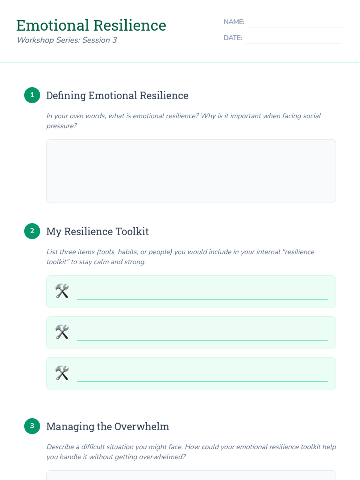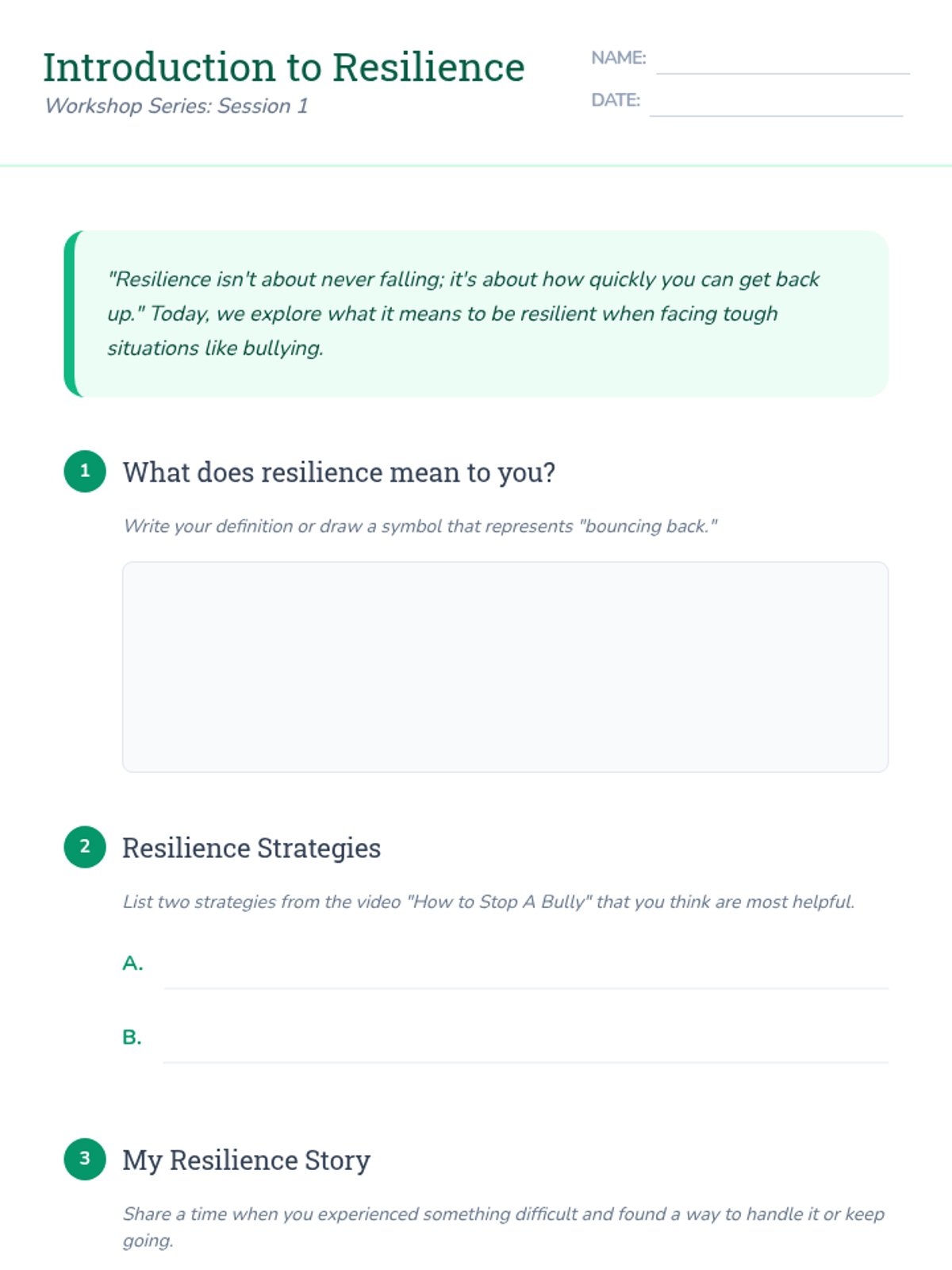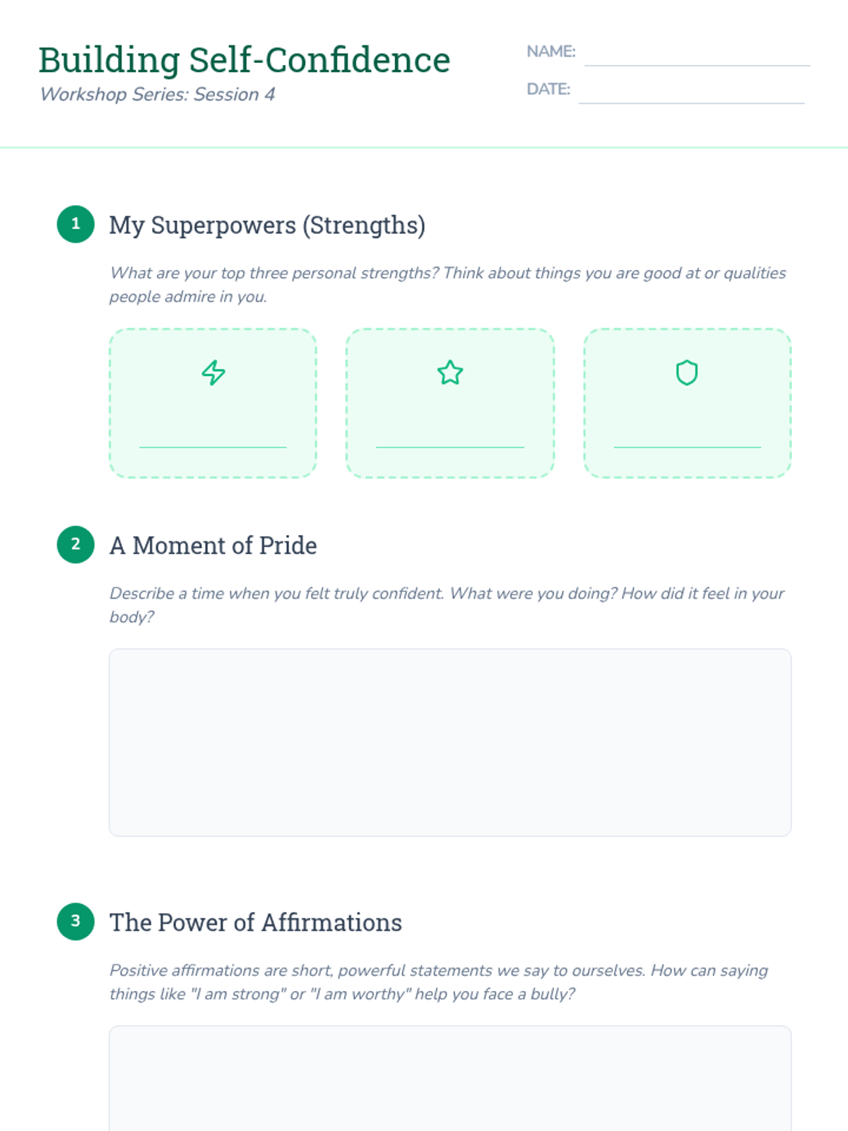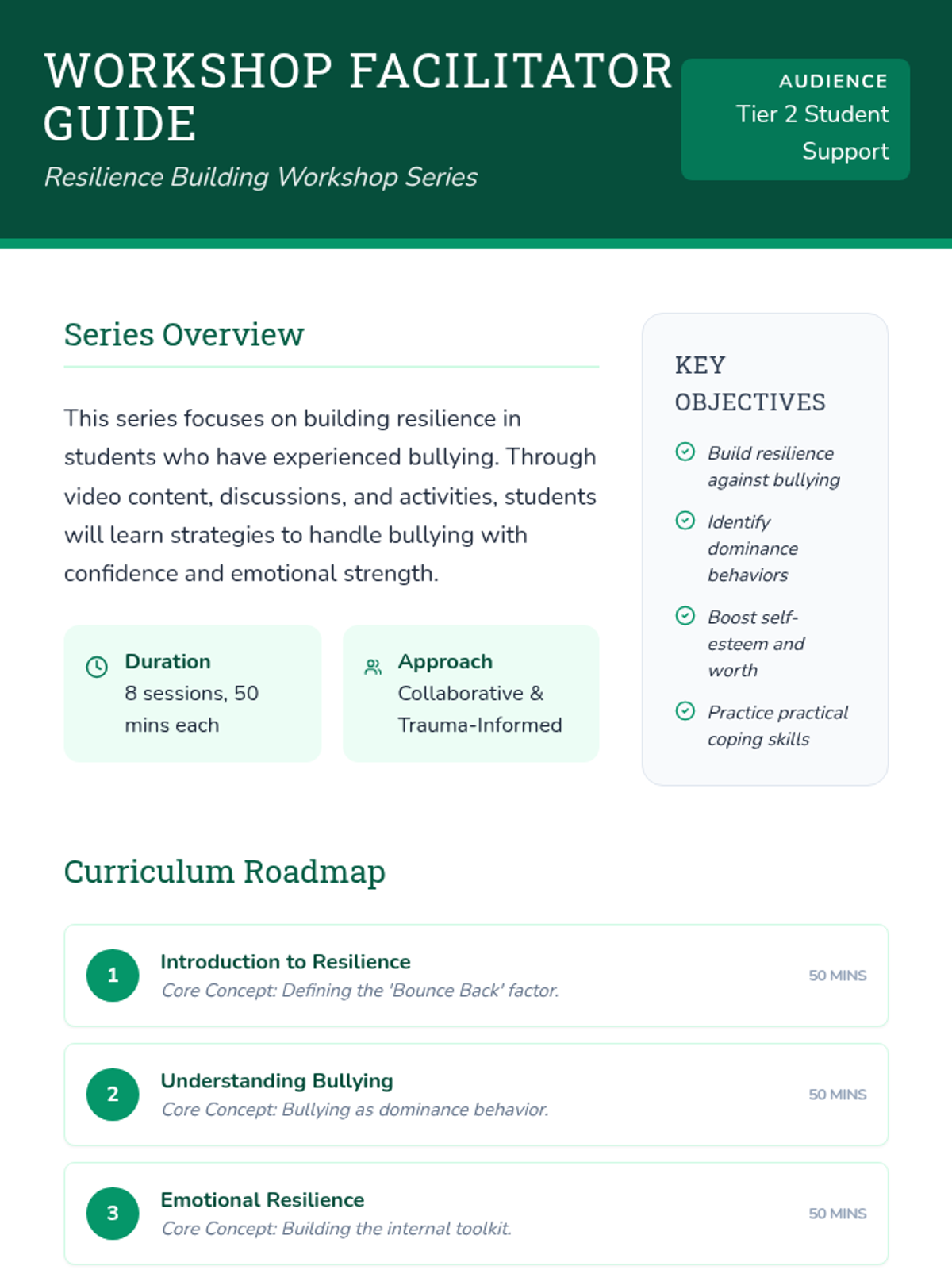 A comprehensive 8-session series designed to empower students who have experienced bullying with emotional strength, coping strategies, and a strong sense of self-worth.