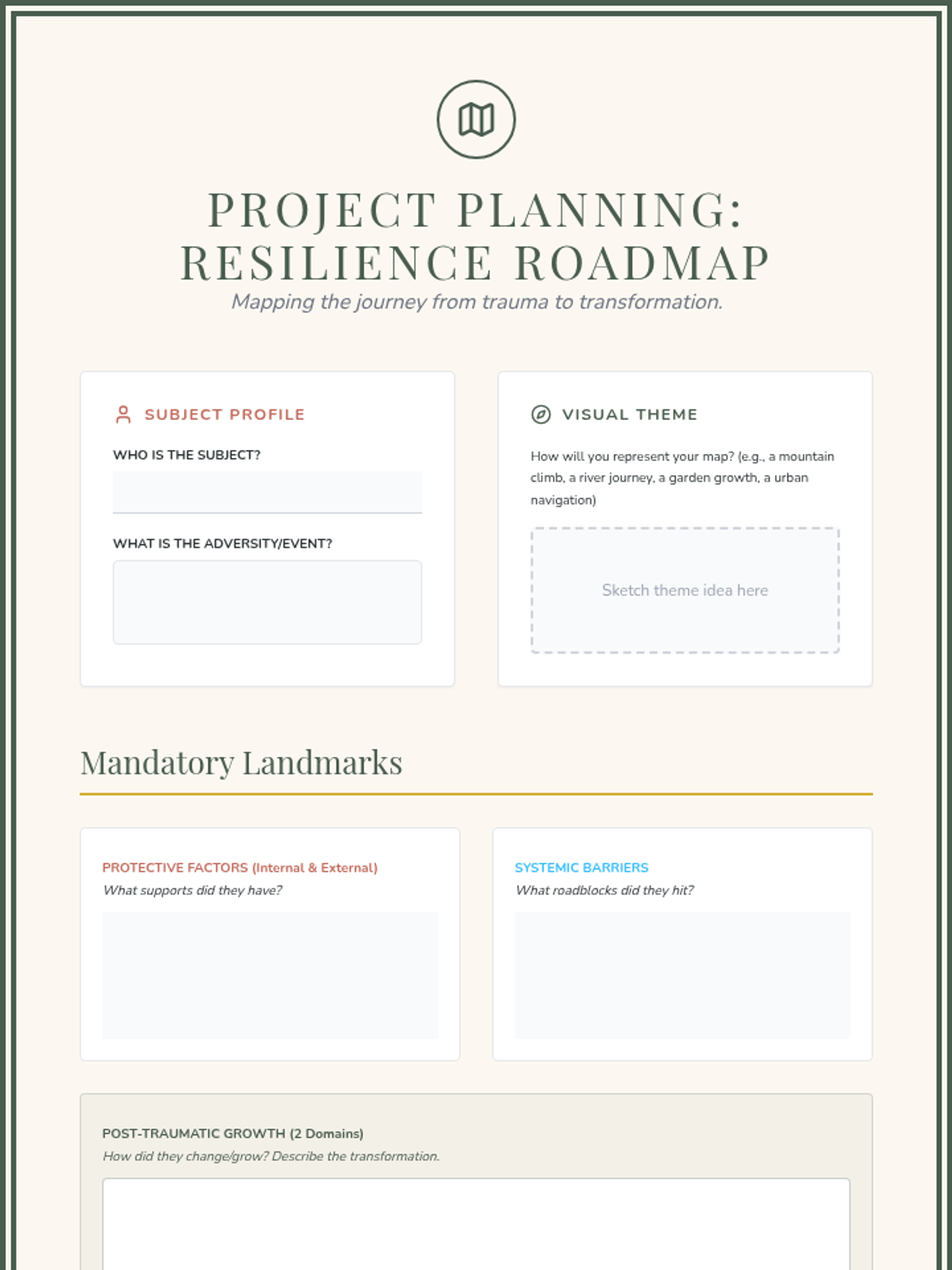 This project-based sequence explores resilience, protective factors, and Post-Traumatic Growth (PTG) for 10th-grade students. It shifts the focus from surviving trauma to thriving, investigating how individuals and communities rebuild and find meaning after adversity through personal strengths and community support systems.