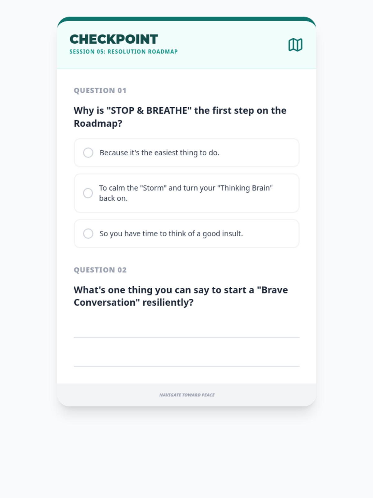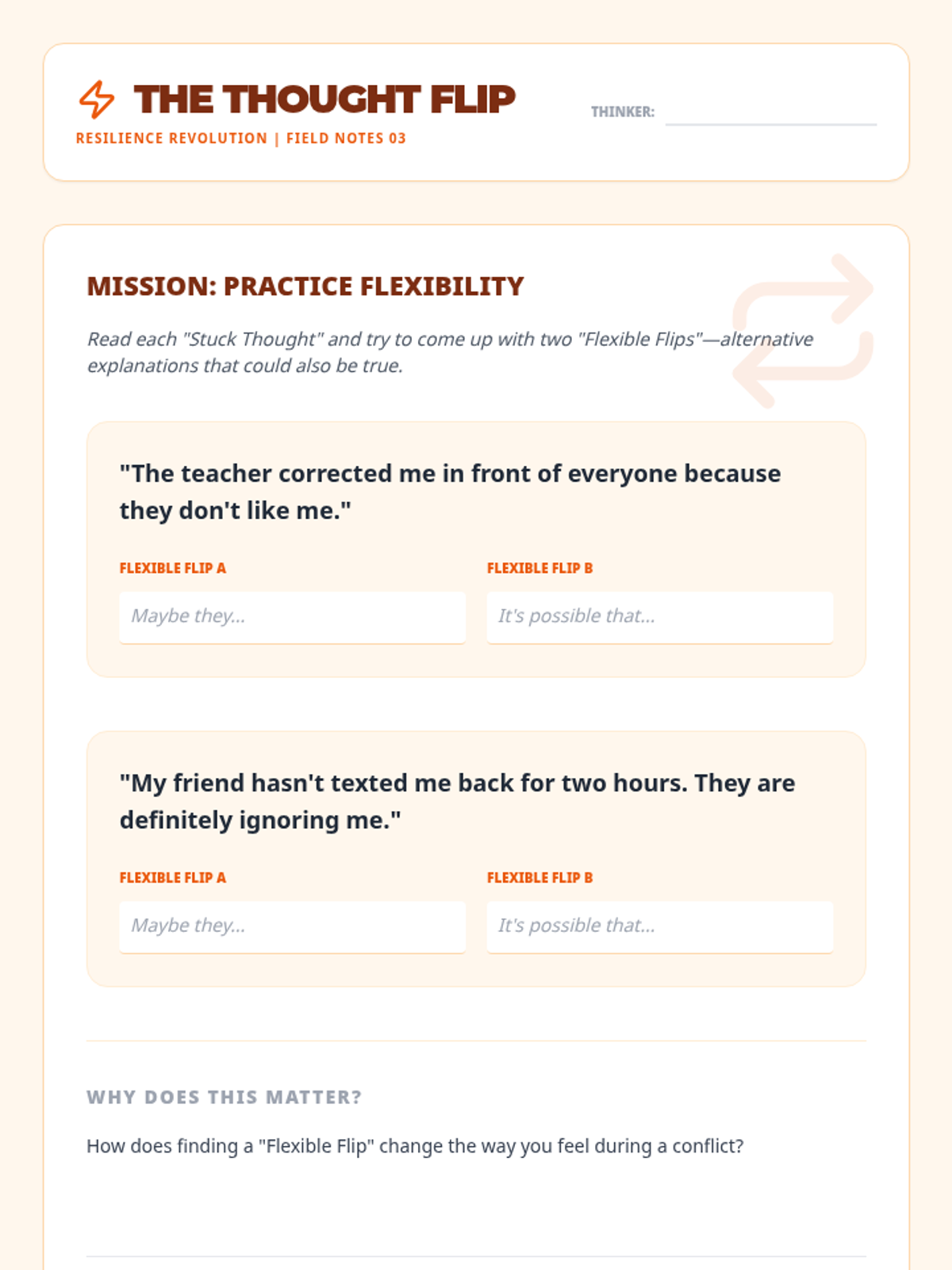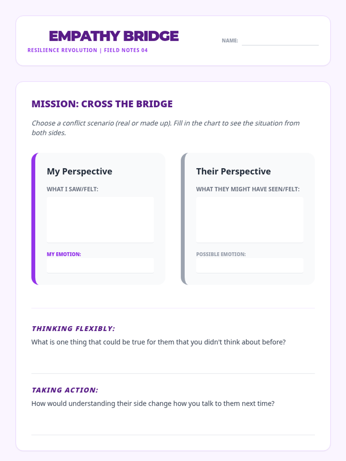 A comprehensive 6-session sequence for middle schoolers focusing on developing resilience as a core tool for effective conflict resolution. Students learn to manage emotions, think flexibly, and resolve interpersonal challenges constructively.