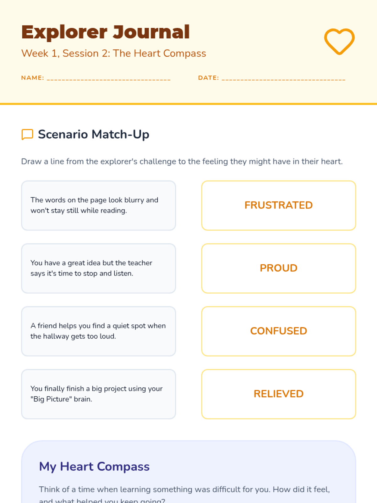 A comprehensive social-emotional learning series focused on emotional intelligence, conflict resolution, and personal goal setting. Students will develop self-awareness, social skills, and self-management through interactive activities and reflective practice.