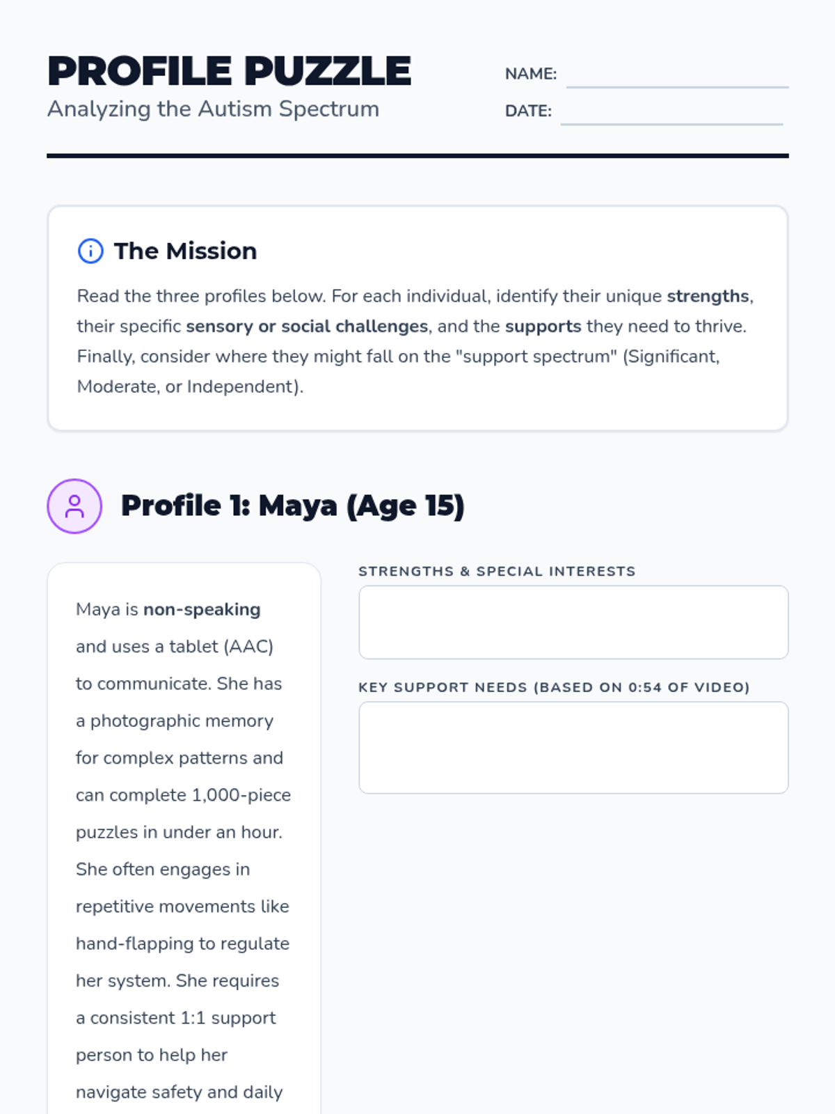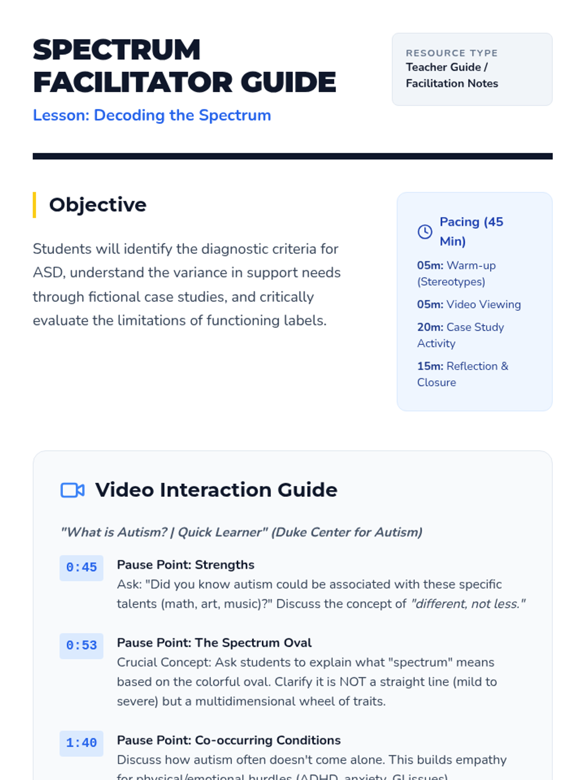 A high school health and psychology unit exploring neurodiversity, focusing on the diagnostic criteria, support needs, and lived experiences of individuals on the autism spectrum.