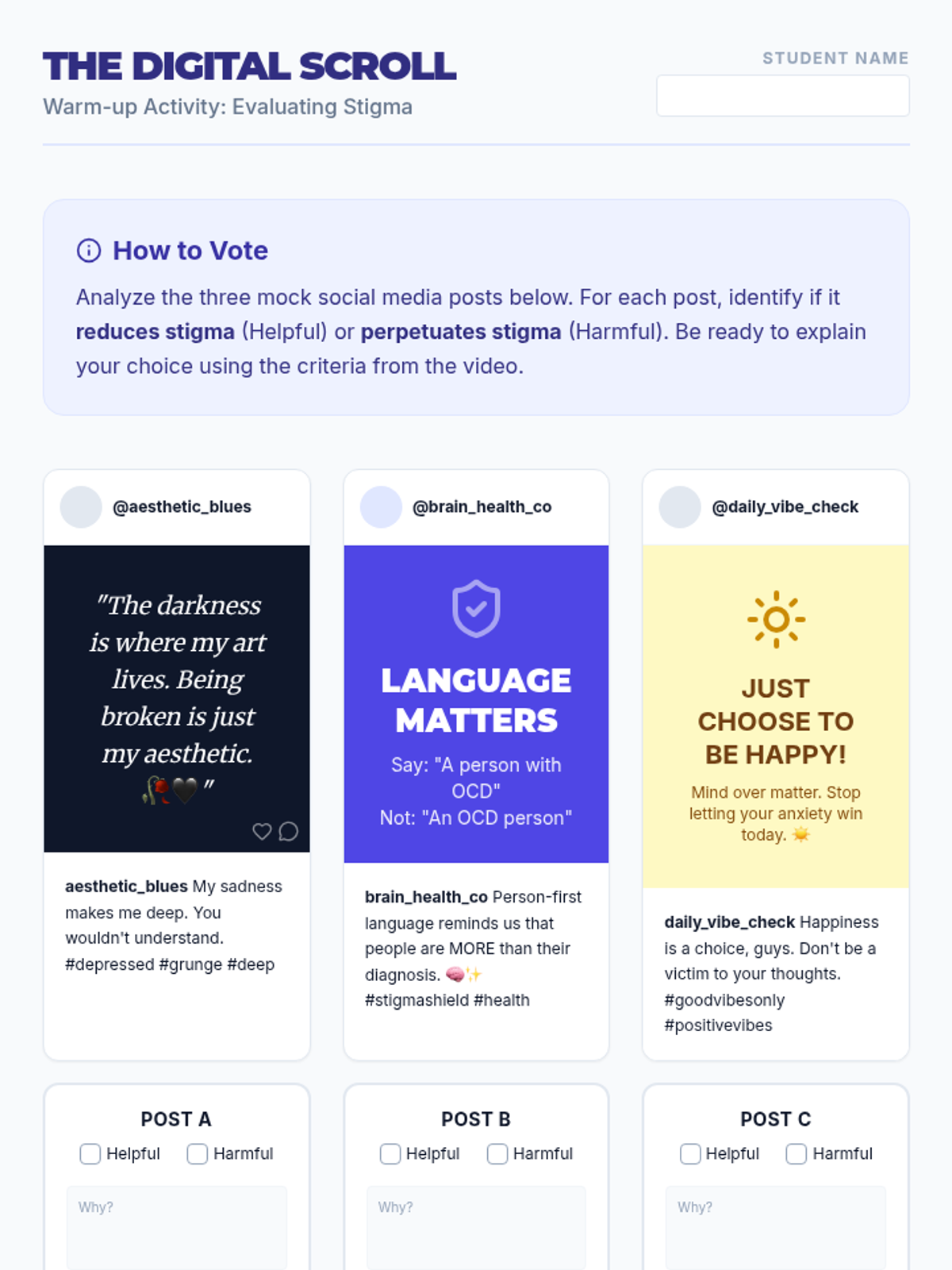 A comprehensive health education unit focused on understanding mental health stigma, its impacts, and strategies to reduce it through communication and social media advocacy.