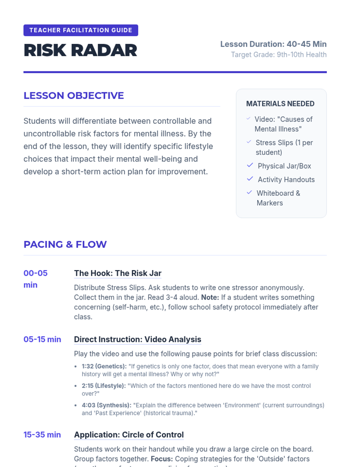 A comprehensive high school health sequence focused on understanding the complex interplay of biological and environmental factors that contribute to mental health and illness.