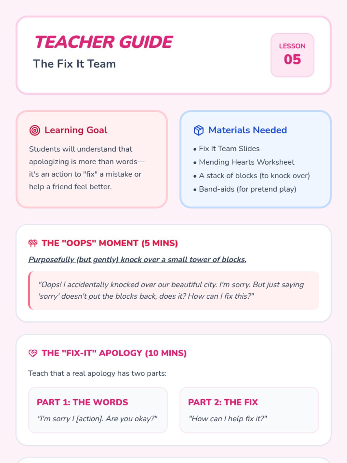 A kindergarten social-emotional learning unit focused on the fundamentals of respect, specifically using kind words and taking care of shared school environments.