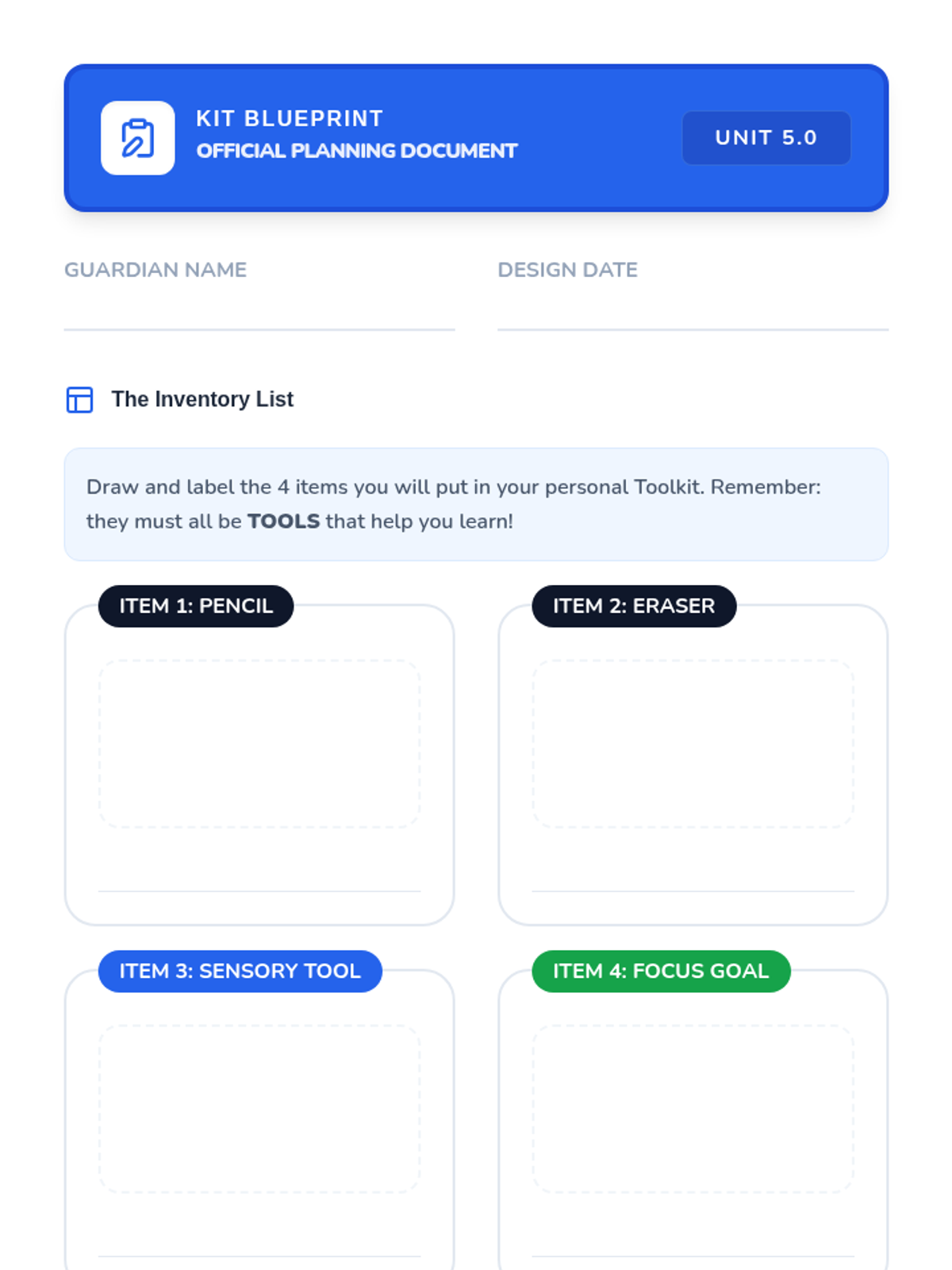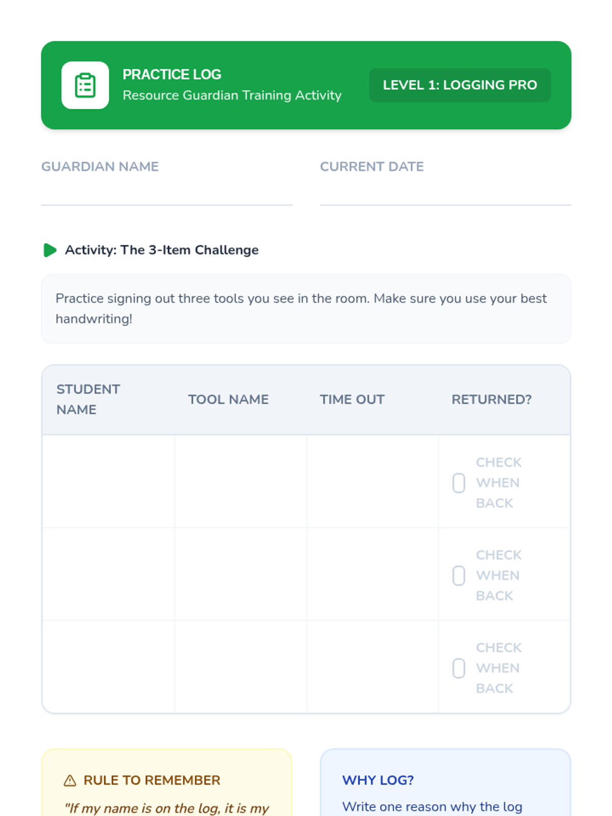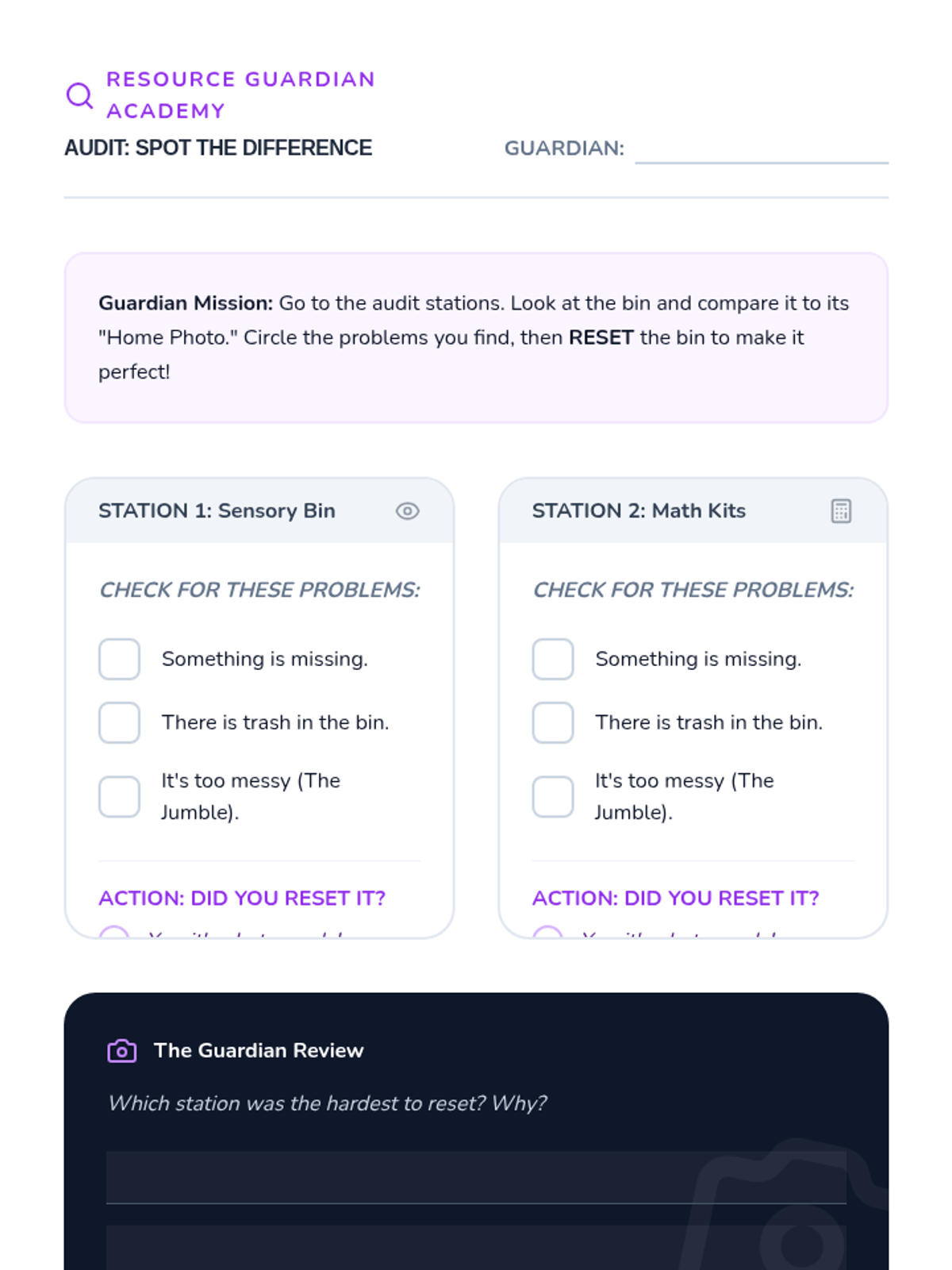 This sequence teaches 3rd-grade students, particularly those in special education, how to manage, respect, and organize classroom sensory tools and shared resources. Students develop accountability through check-in systems, inventory checks, and visual navigation skills.