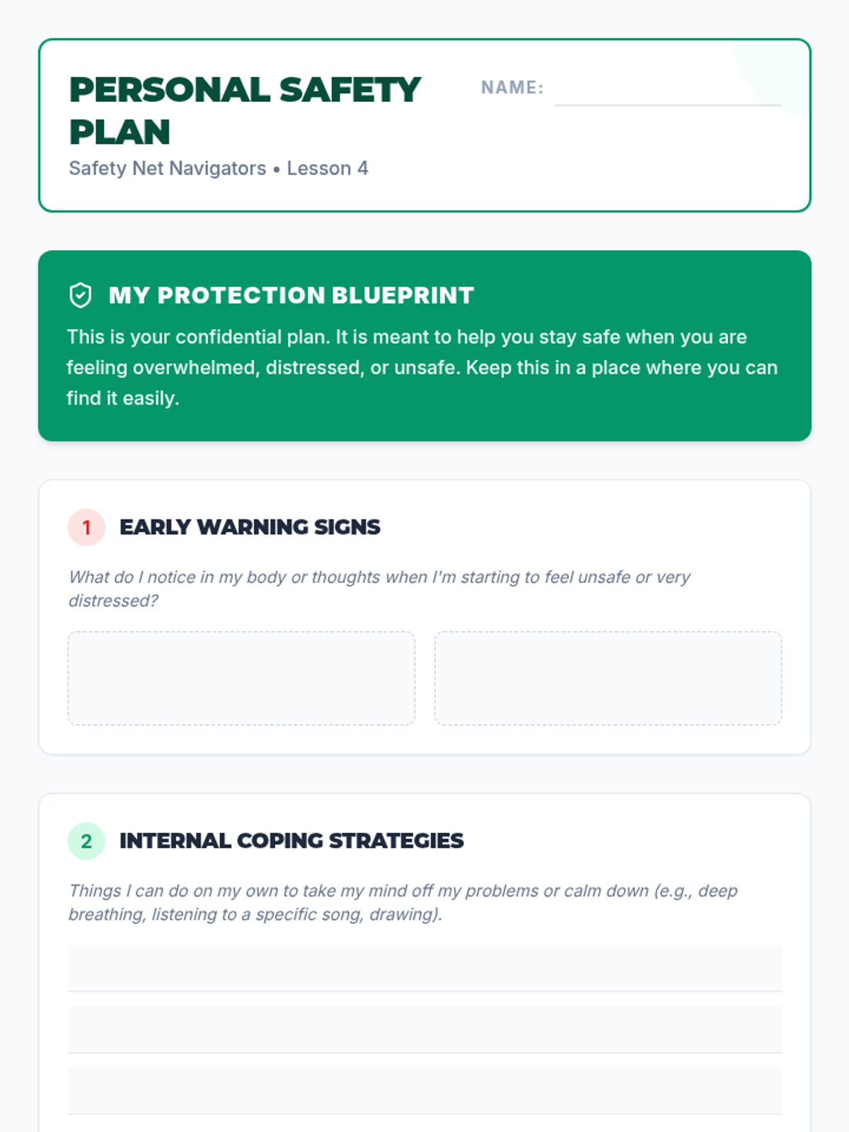 A comprehensive toolkit designed for a 6th-grade student to navigate emotional dysregulation. This sequence focuses on identifying internal triggers, building a personalized strategy toolkit, and establishing a clear safety protocol for crisis moments, providing stability in both school and home environments.