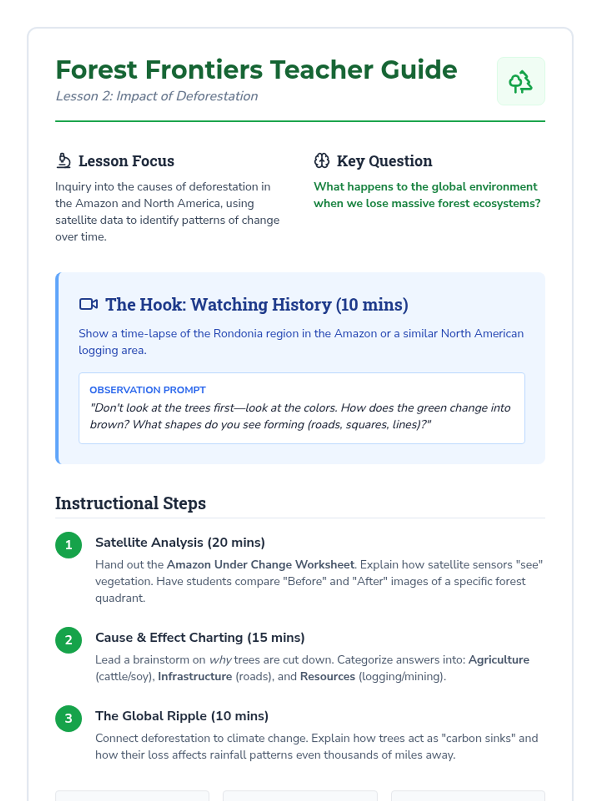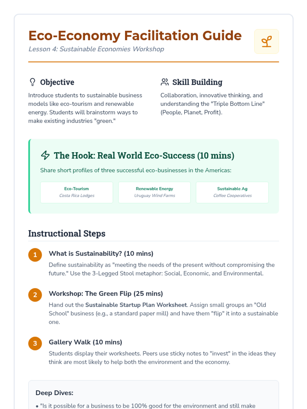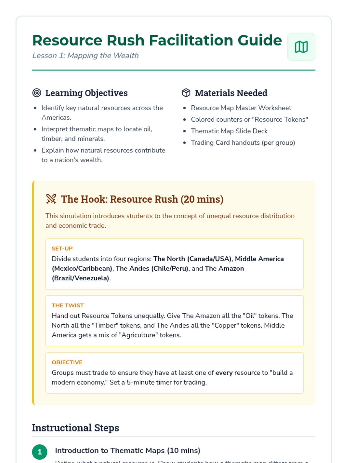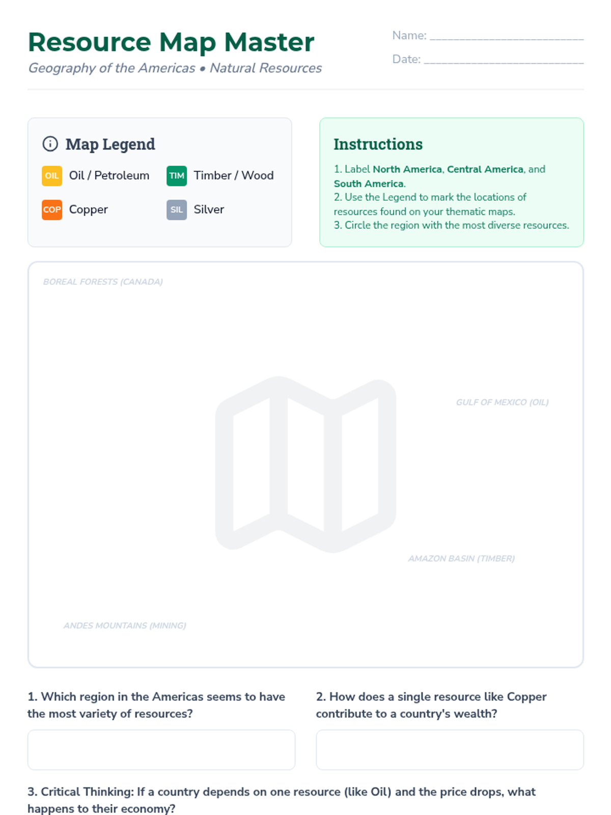 Students investigate the economic and environmental dynamics of the Americas, exploring natural resource extraction, the impact of deforestation, and the shift toward sustainable economies and conservation.