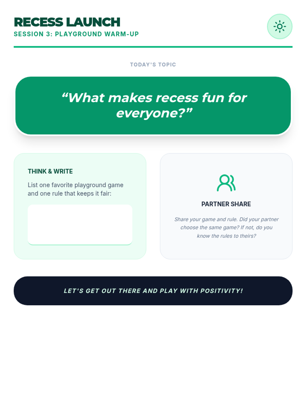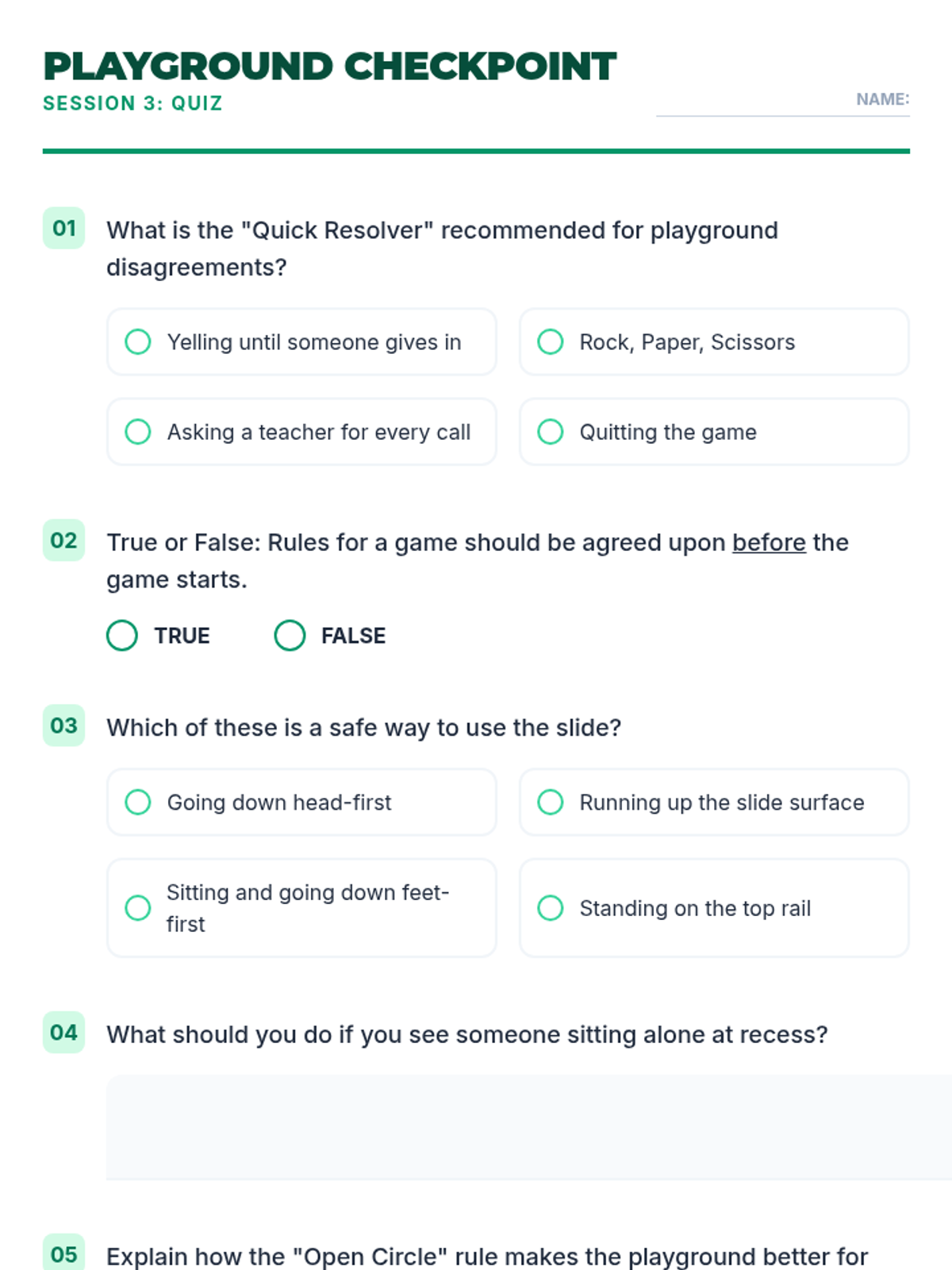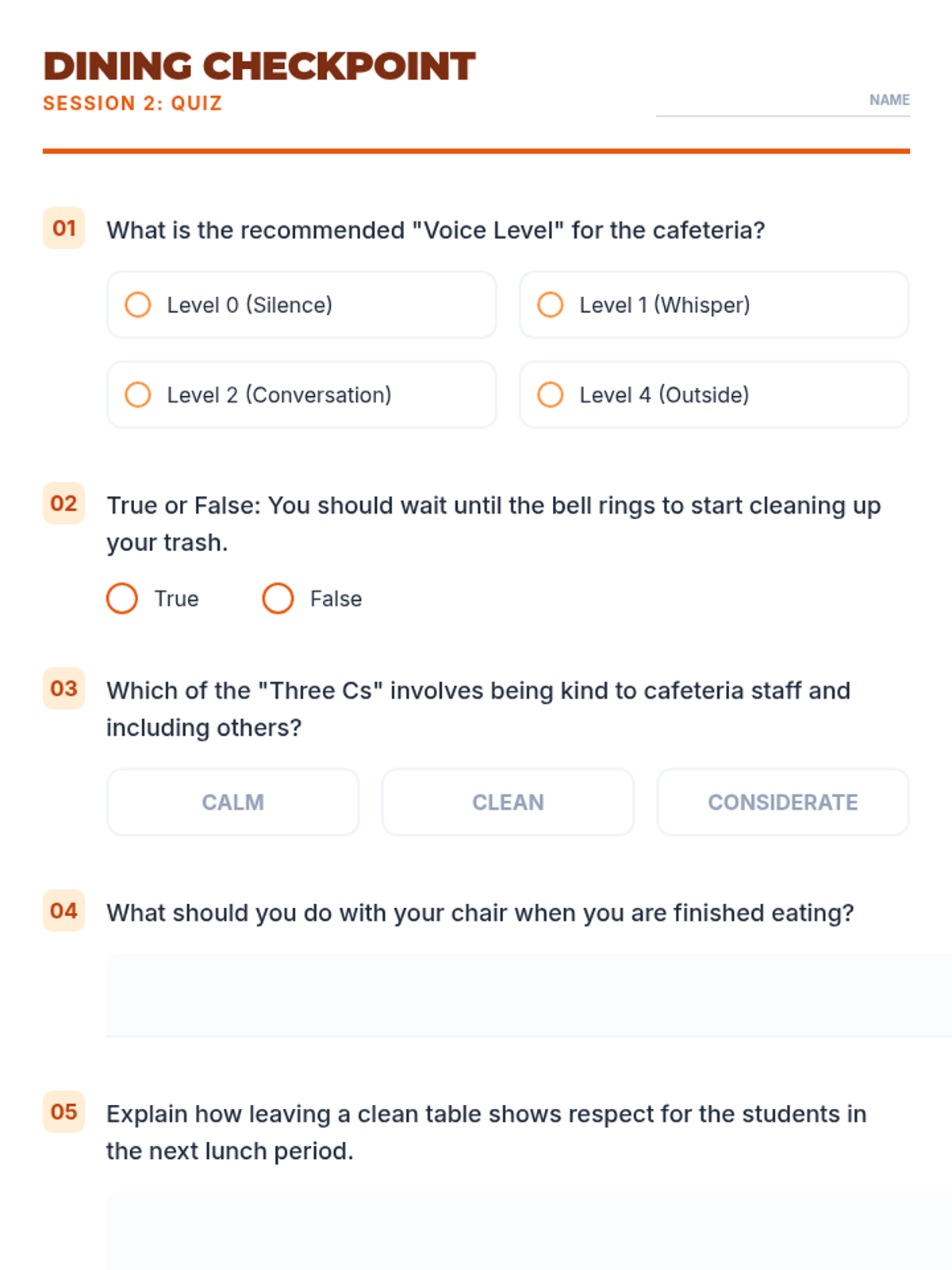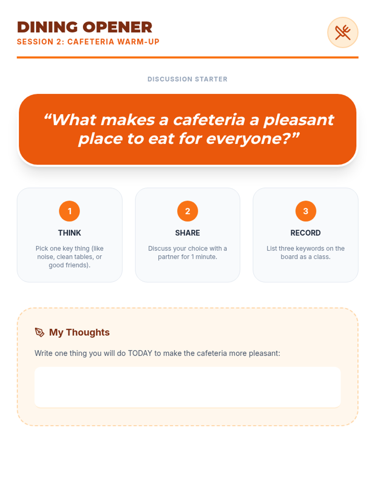 A three-session social-emotional learning series for middle schoolers focusing on school-wide behavior expectations in the hallway, cafeteria, and playground. Students learn to navigate common spaces with respect, safety, and responsibility through interactive discussions, reading, and practice.