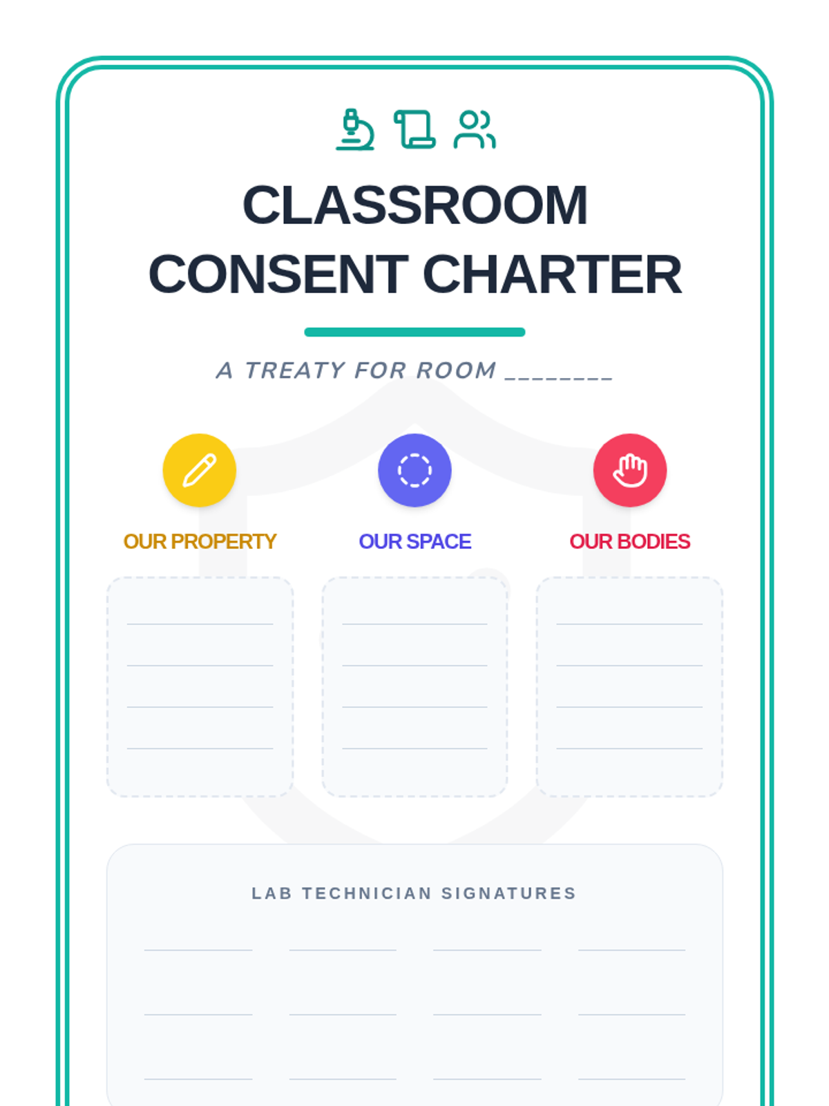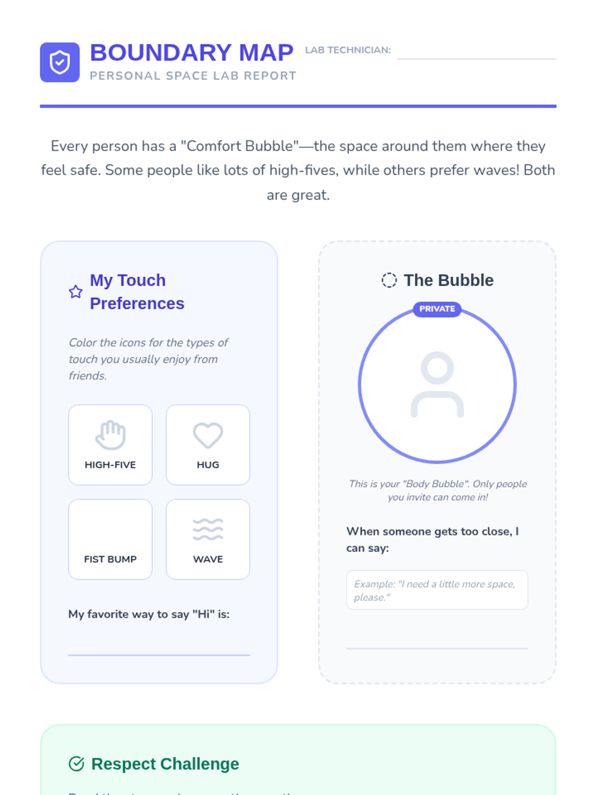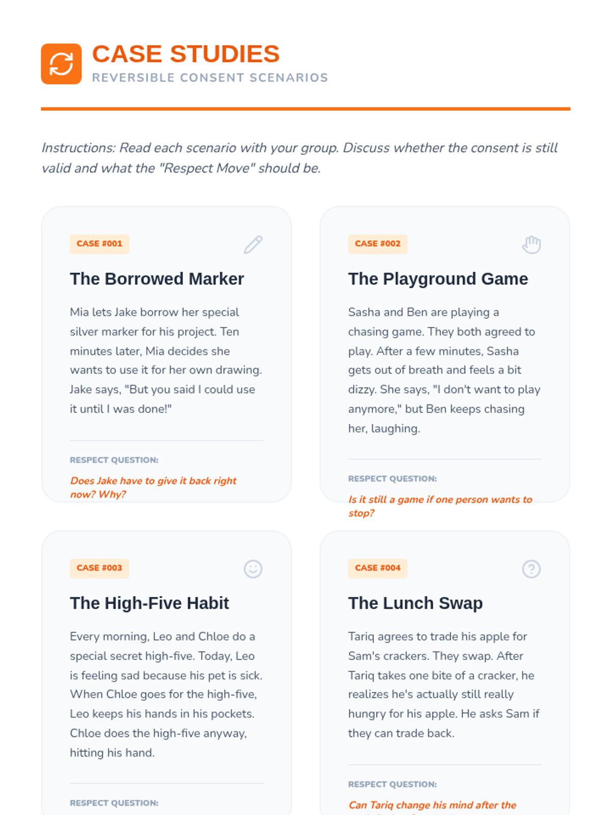 A 5-lesson sequence for 3rd graders exploring consent through daily interactions like borrowing, personal space, and physical touch. Students move from basic definitions to creating a shared classroom agreement.