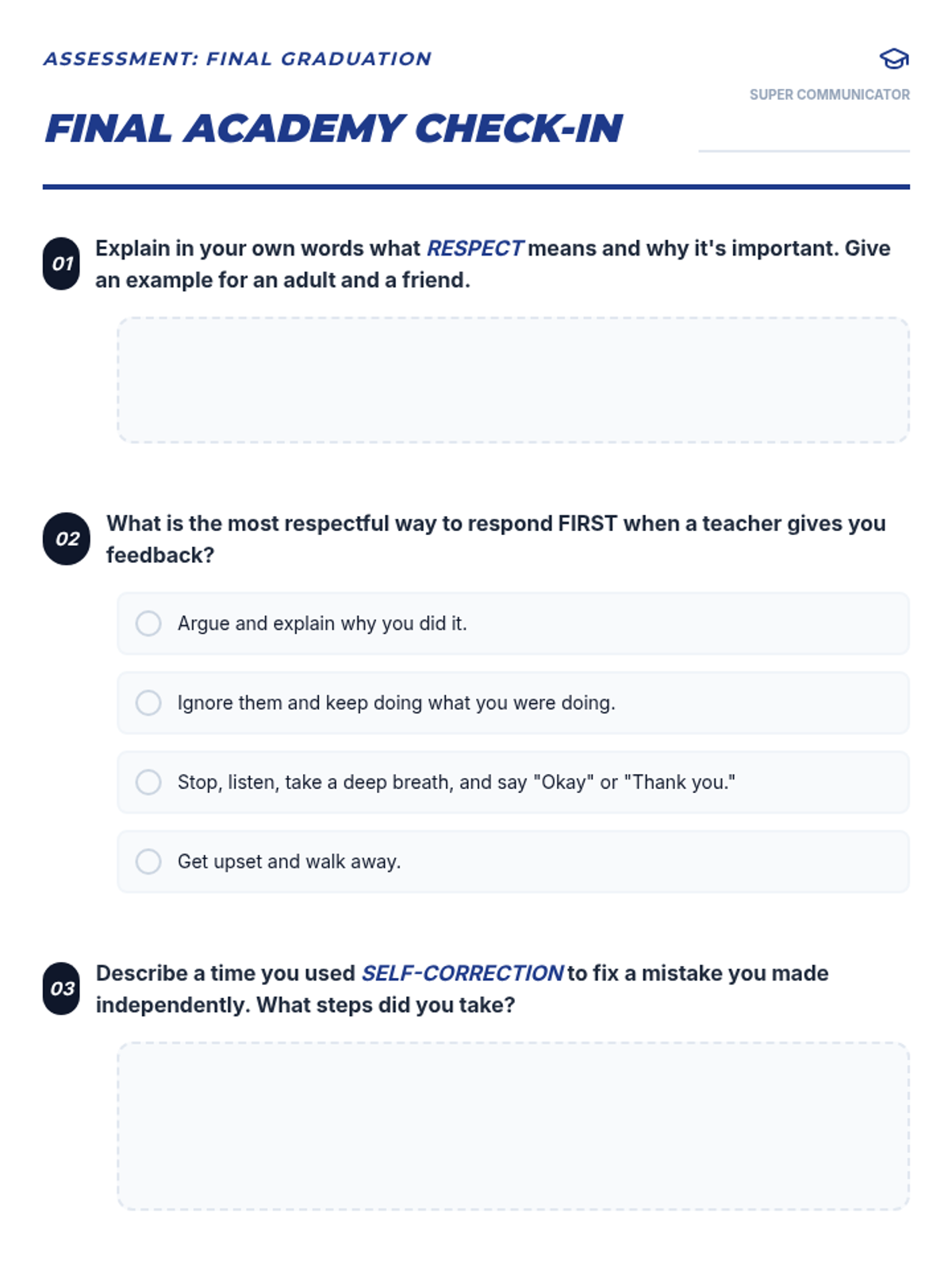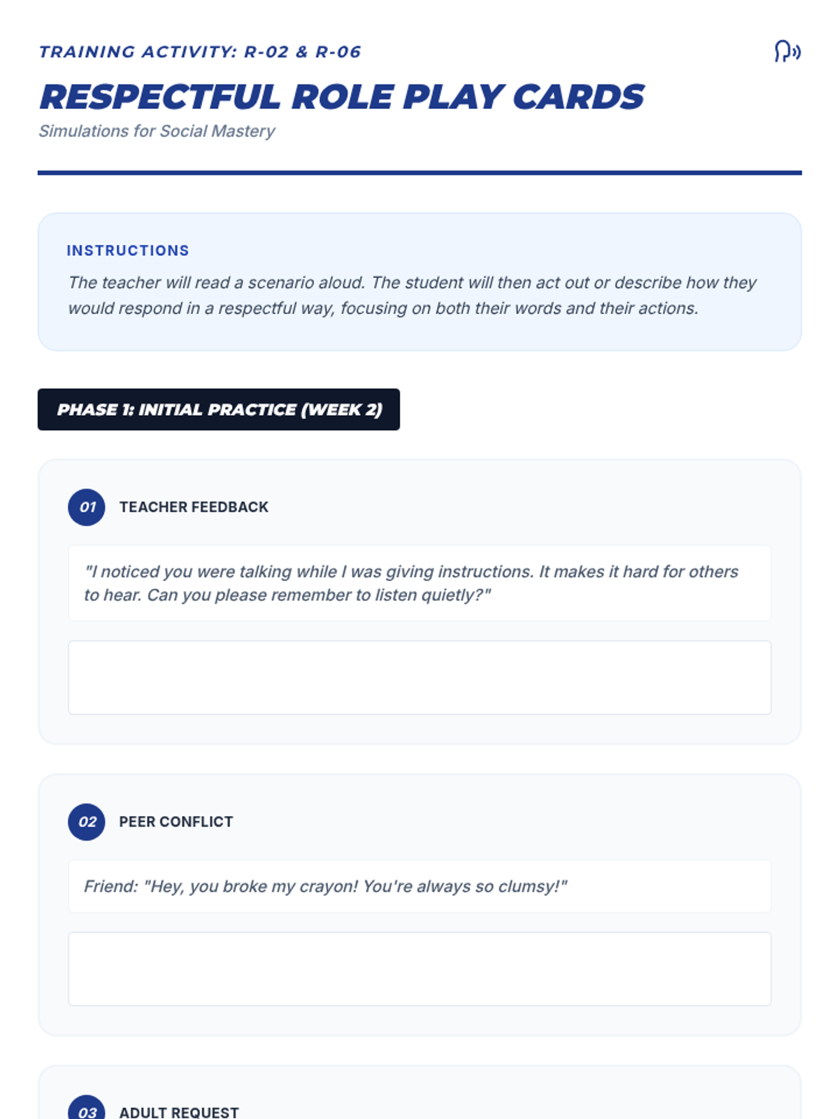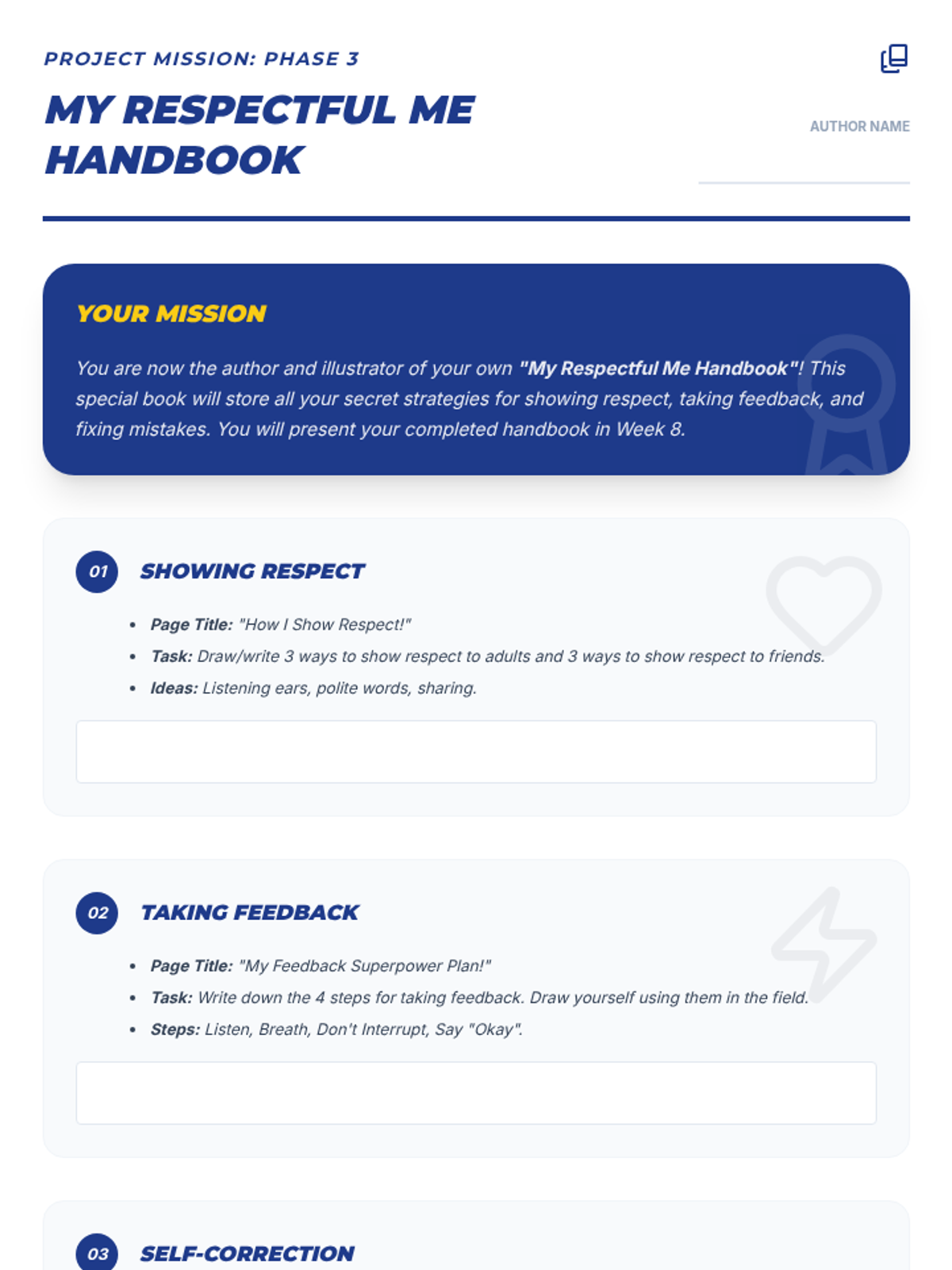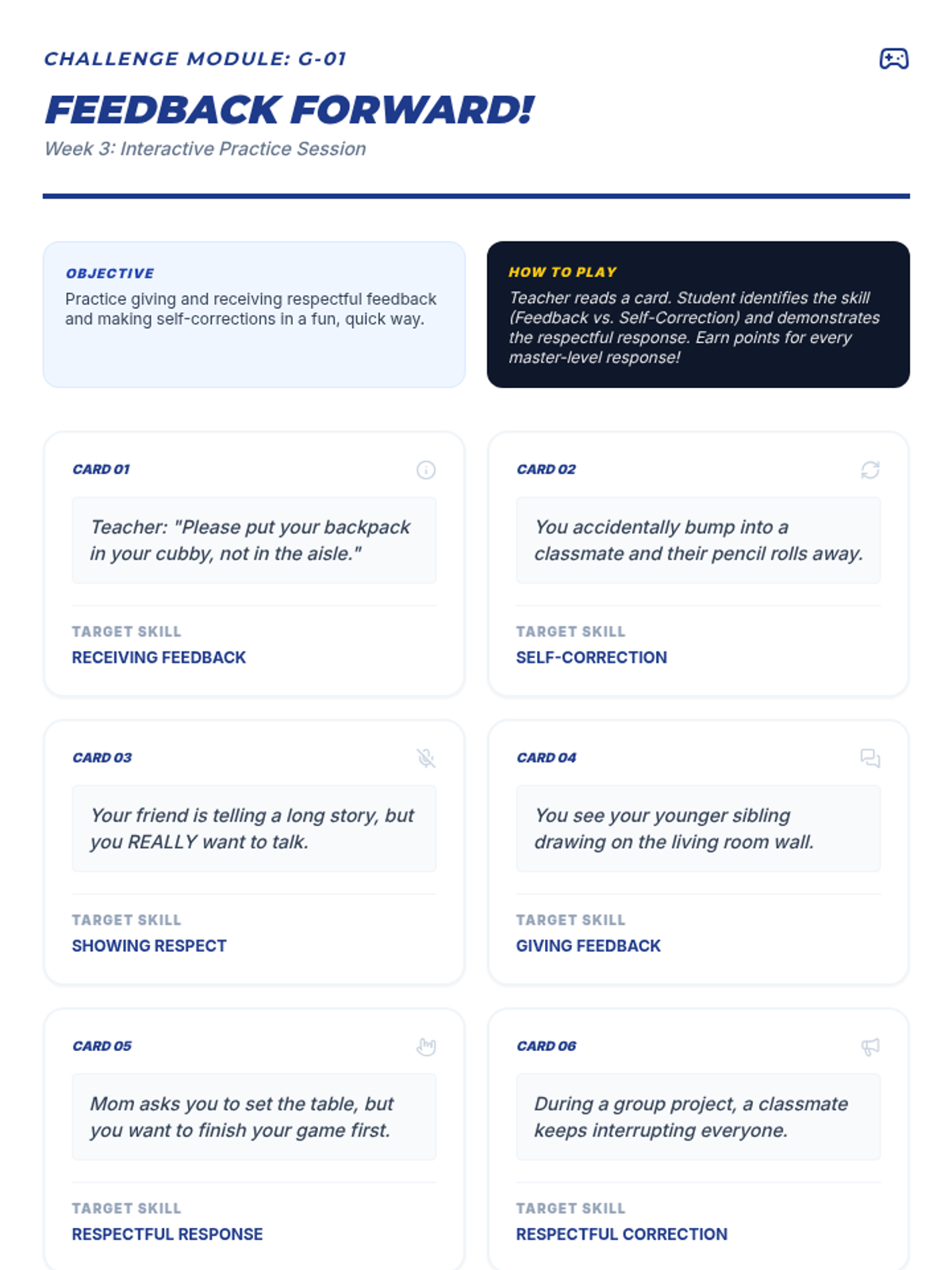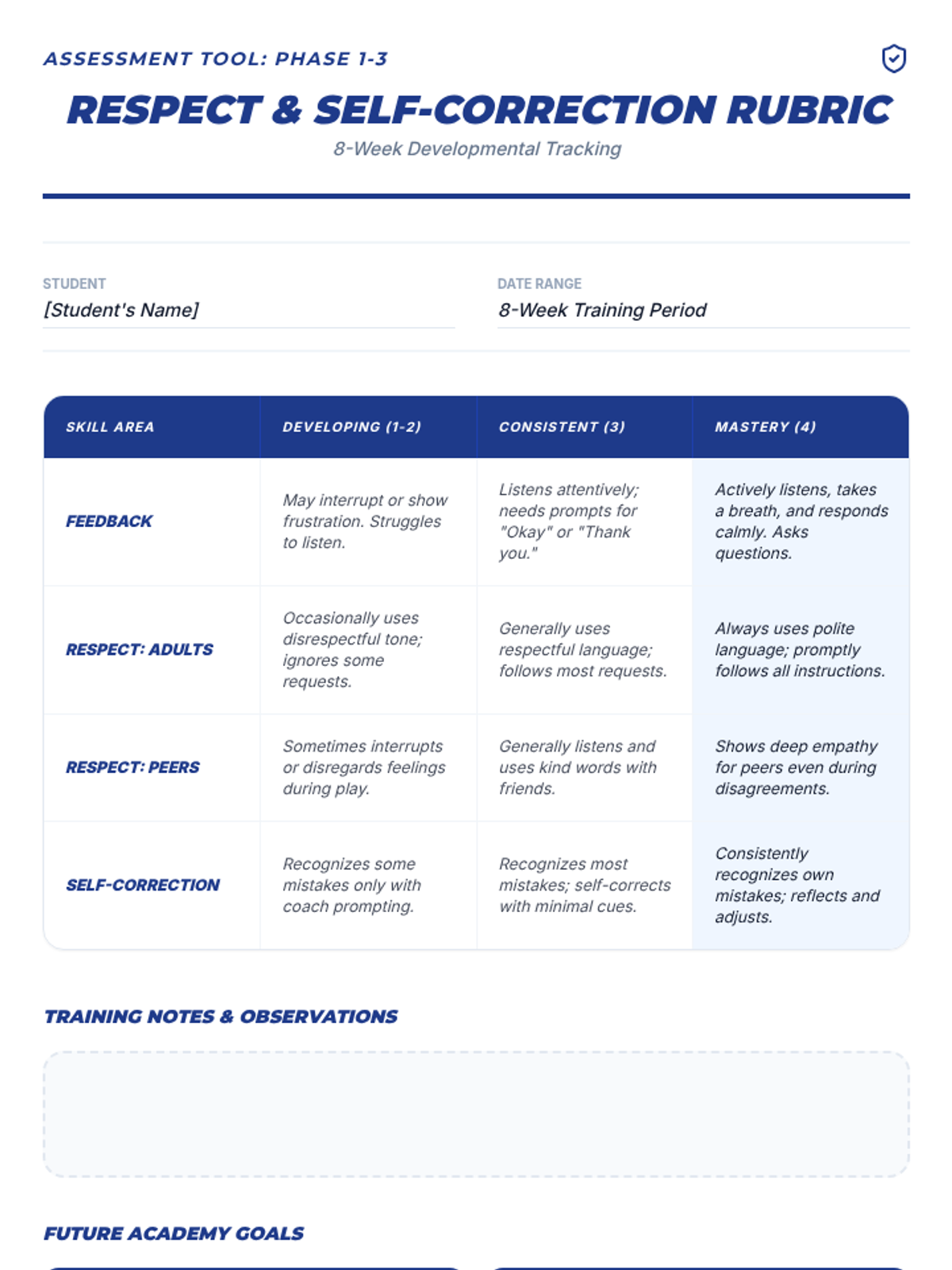 An 8-week intensive social-emotional sequence for a 4th-grade student to master respectful communication, receiving feedback, and self-correction through a 'Hero Training' lens.