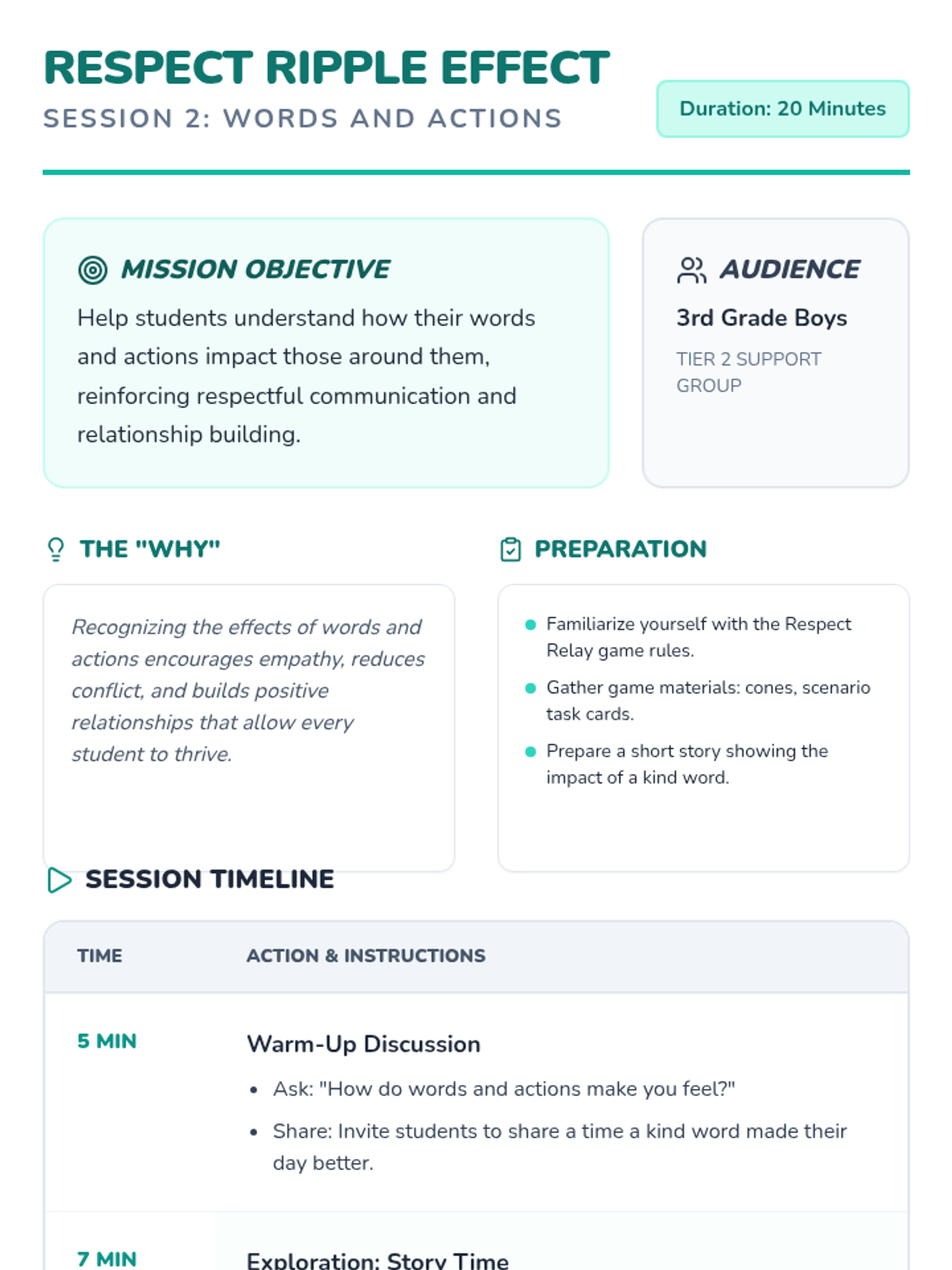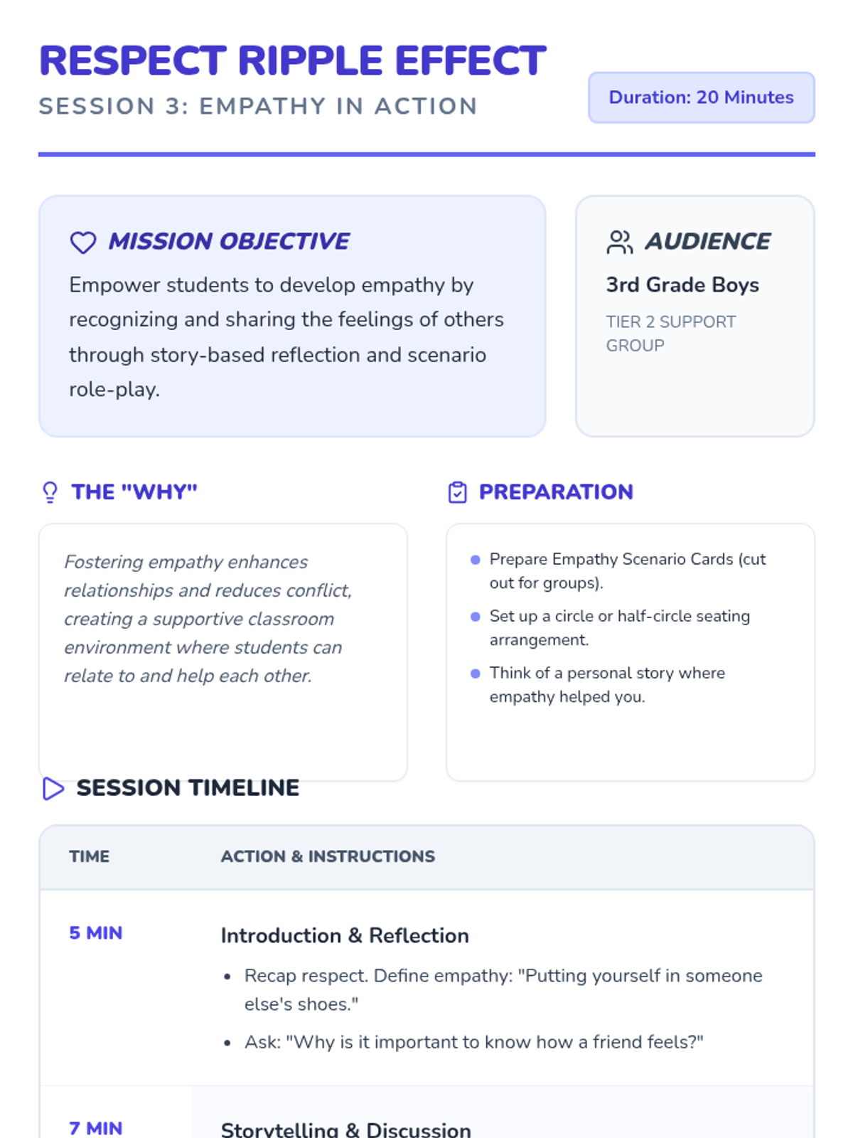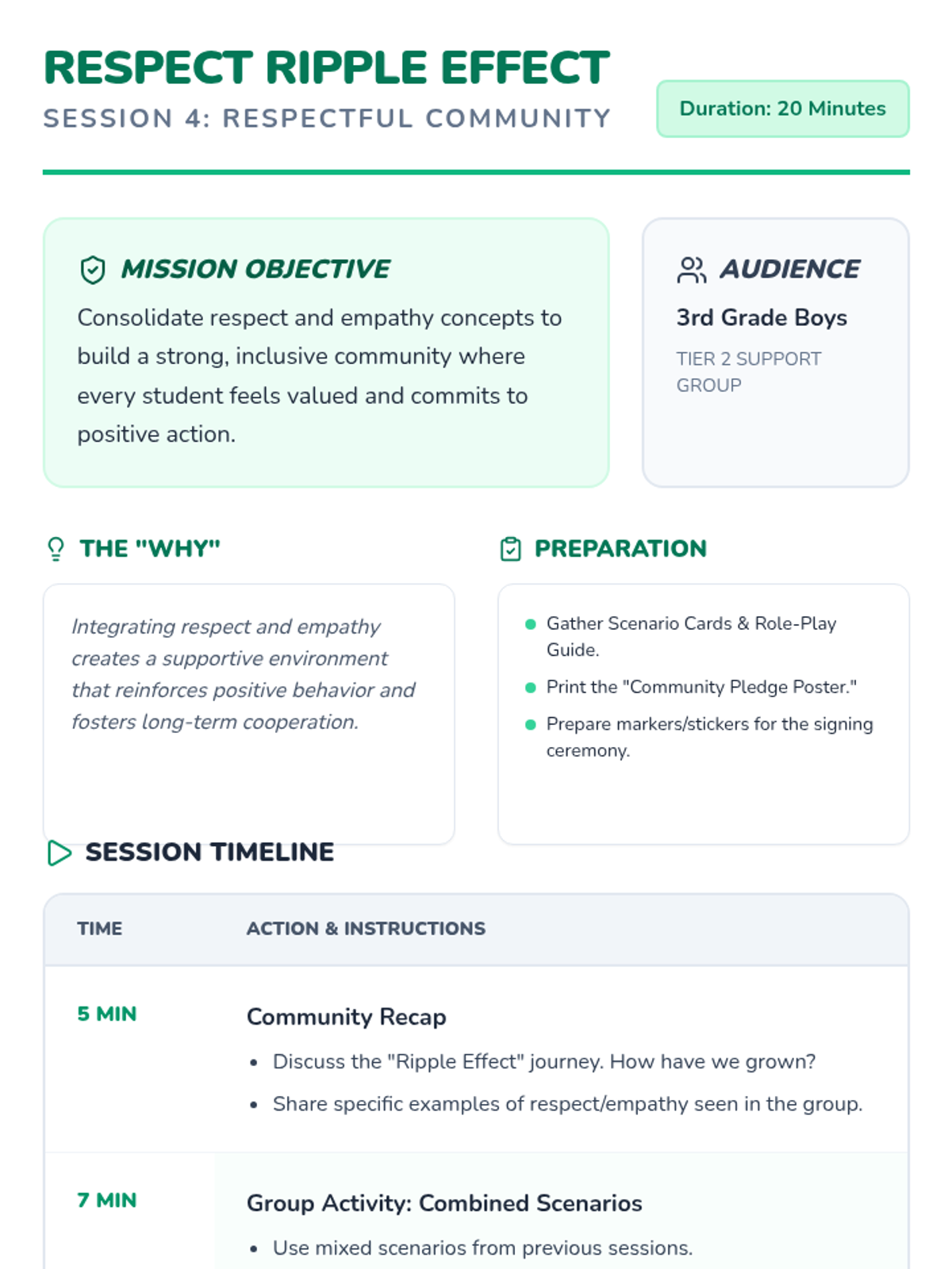 A 4-session social-emotional learning series for 3rd-grade boys that explores respect, empathy, and community building through interactive games and role-play.