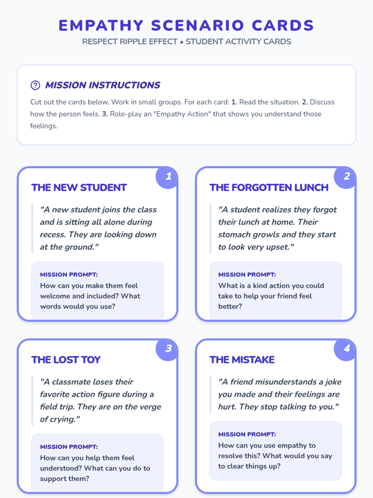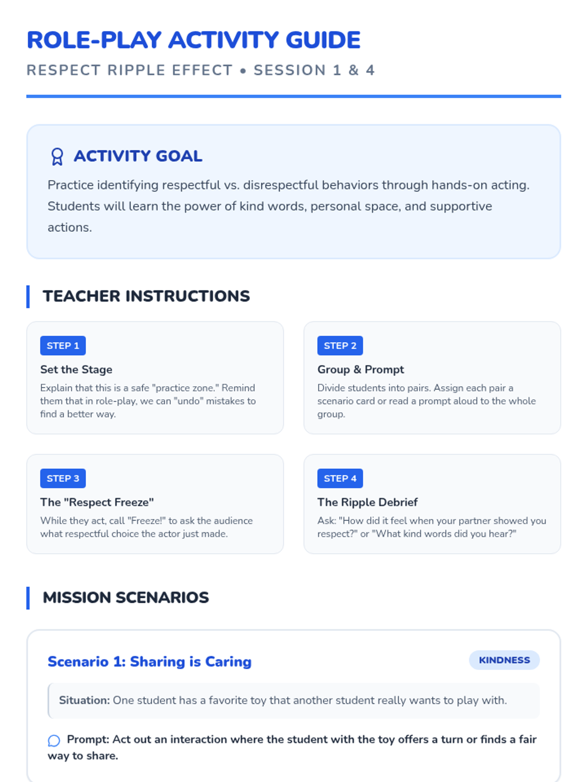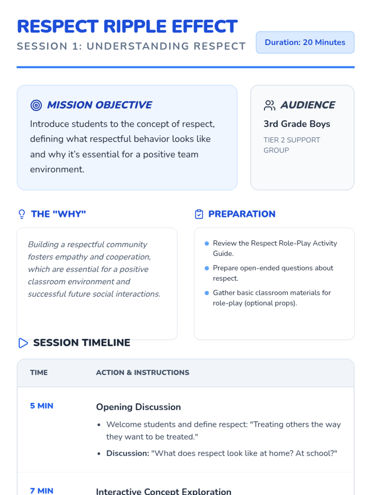 A 4-session social-emotional learning series for 3rd-grade boys that explores respect, empathy, and community building through interactive games and role-play.