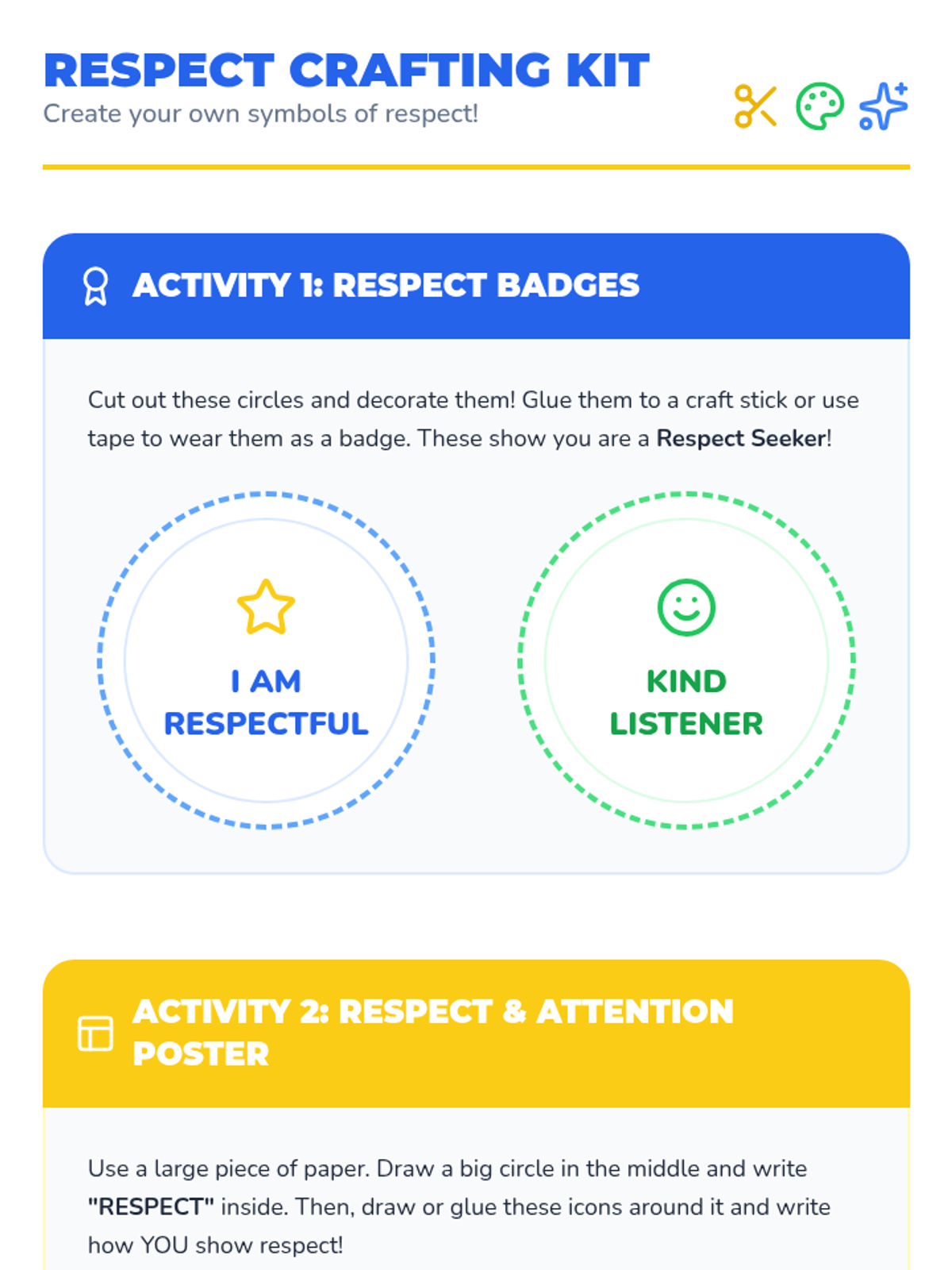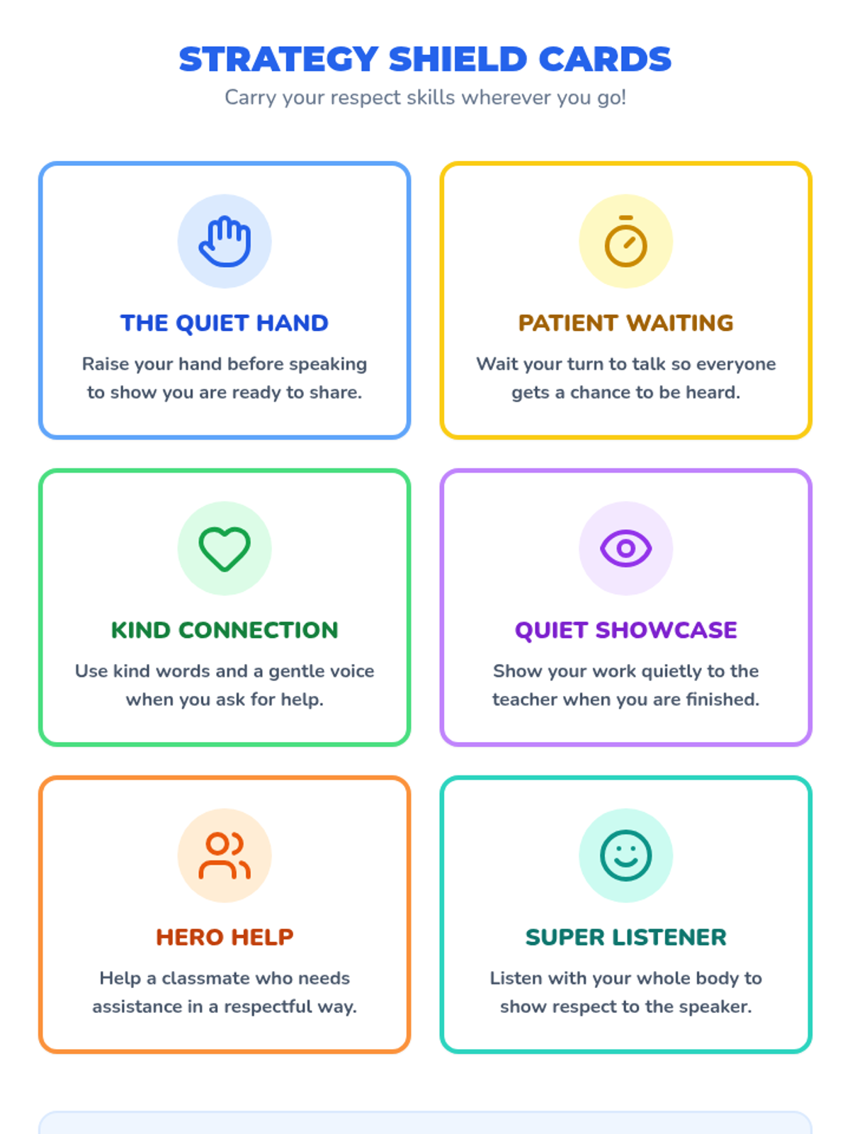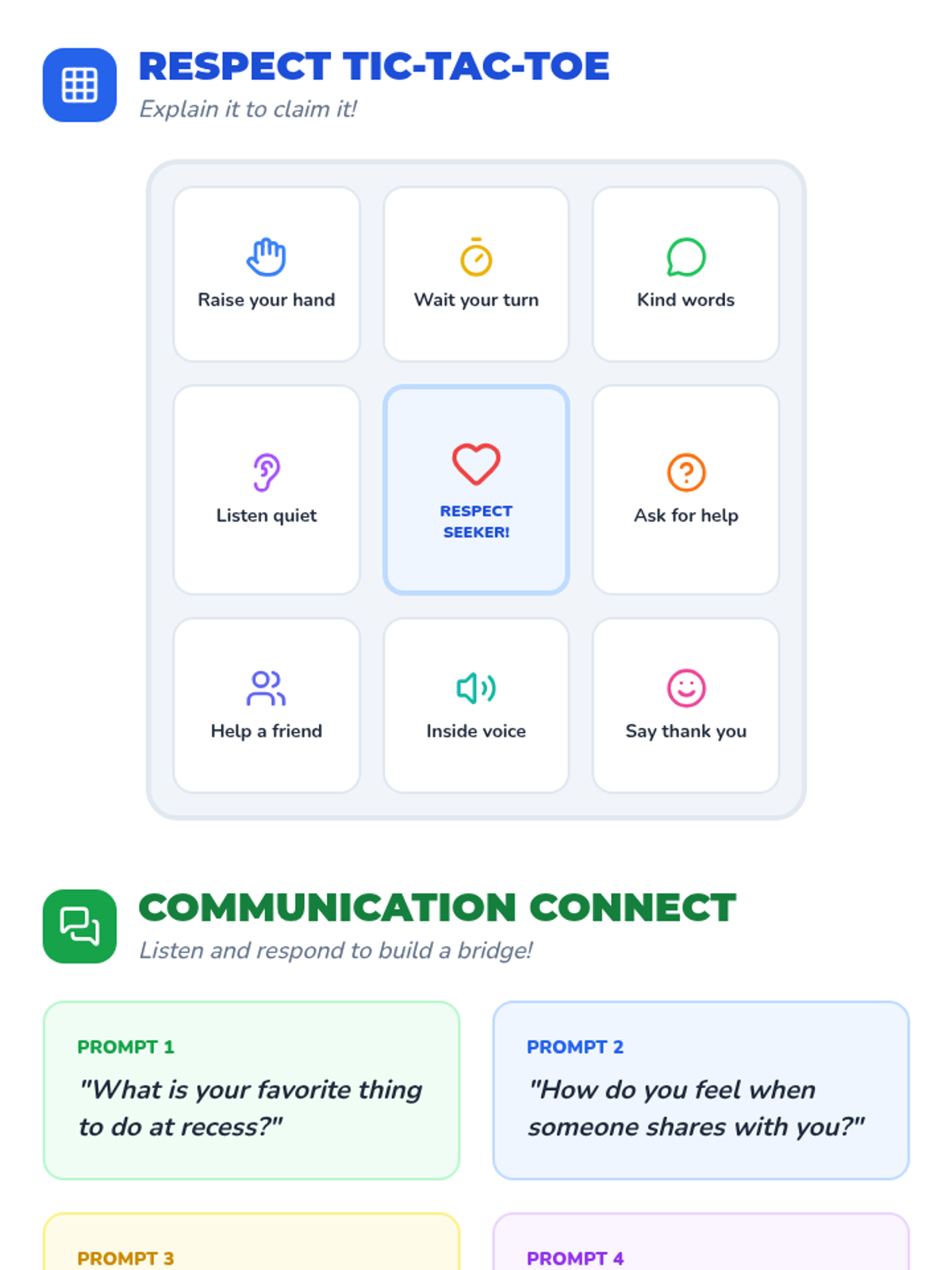This sequence focuses on essential social-emotional skills for the classroom, specifically targeting physical boundaries and collaborative work. Students will learn the 'personal bubble' concept and strategies for effective group communication.