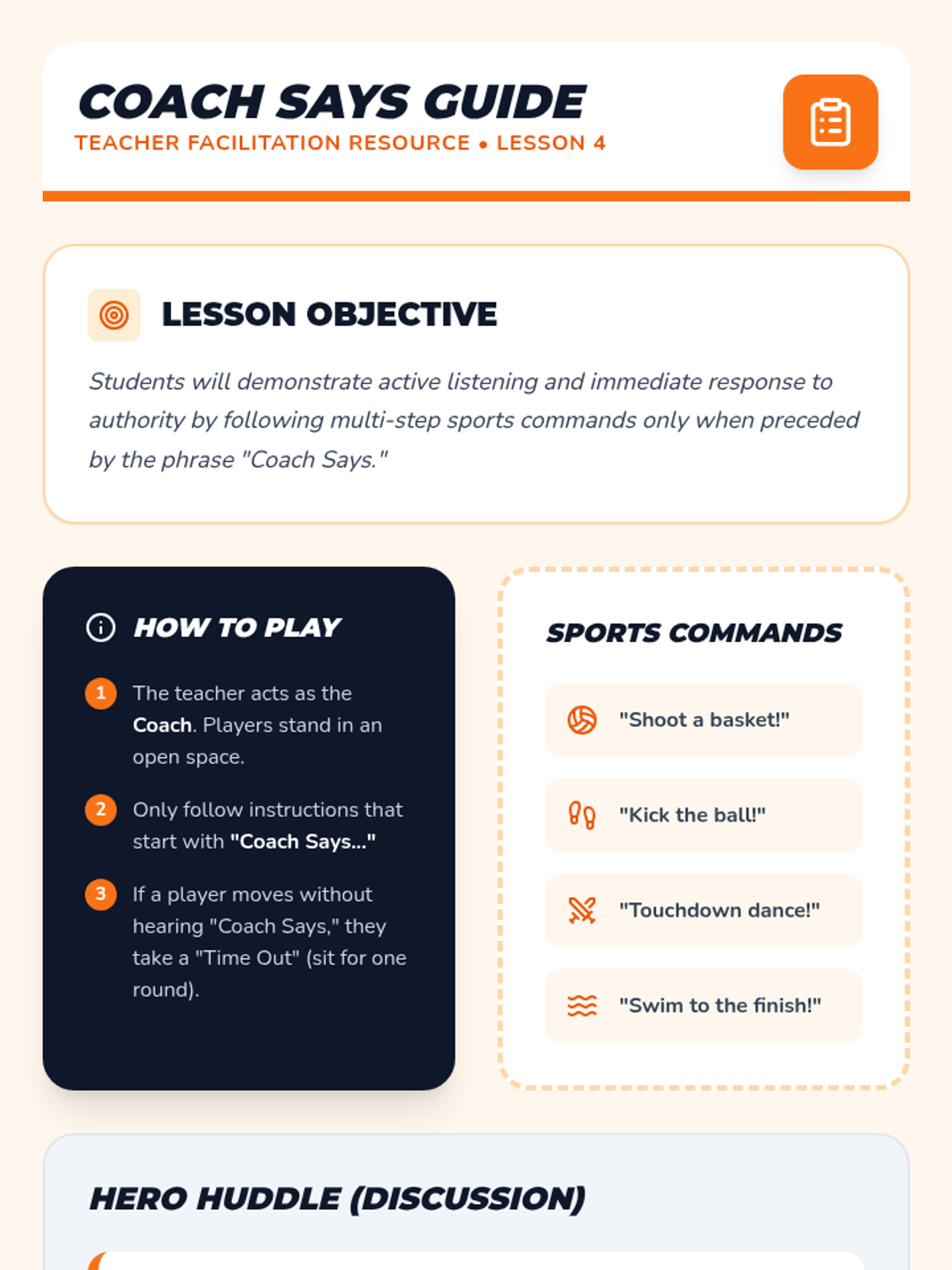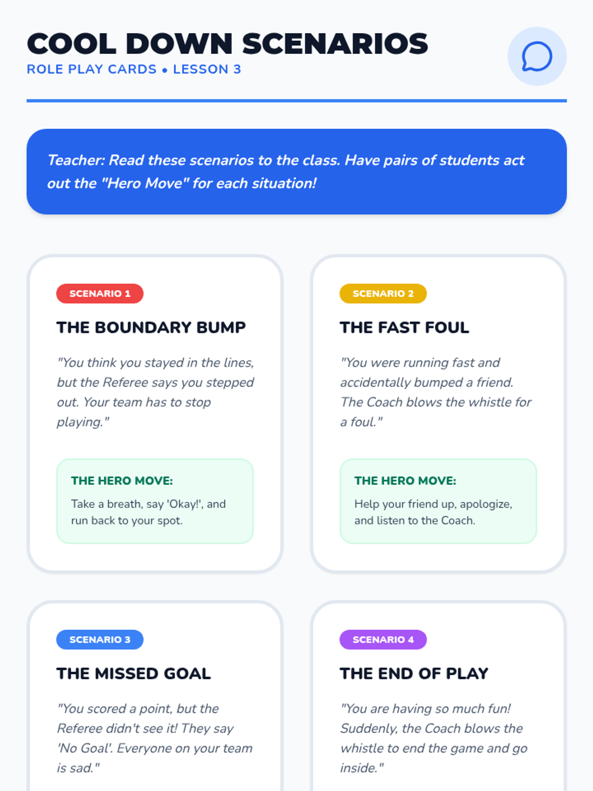 A comprehensive unit for Kindergarten students focused on understanding and respecting authority figures in sports, specifically coaches and referees. Students explore these roles through simulation, games, and gratitude projects to build foundational sportsmanship skills.