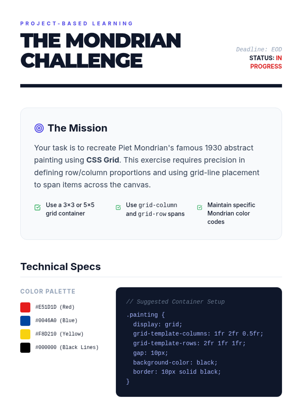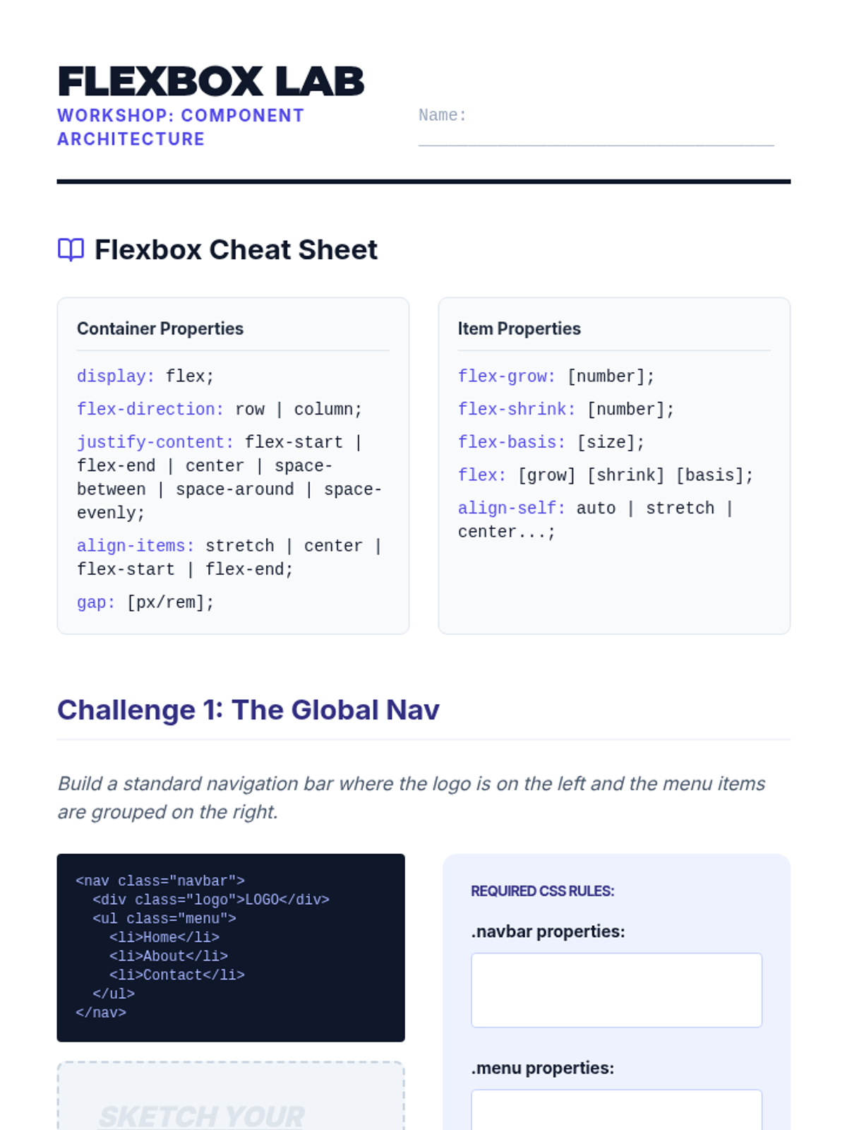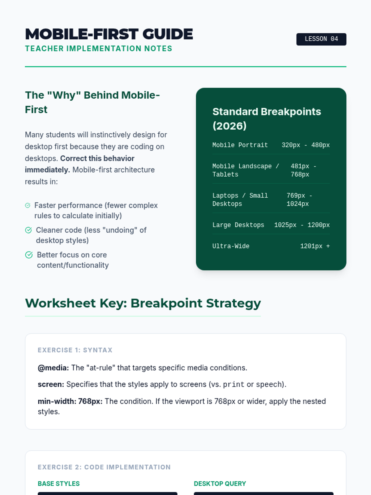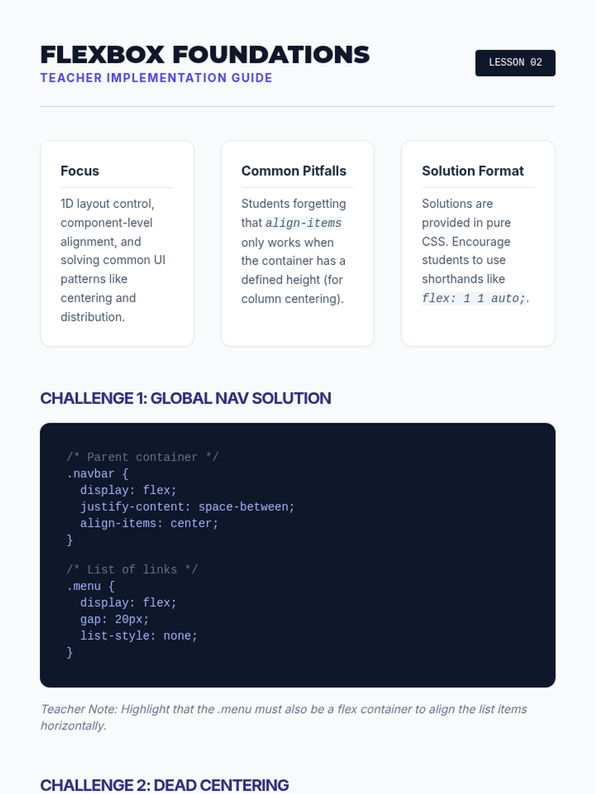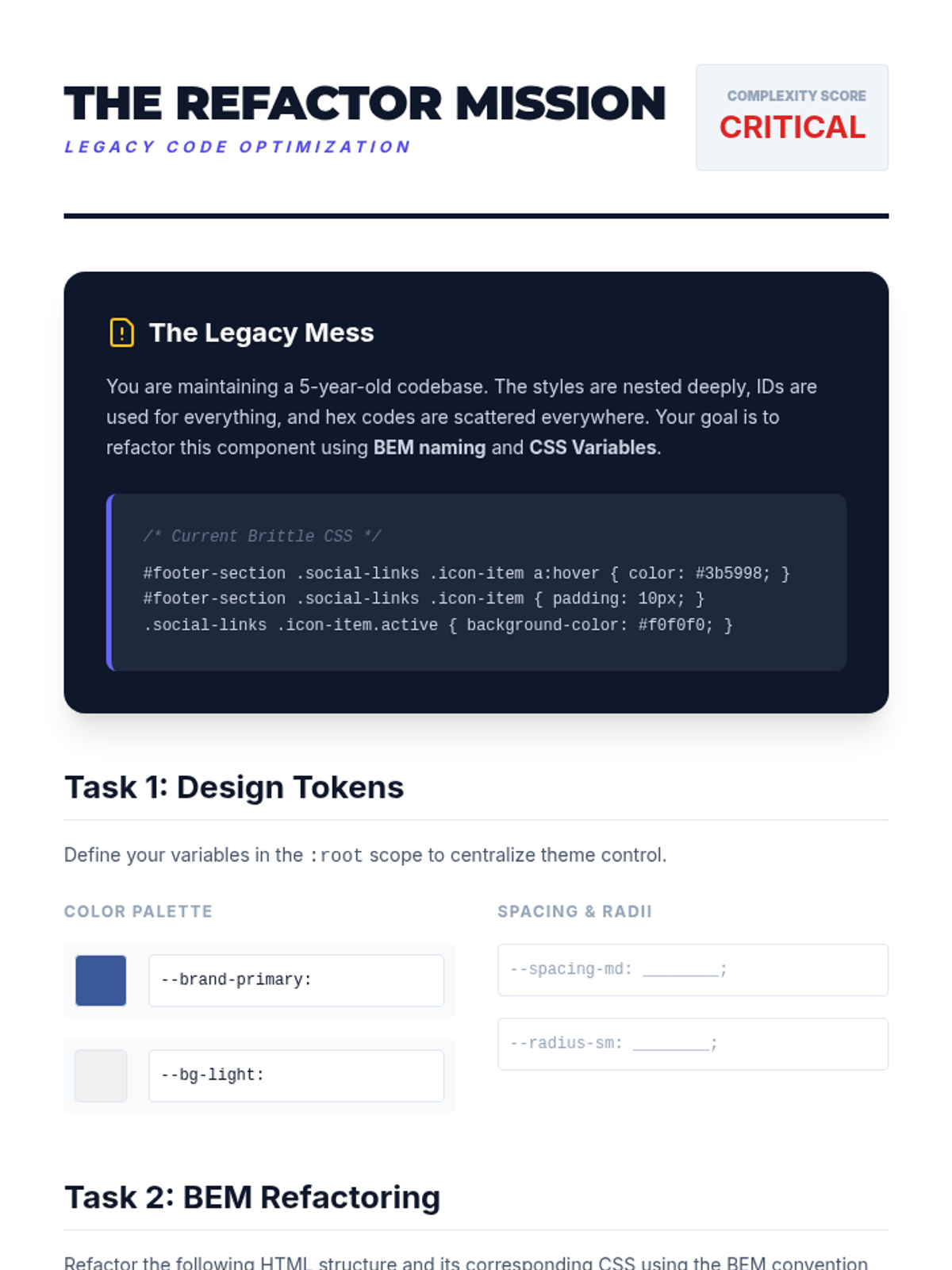 A comprehensive graduate-level sequence on professional CSS architecture, covering the cascade, Flexbox, CSS Grid, mobile-first responsiveness, and scalable design systems using BEM and variables.