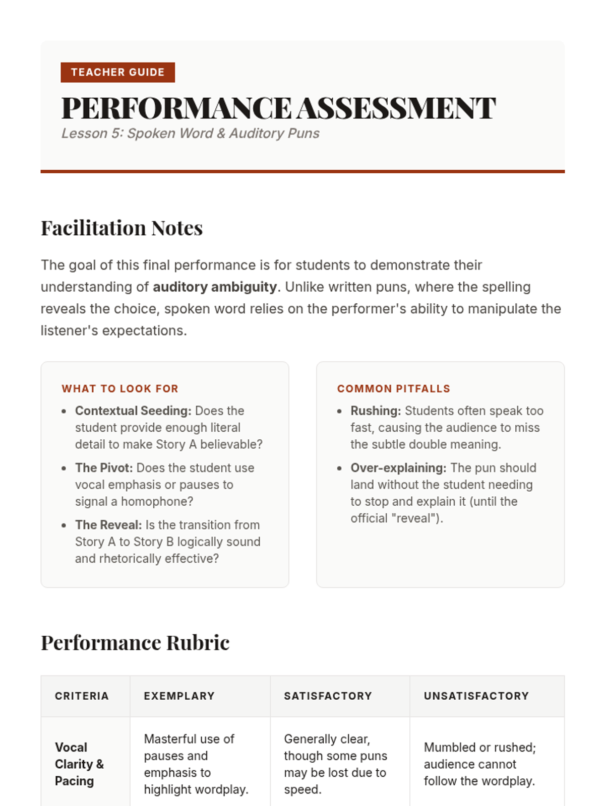 A dynamic high school unit exploring the roots, techniques, and performance of slam and spoken word poetry, culminating in a school-wide poetry slam.