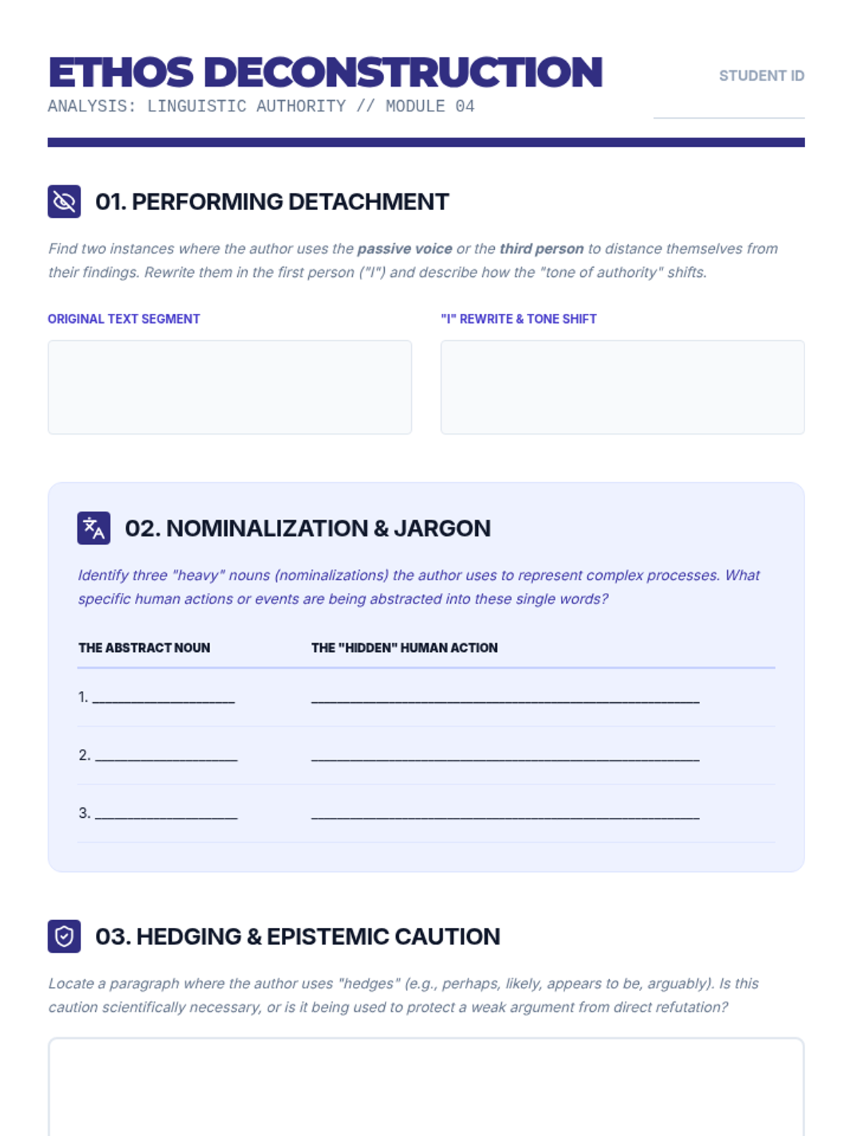 An intensive sequence for undergraduate students focused on the structural and rhetorical deconstruction of academic monographs. Students will master the Toulmin model, evaluate evidence types, and analyze how scholarly authority is constructed through language and methodology.