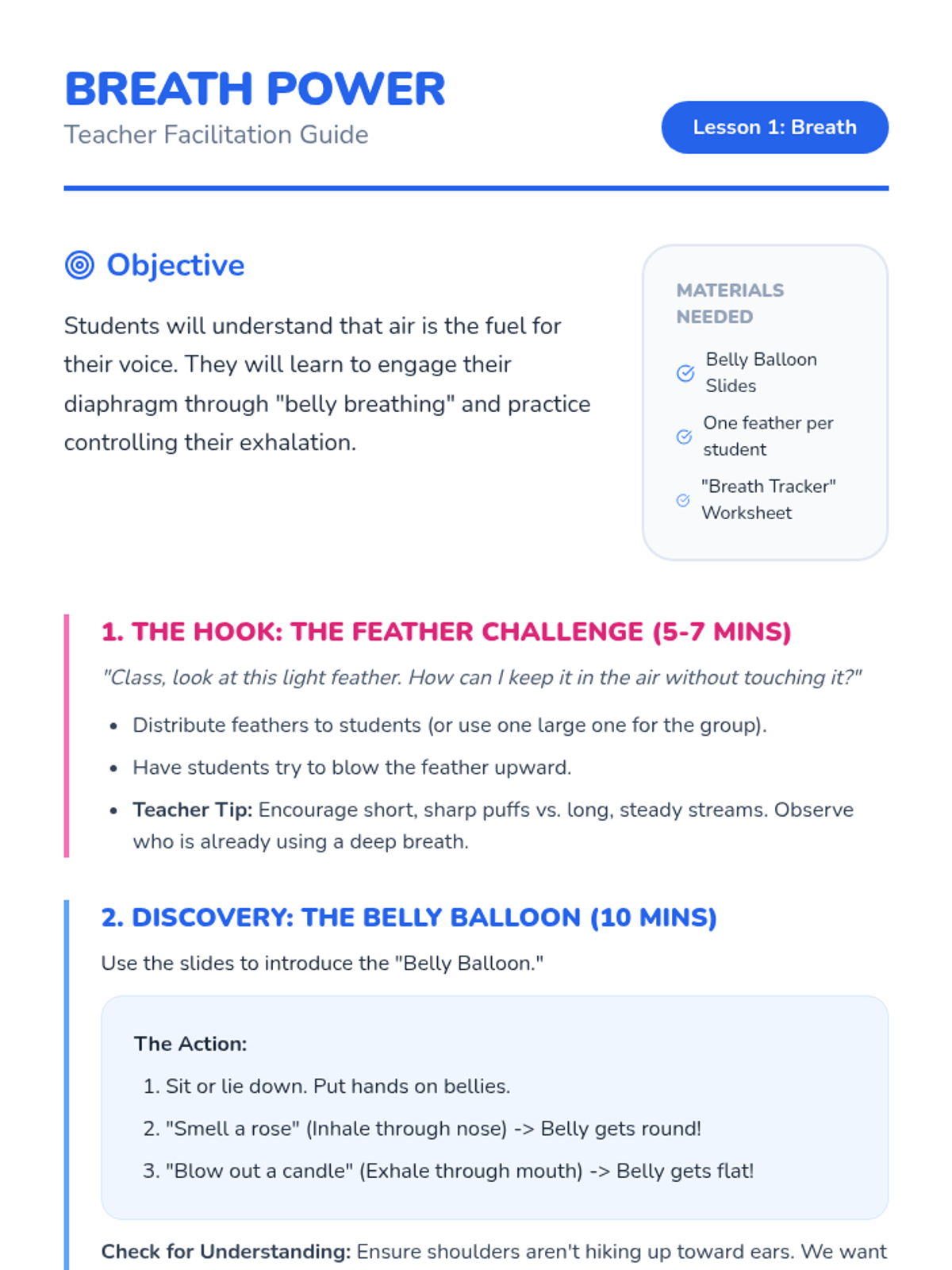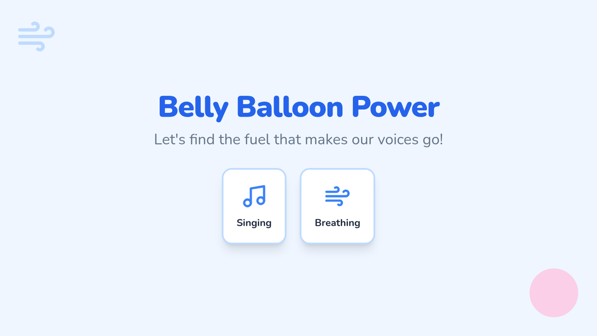 A foundational music sequence for Pre-K students to explore the physical mechanics of their voice through play, movement, and sensory awareness. Students learn about breath, pitch, timbre, and the difference between speaking and singing.