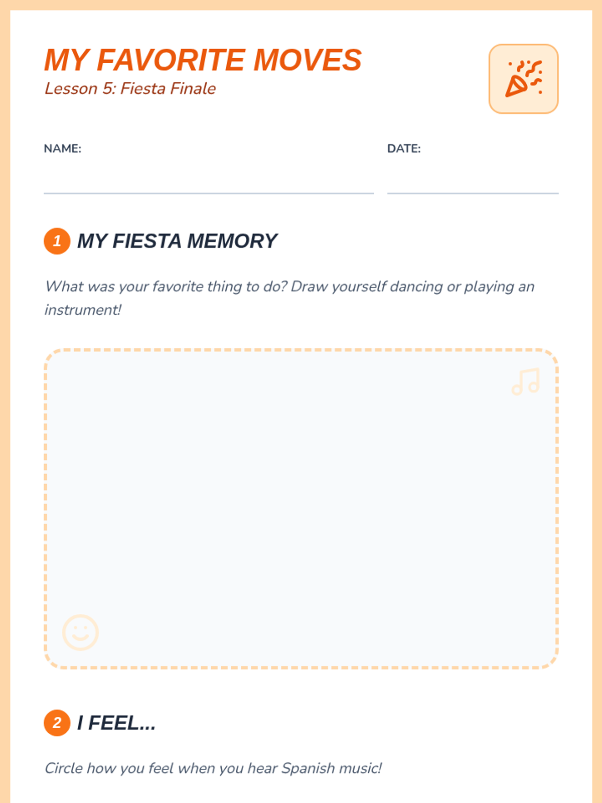A vibrant, Pre-K focused sequence exploring Spanish and Latin American holidays and traditions. Through hands-on crafts like piñatas, masks, and crowns, students learn about cultural celebrations while developing fine motor skills and emotional expression.