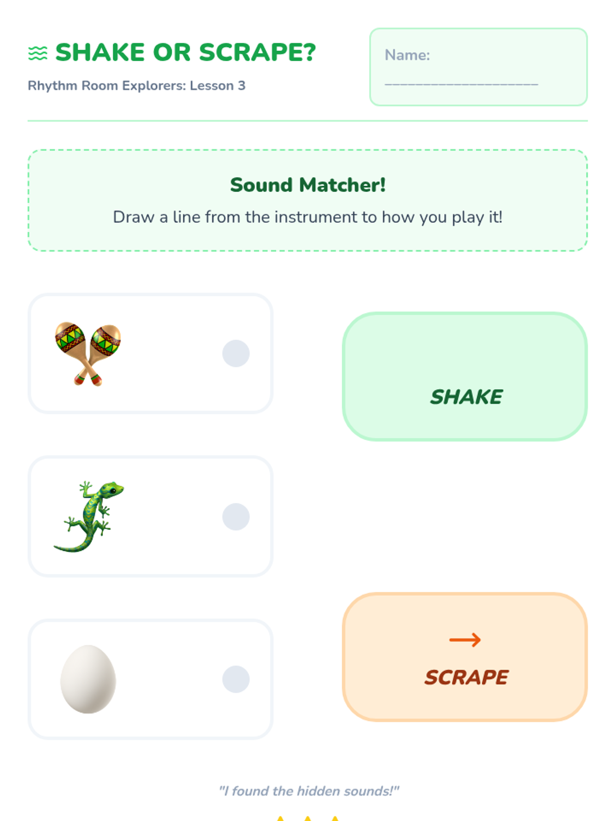A Pre-K music sequence focusing on how instruments make sound through air and vibration, exploring pitch, and introducing early music literacy through iconic notation. Students move from physical investigation to creative composition.