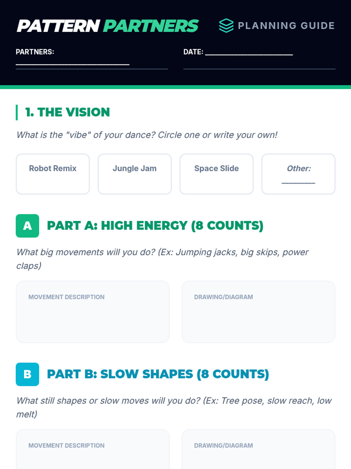 A four-day music and movement unit for K-3 students focused on collaboration, rhythm, and creative choreography. Groups work together to select songs and build original dance routines.