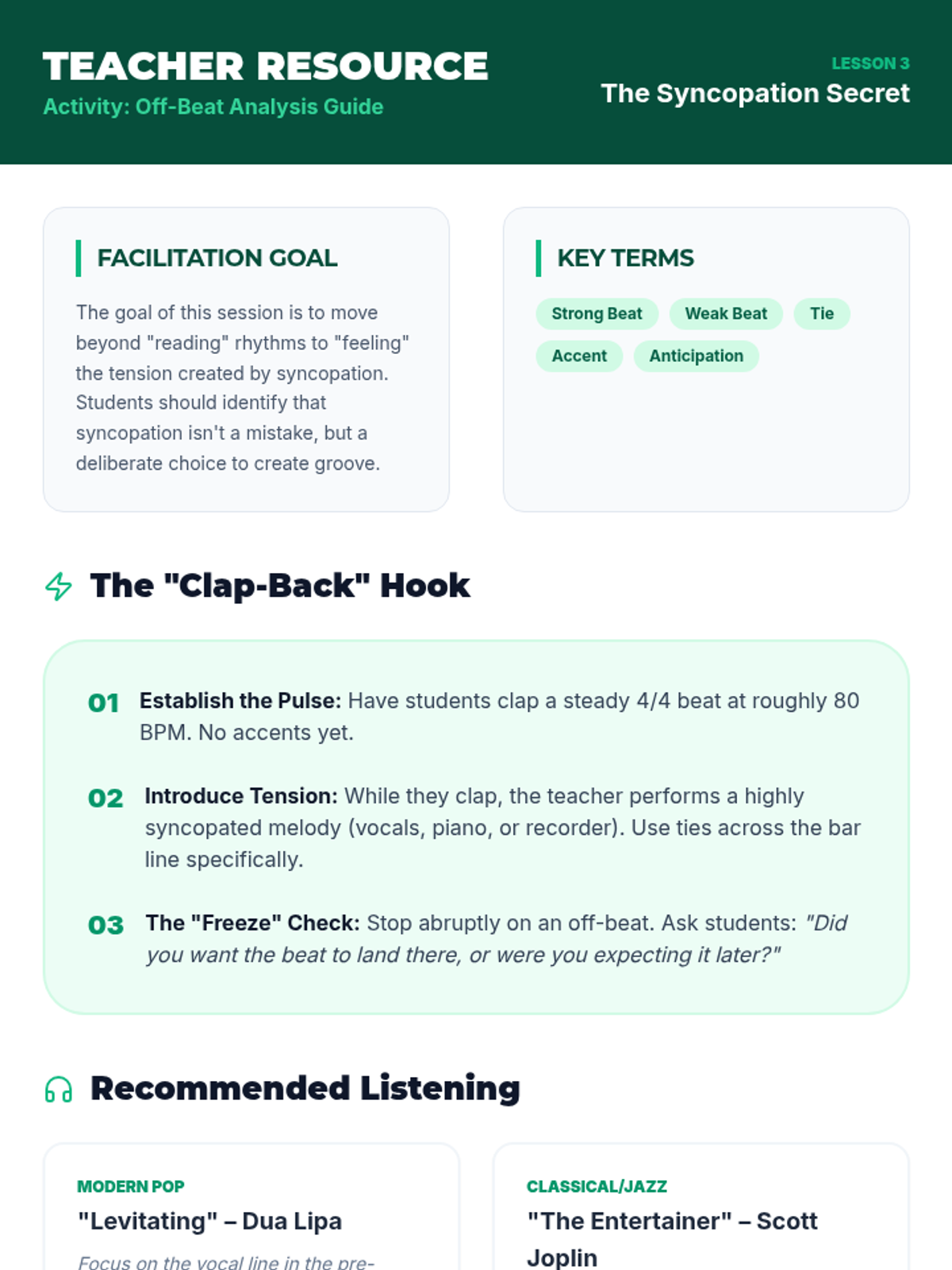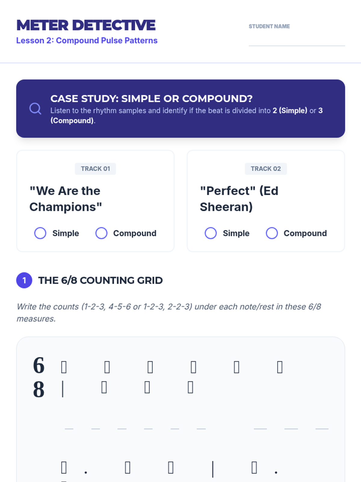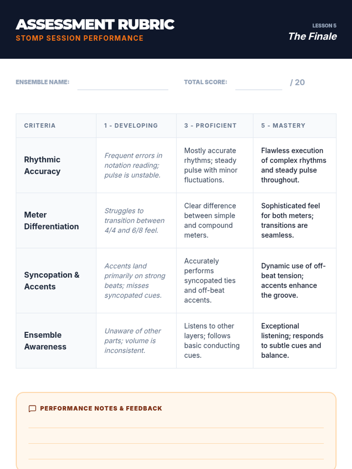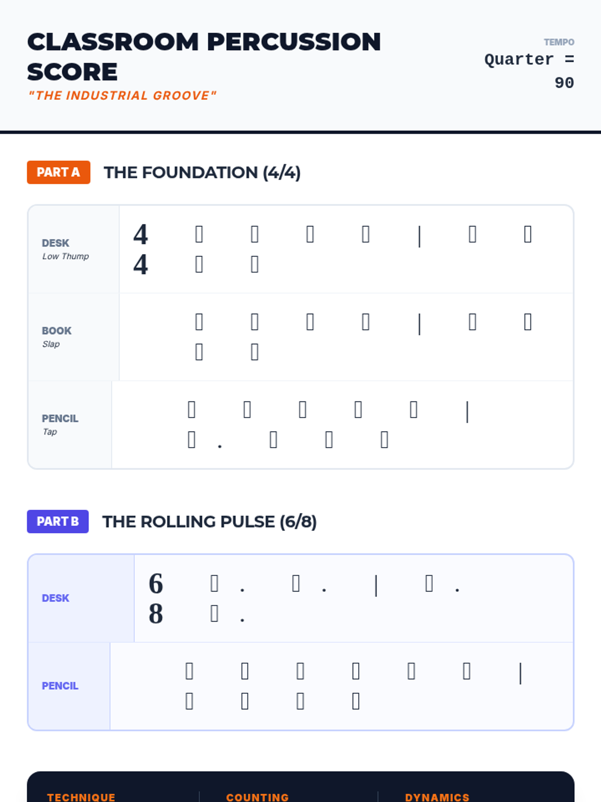 A comprehensive unit for 7th-grade music students focusing on advanced rhythmic concepts, including simple and compound meters, syncopation, and dotted rhythms, culminating in a percussion ensemble performance.