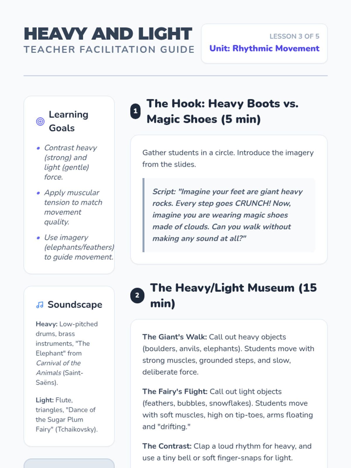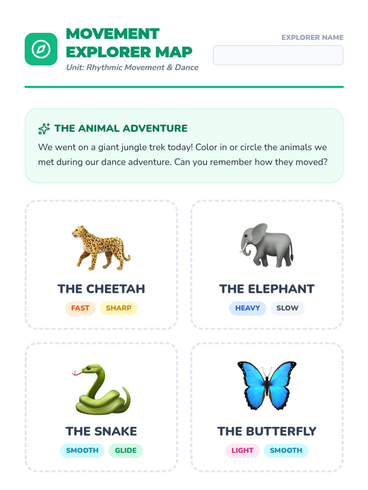 A Kindergarten sequence focused on the fundamentals of rhythmic movement and dance. Students explore time (beat and tempo) and energy (force and flow) through play-based discovery and creative expression.