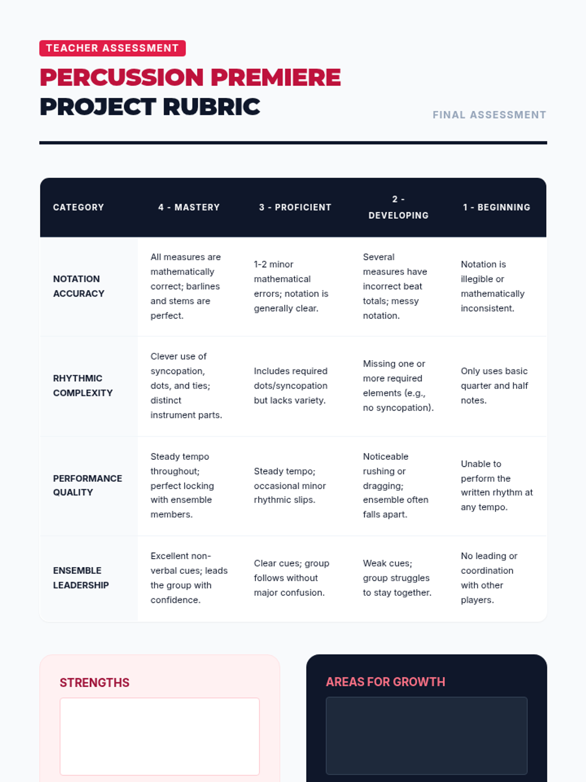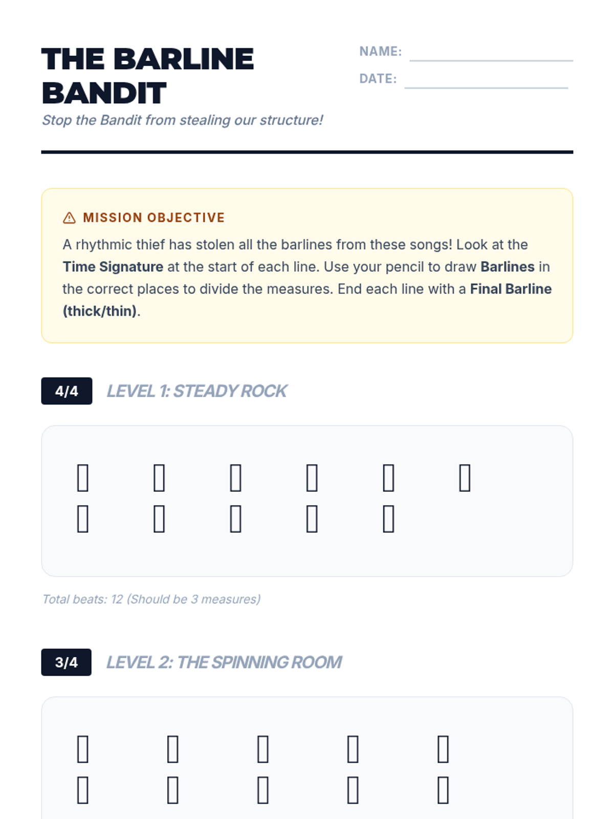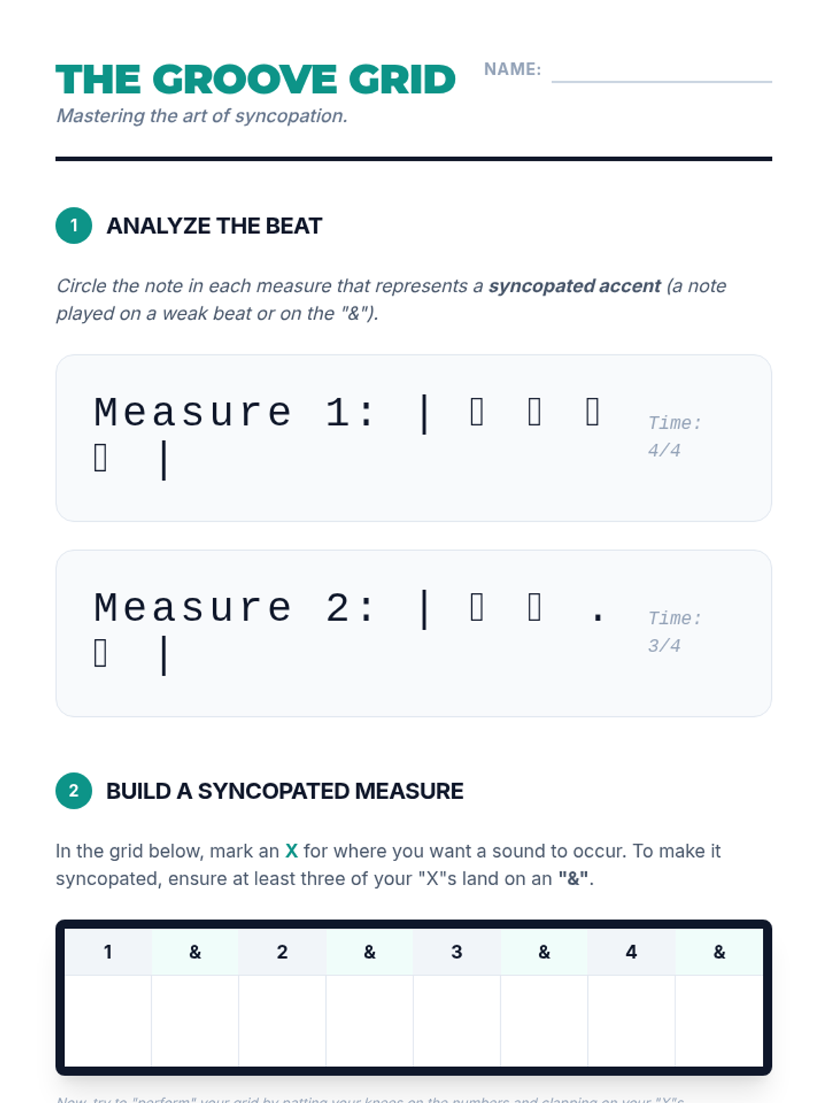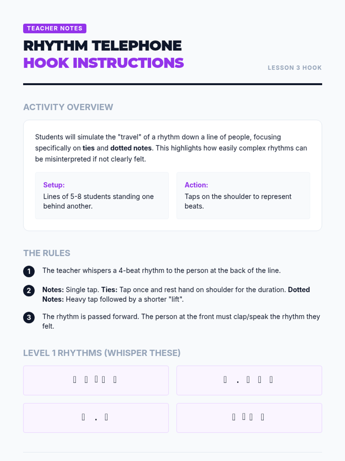 A comprehensive sequence for 6th-grade students on rhythmic notation, meter, and mathematical subdivision of music. Students progress from basic note values to complex syncopation and original composition.