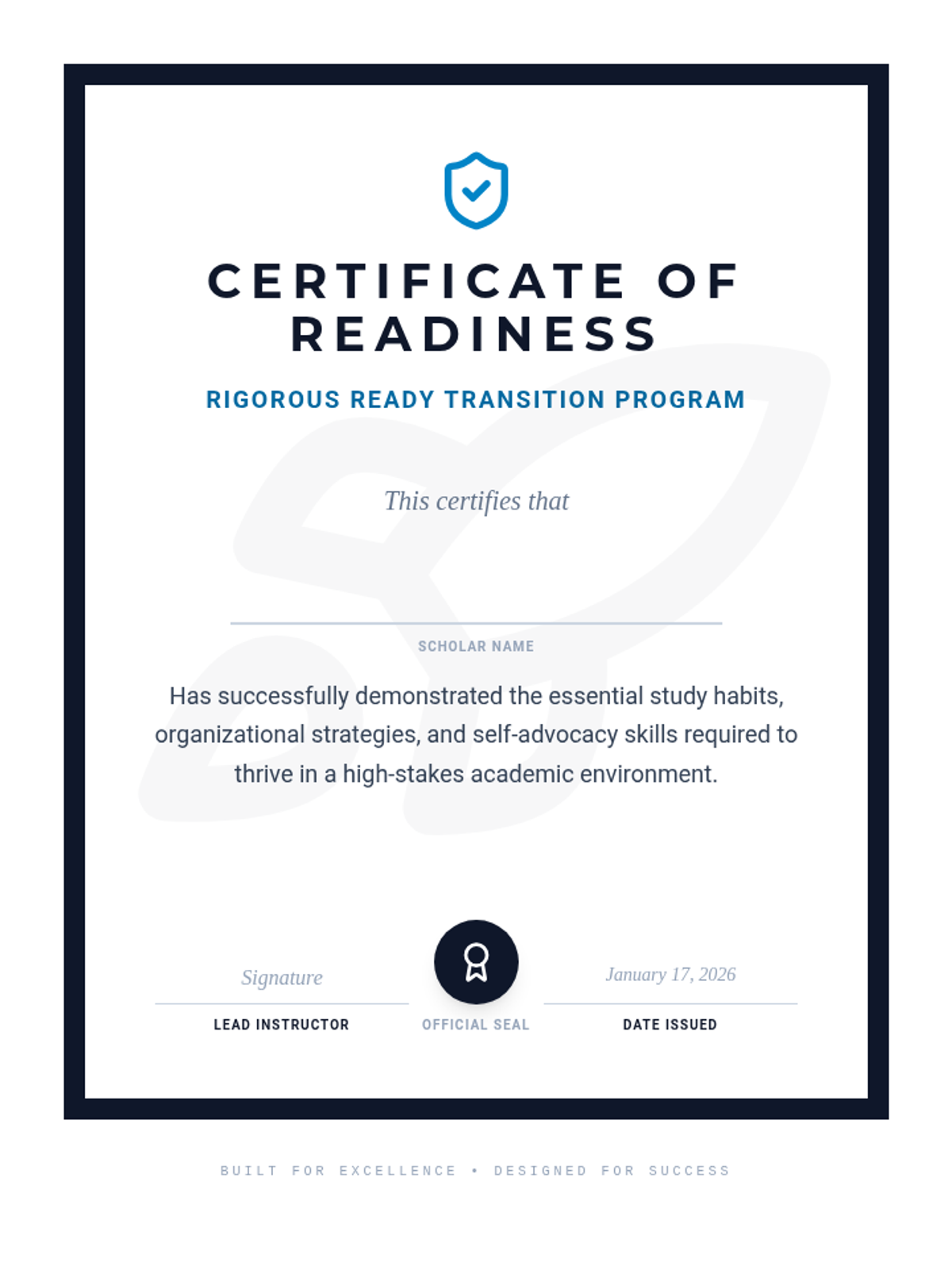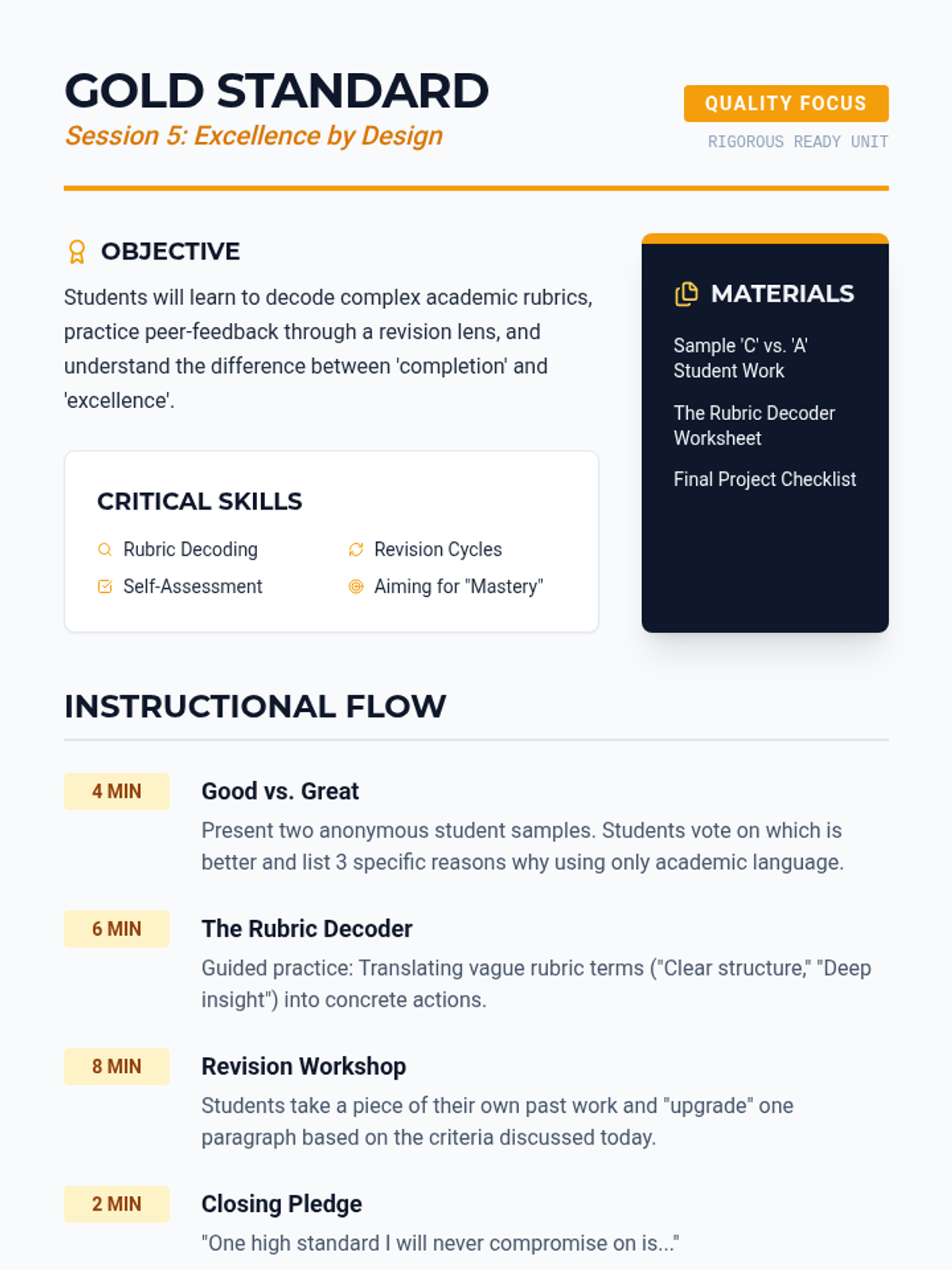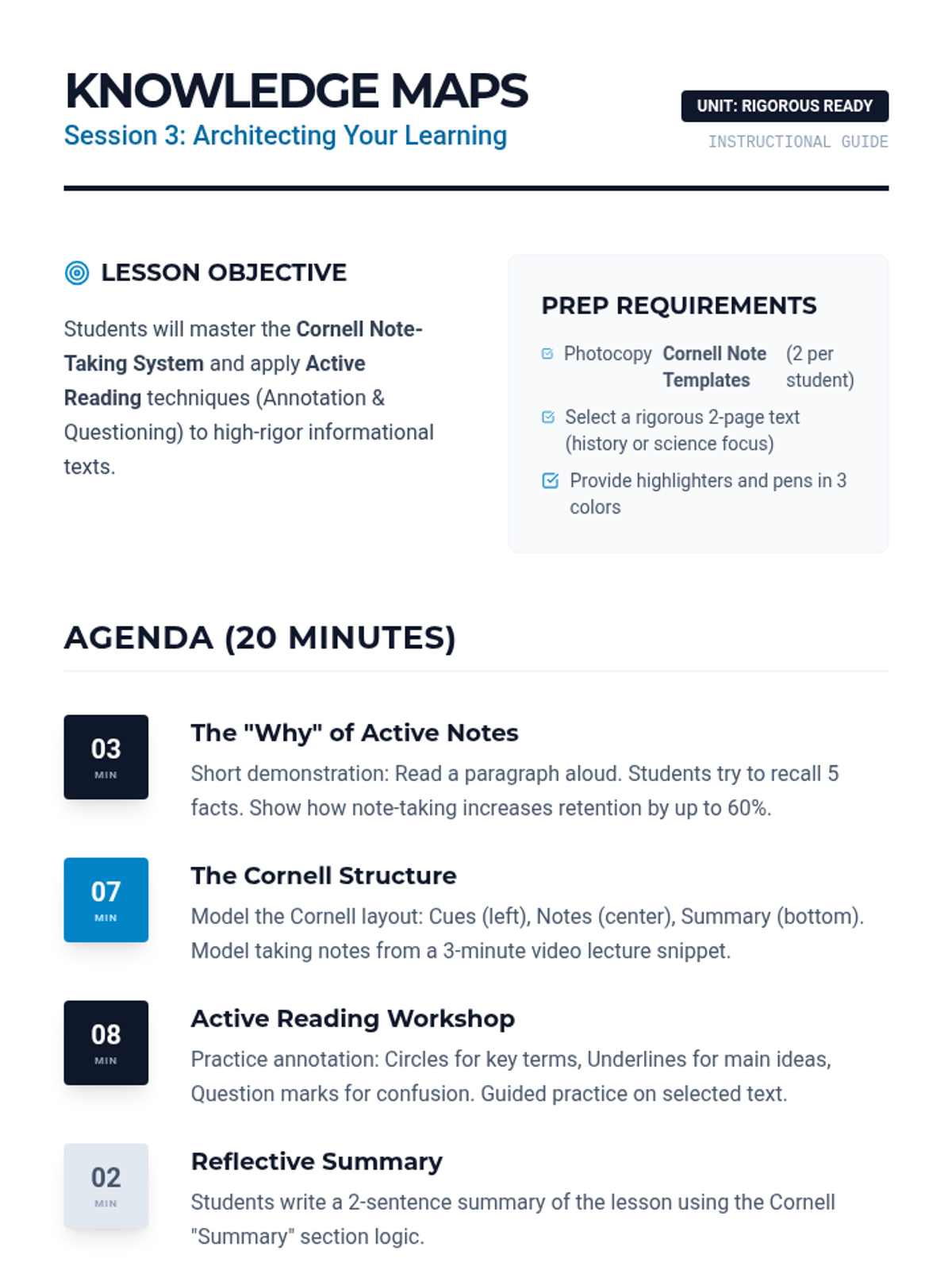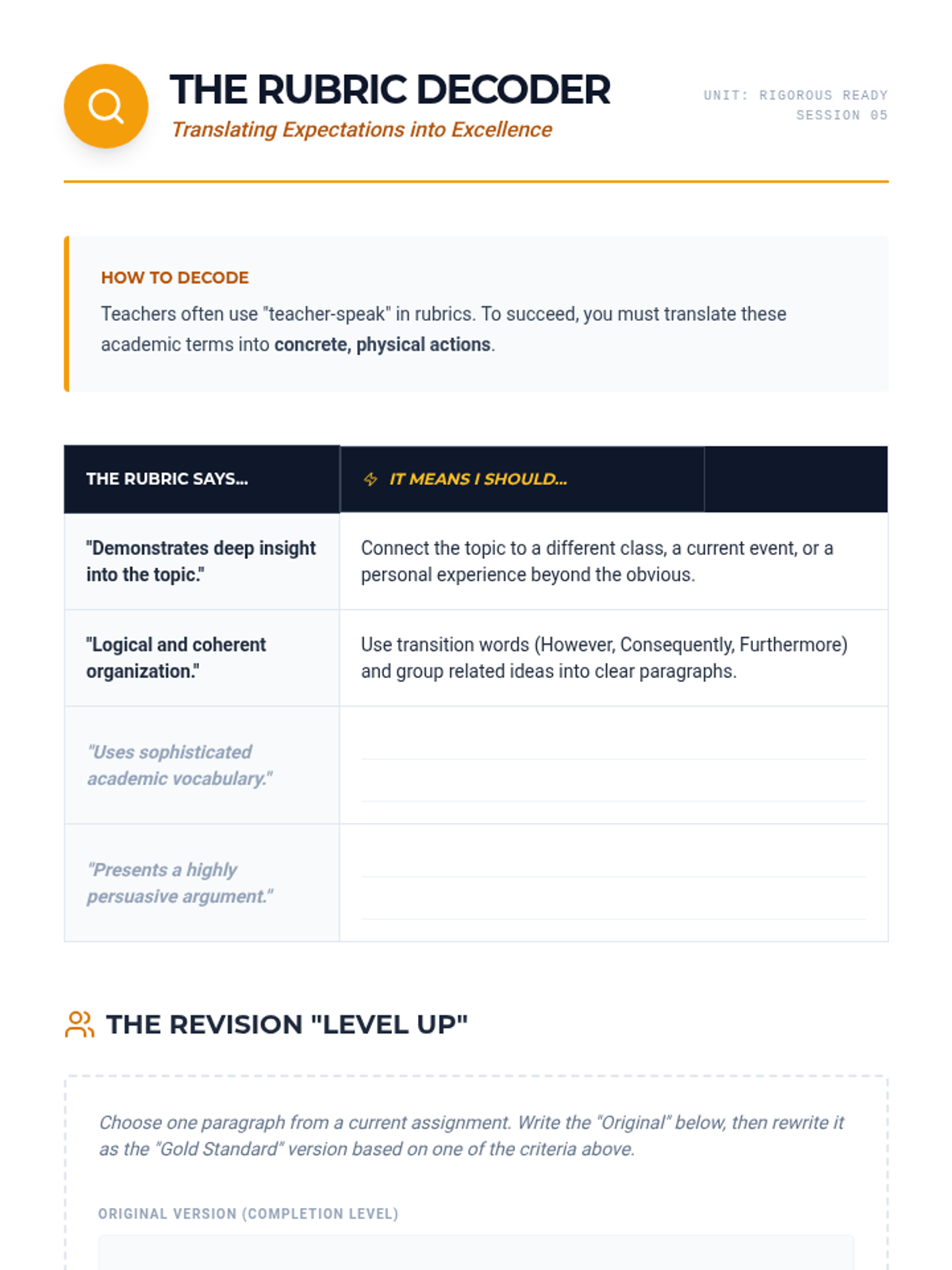 A 6-session transition unit designed to prepare high school students for the academic rigor of a charter school environment through study habits, organization, and self-advocacy.