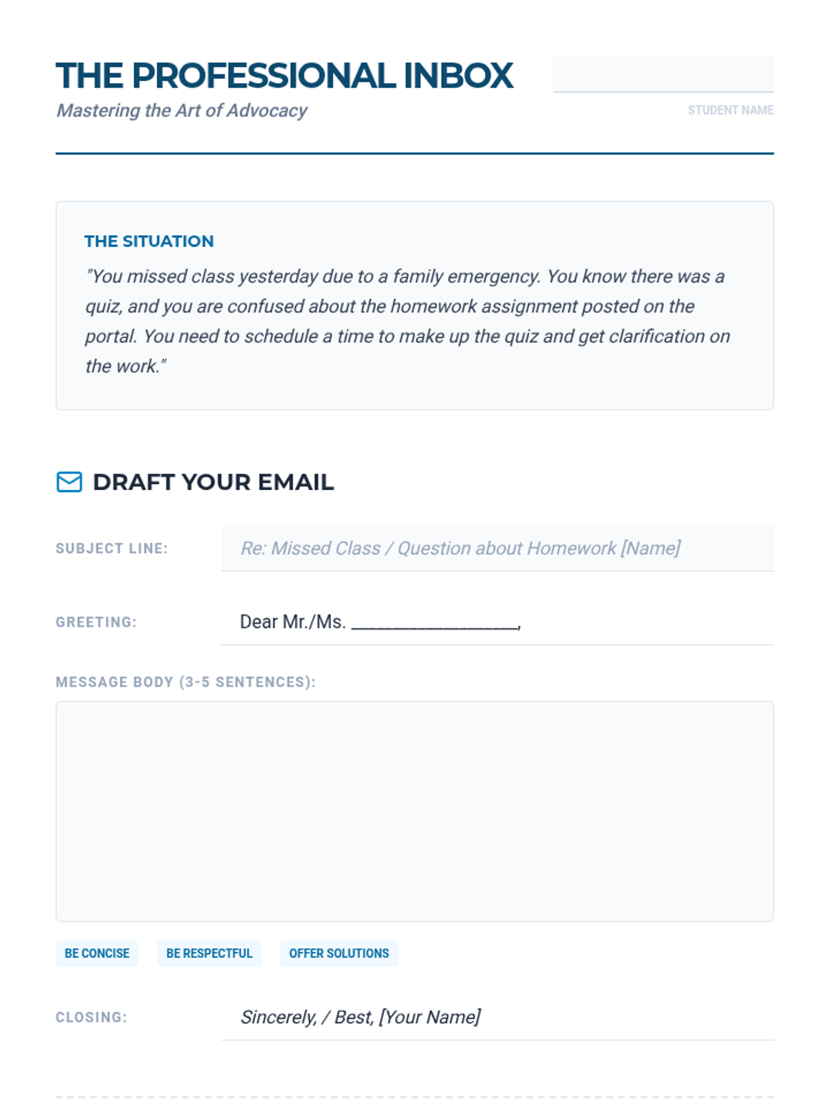 A unit focused on high school professional communication and soft skills, emphasizing the relationship between personal intent and professional impact.