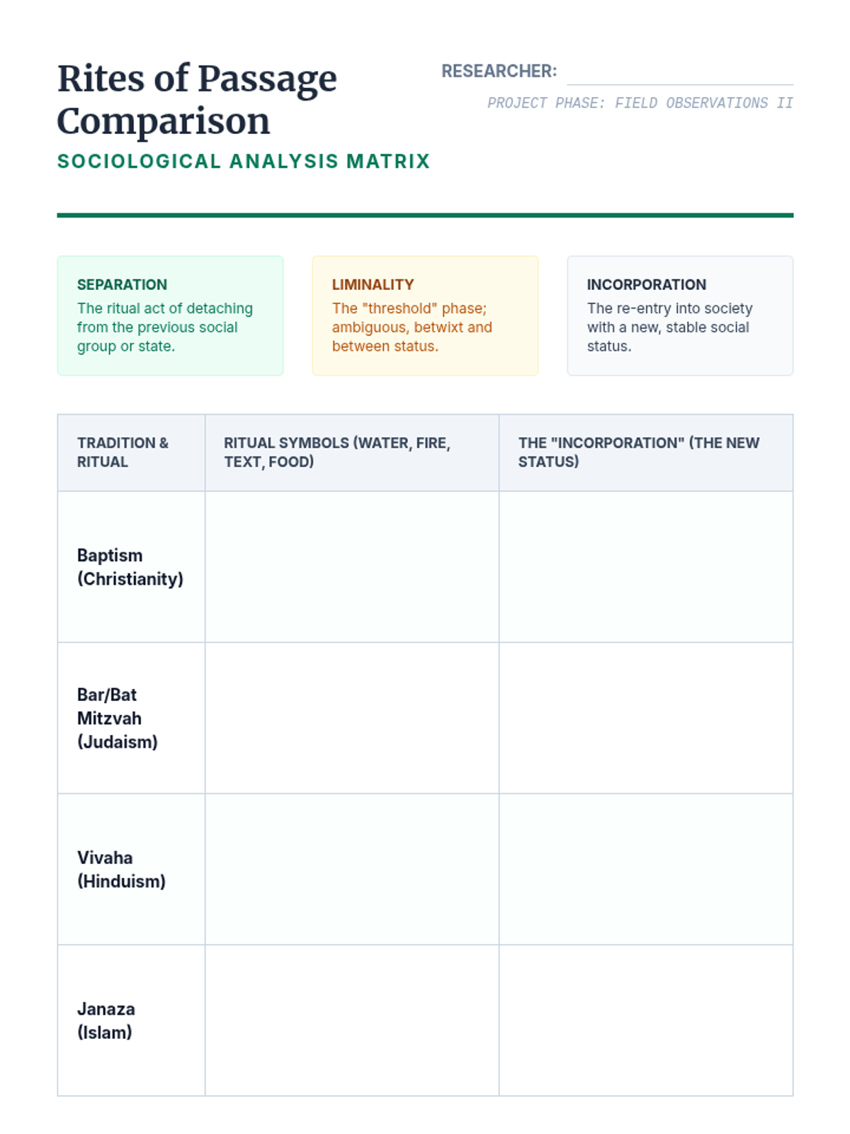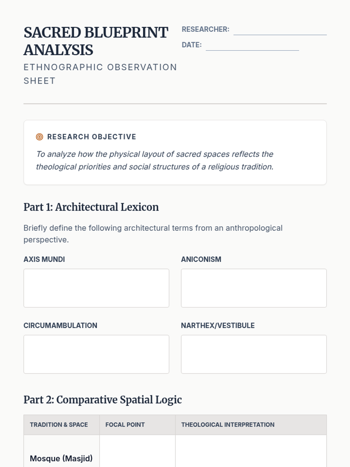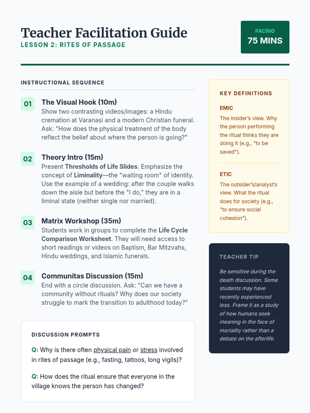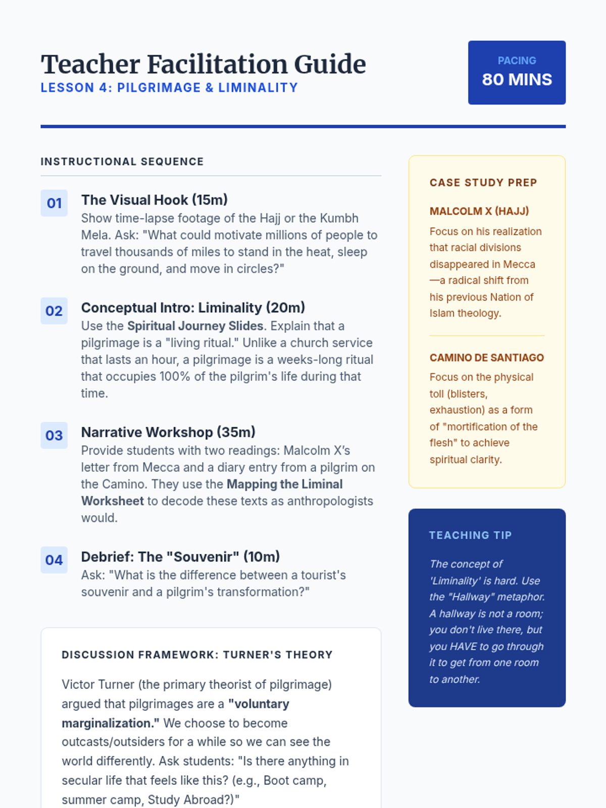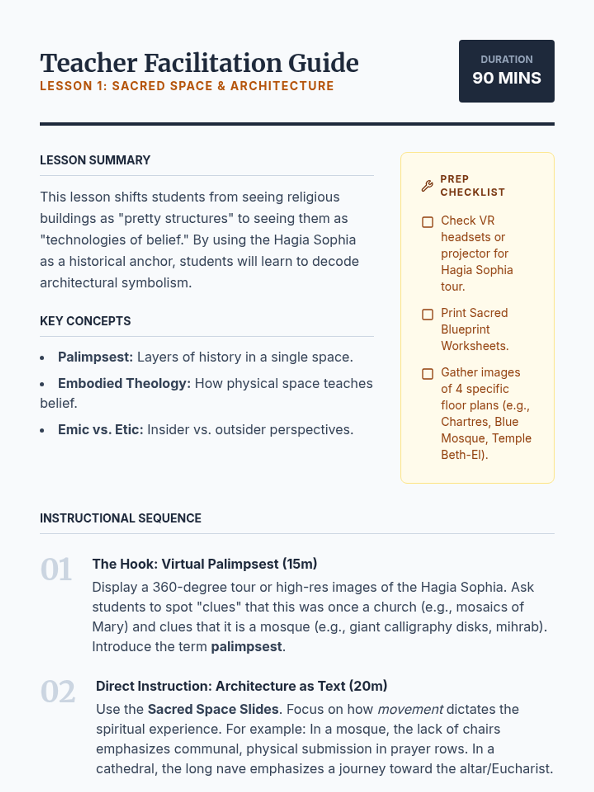 A 12th-grade social studies sequence exploring world religions through the lens of anthropology. Students act as ethnographers to analyze how rituals, symbols, and sacred spaces transform abstract beliefs into lived experiences.