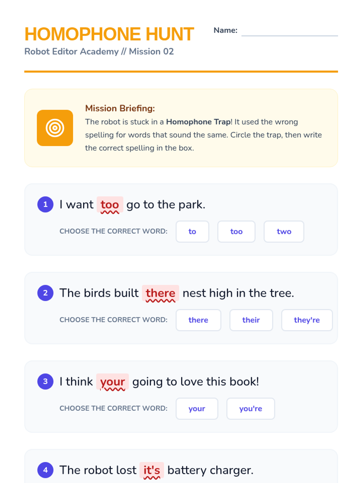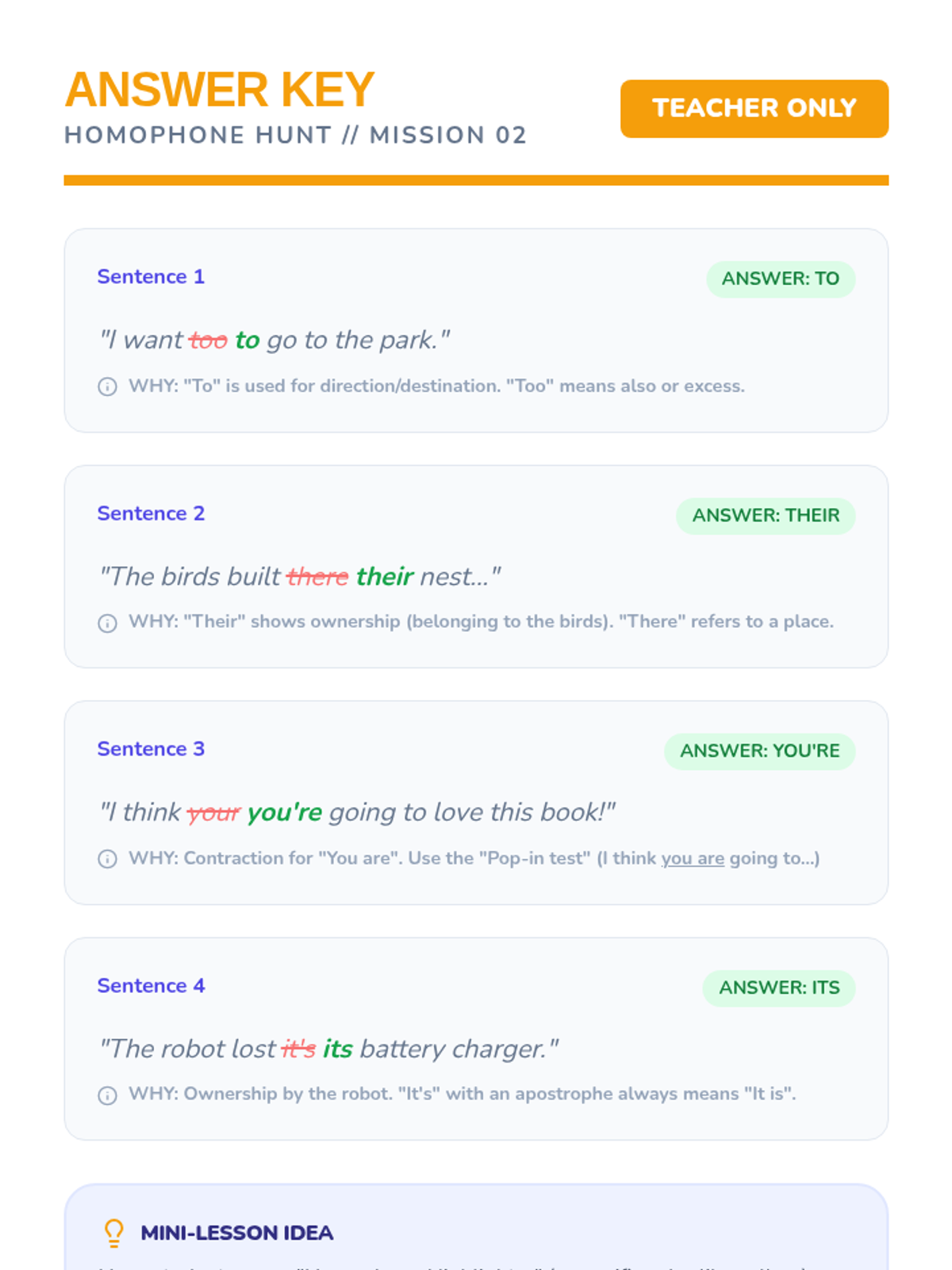 A series of lessons focused on mastering frequently confused homophones through visual color-coding and active participation.