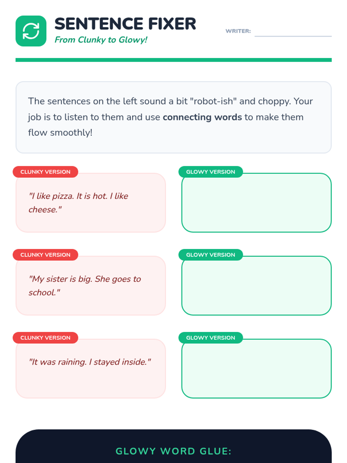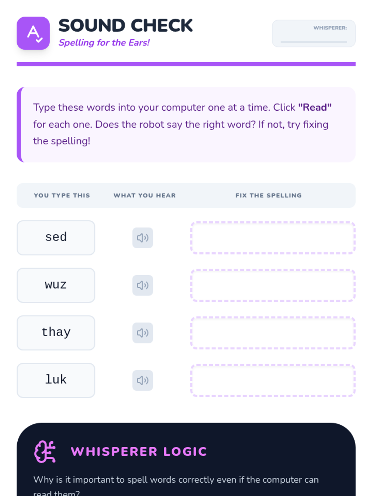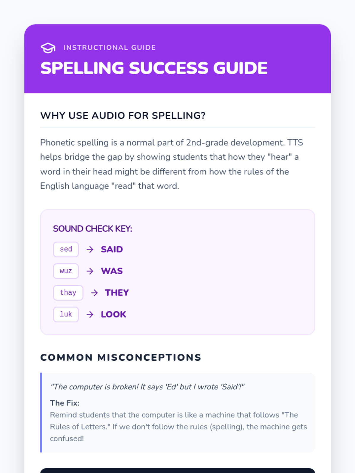 This sequence teaches 2nd-grade students how to use Text-to-Speech (TTS) technology as a powerful editing tool for their writing. Students progress from identifying simple missing words to using TTS for punctuation, fluency, and spelling, culminating in a polished final project.
