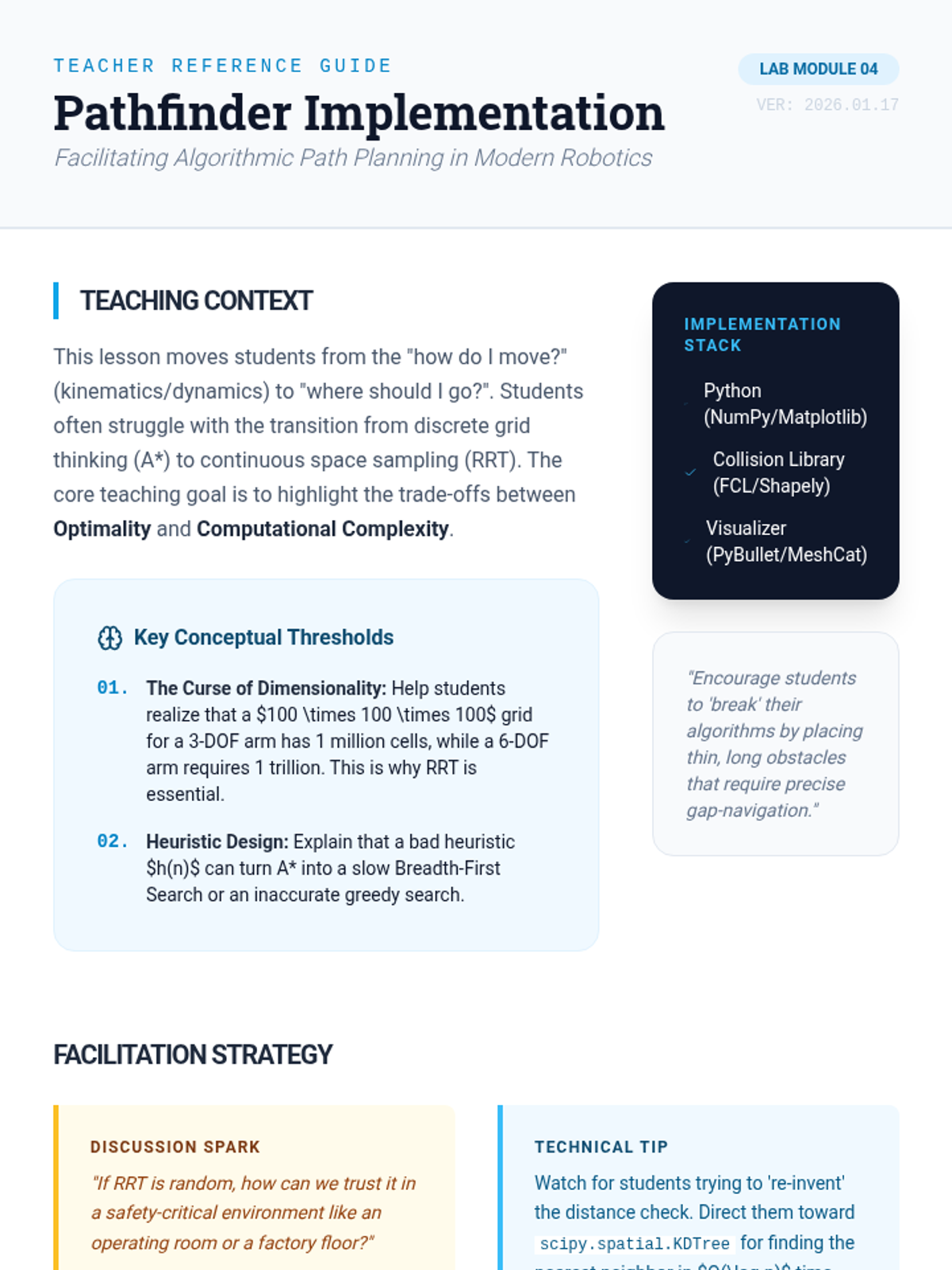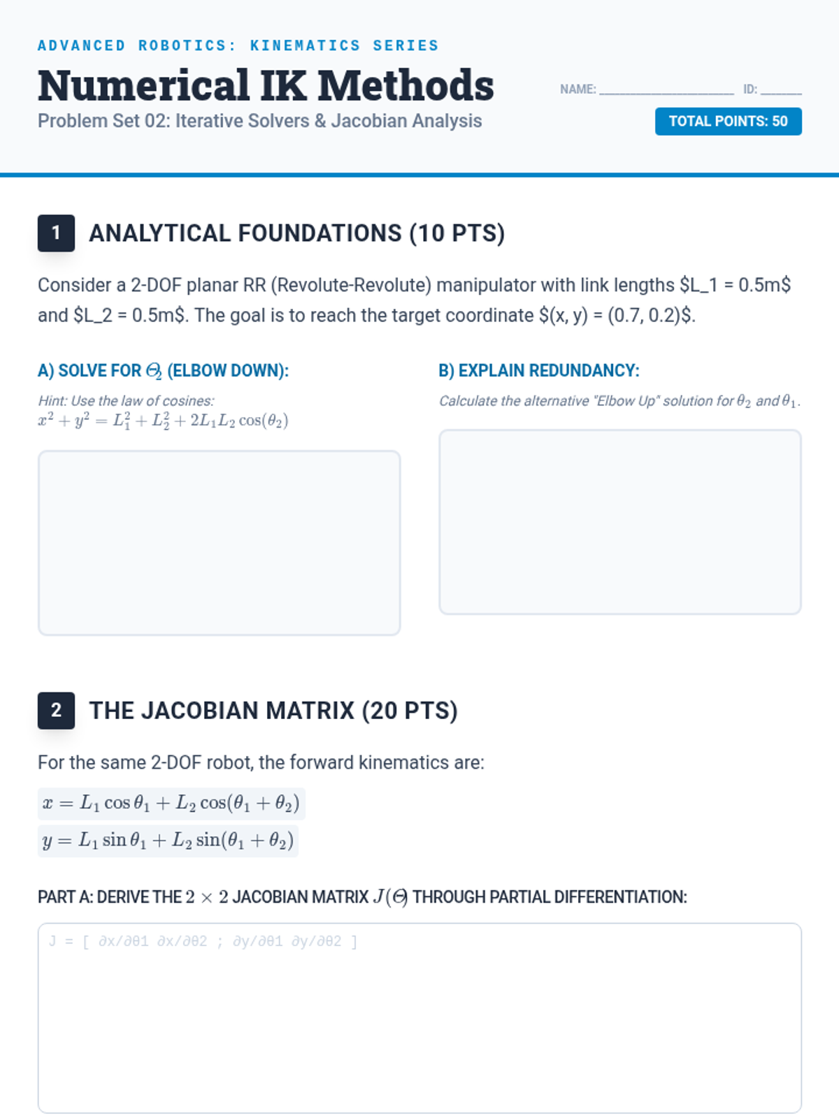A comprehensive undergraduate-level sequence covering the mathematical foundations of robotics, from classical DH kinematics and Lagrangian dynamics to modern AI-driven path planning and reinforcement learning.