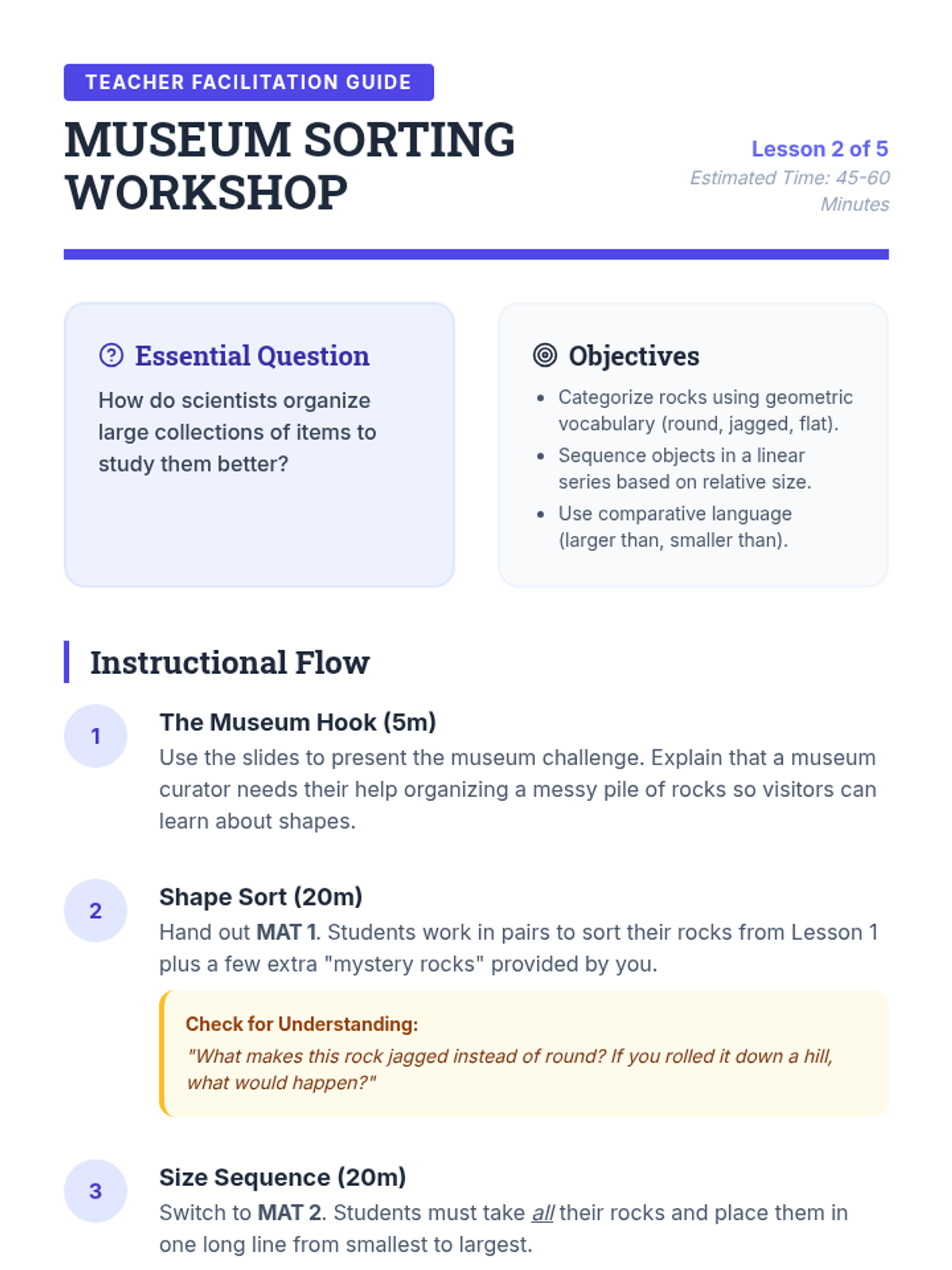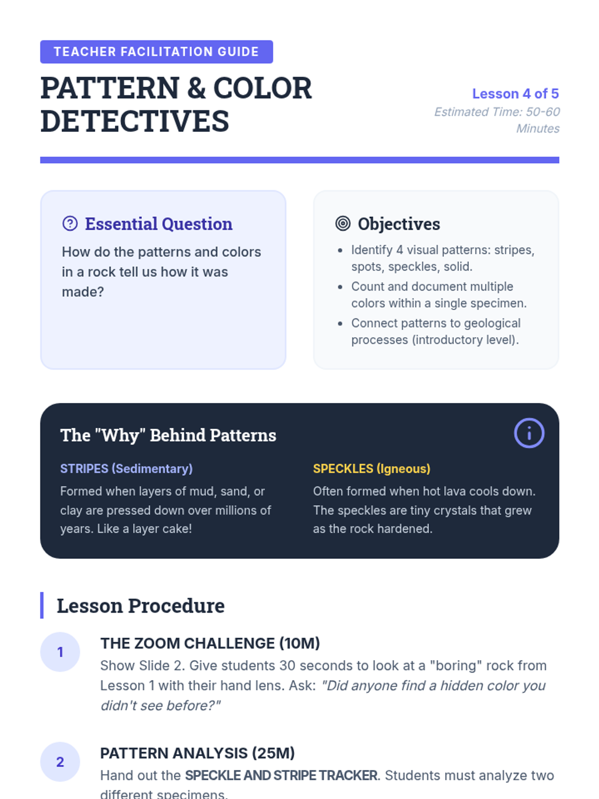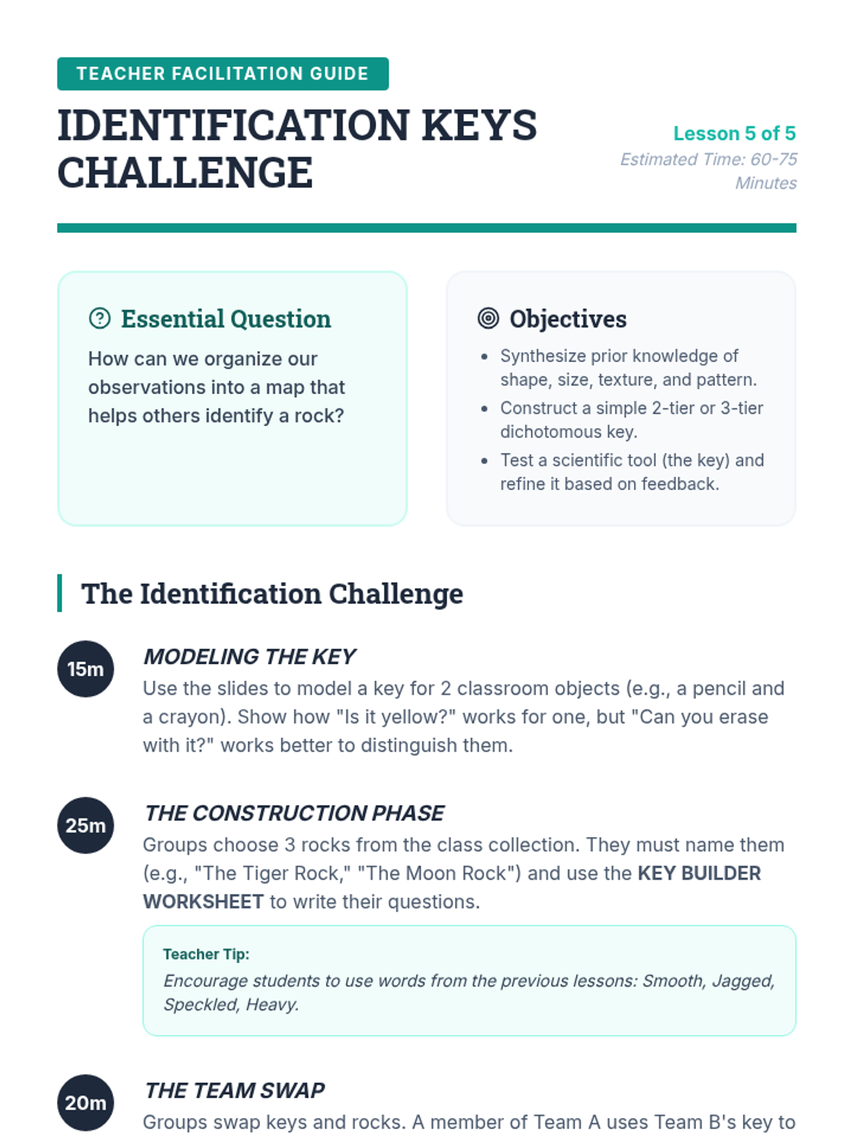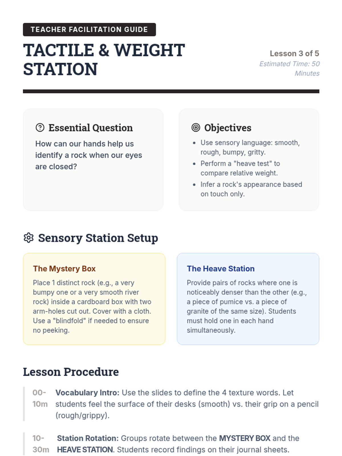 A comprehensive 2nd Grade earth science unit focused on the physical properties of rocks. Students learn to observe, classify, and organize rocks using scientific tools and vocabulary through hands-on exploration.