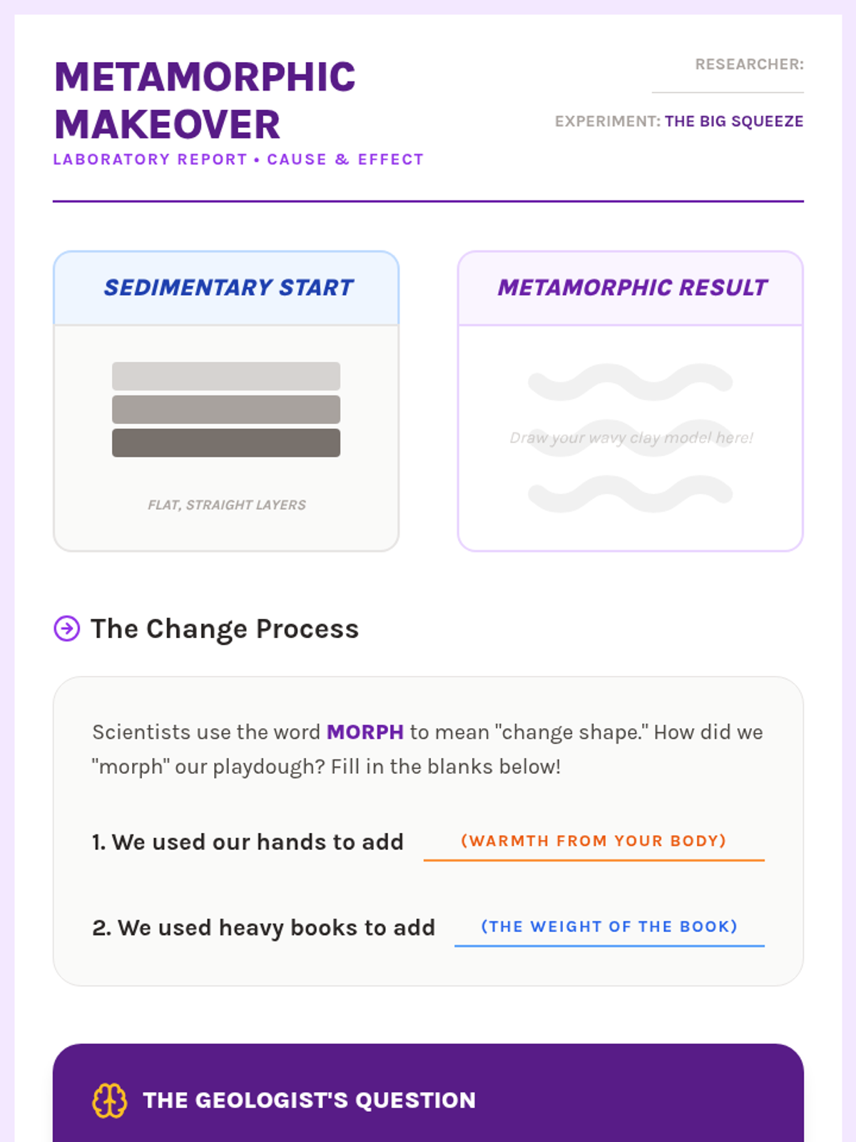In this hands-on sequence, students explore how the three major rock types—sedimentary, metamorphic, and igneous—are formed. Using food items and modeling clay as analogs for geological materials, students simulate the processes of pressure, heat, and cooling. This tactile approach helps concrete learners visualize abstract geological timescales and deep-earth processes. By the end of the sequence, students will be able to identify key visual characteristics that signal how a specific rock was made.