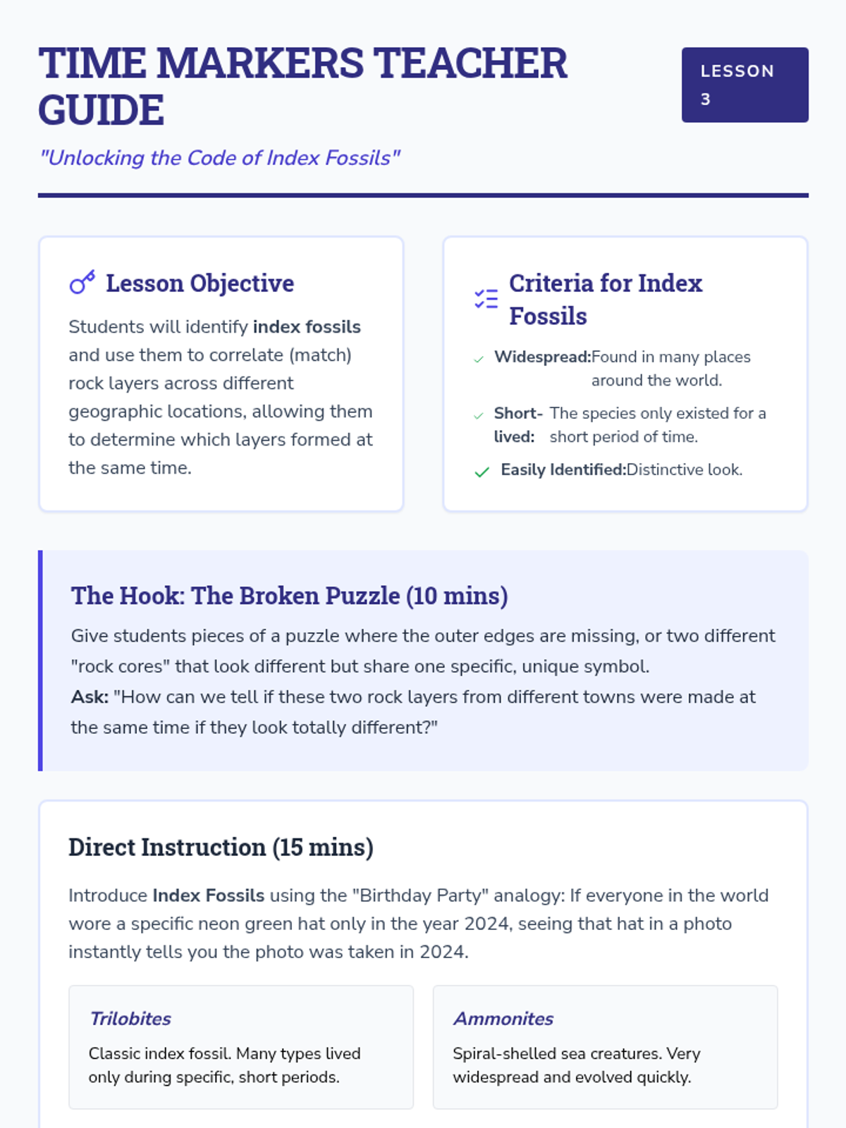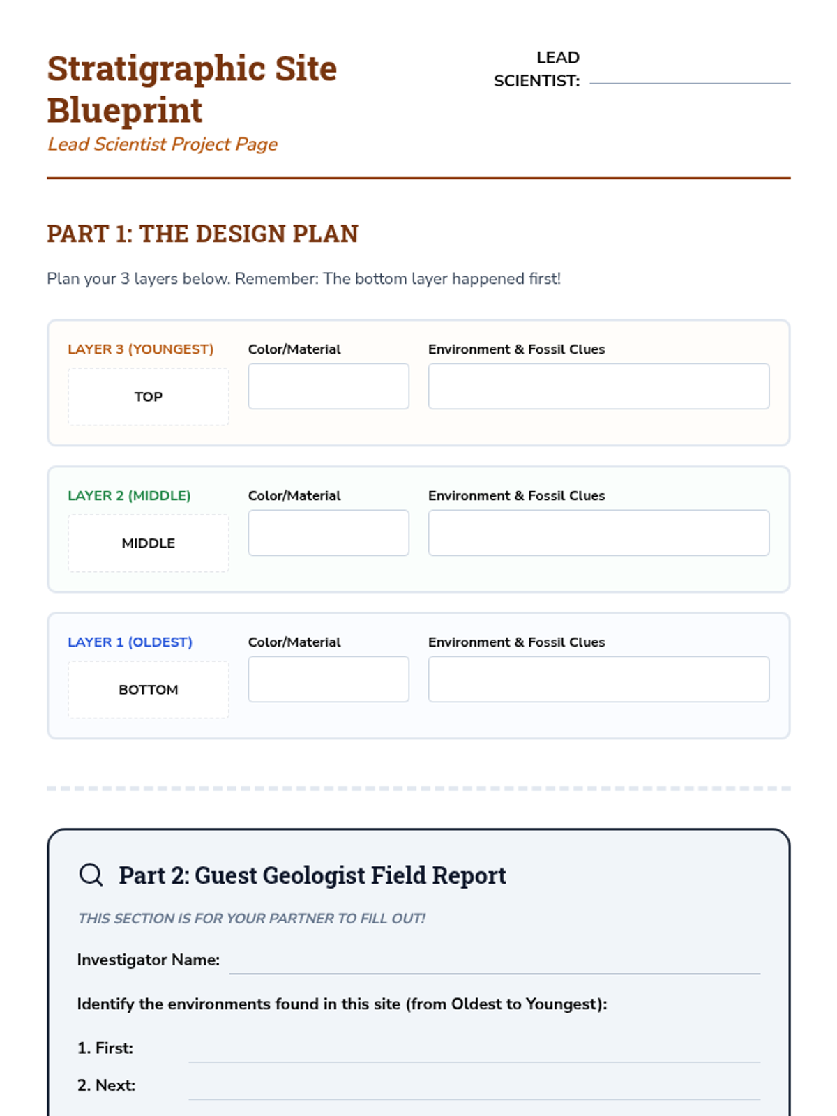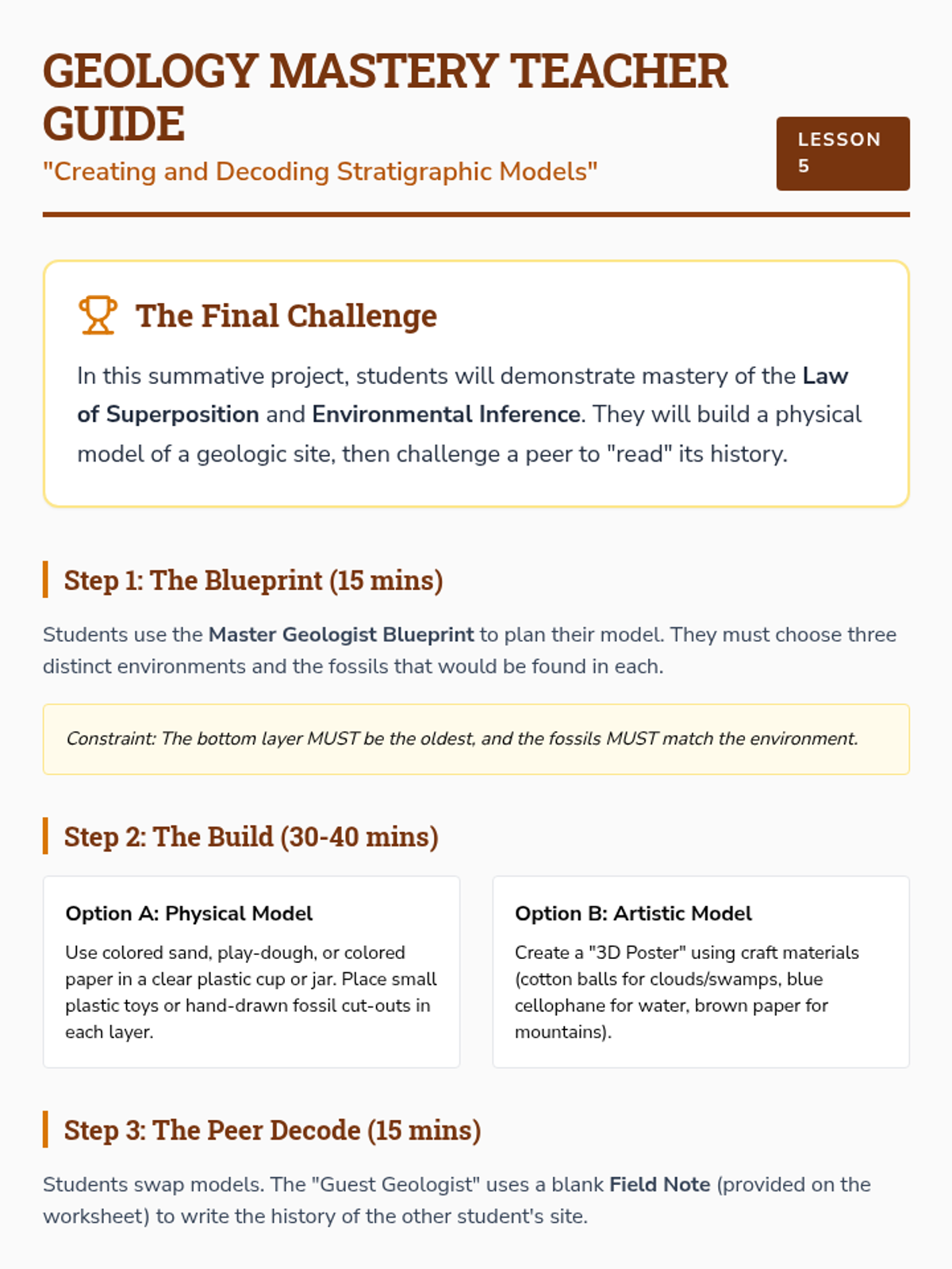 A comprehensive 3rd-grade unit on stratigraphy and geologic history, teaching students how to read rock layers like pages in a book to understand Earth's past environments and the Law of Superposition.