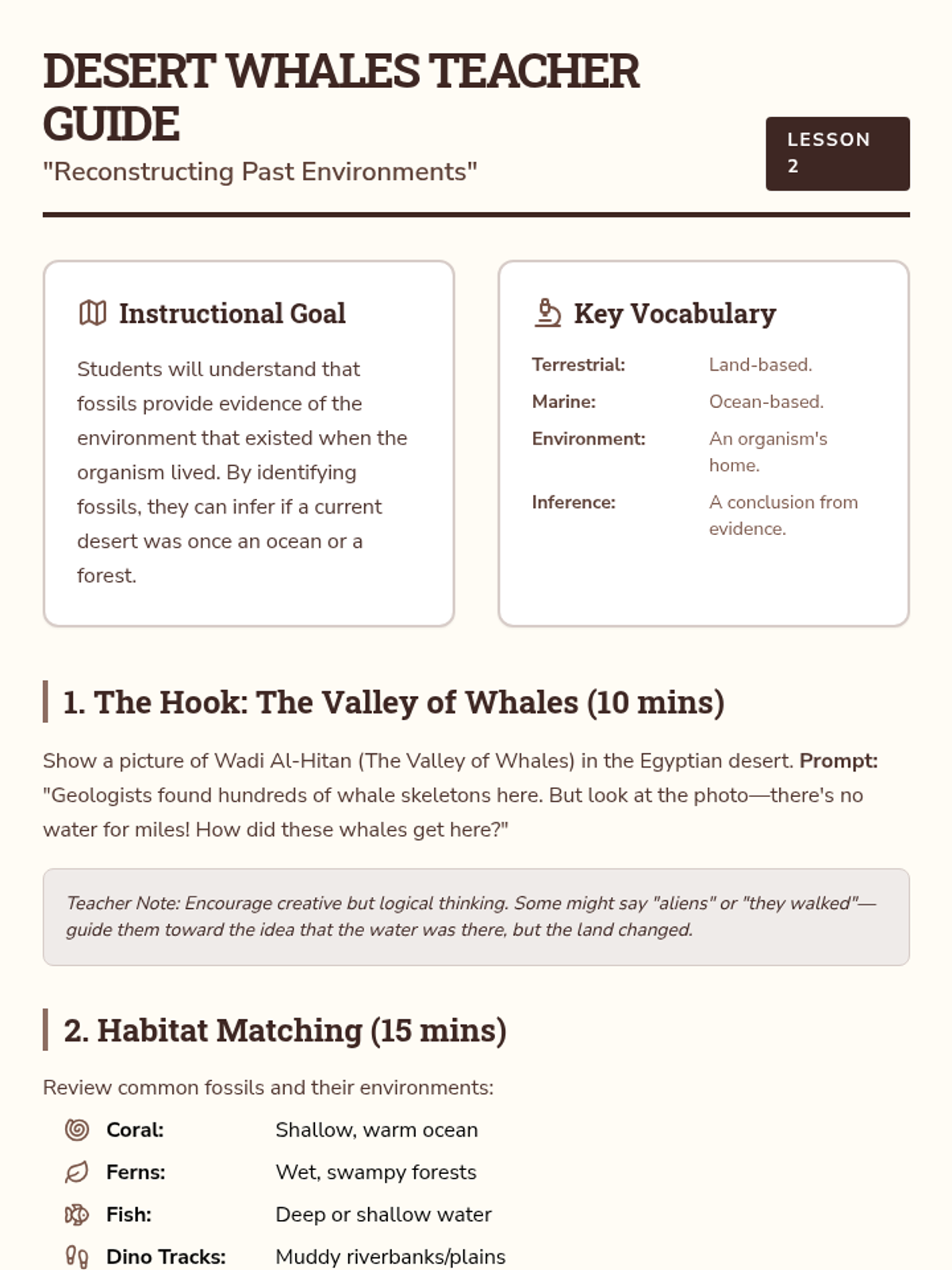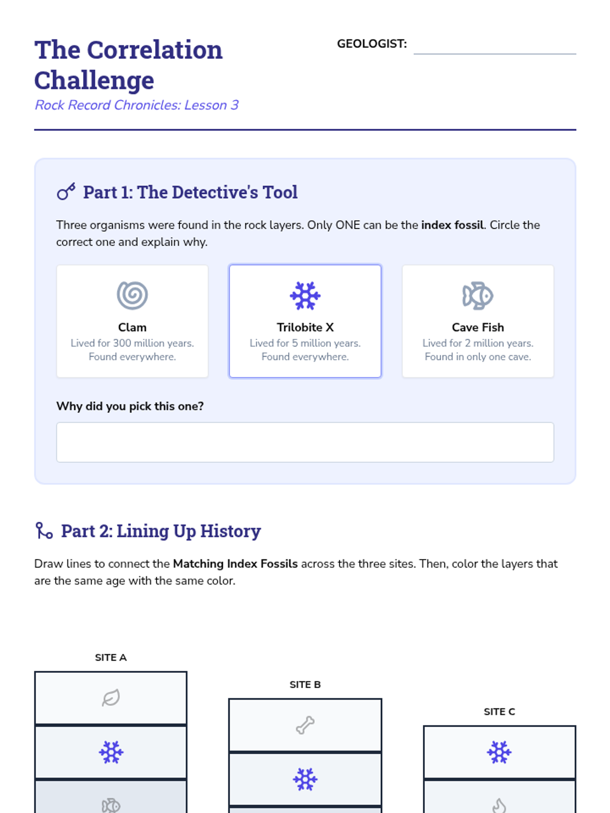 Students become fossil detectives to reconstruct ancient environments, using fossil evidence to understand how Earth's surface and climate have changed over millions of years.