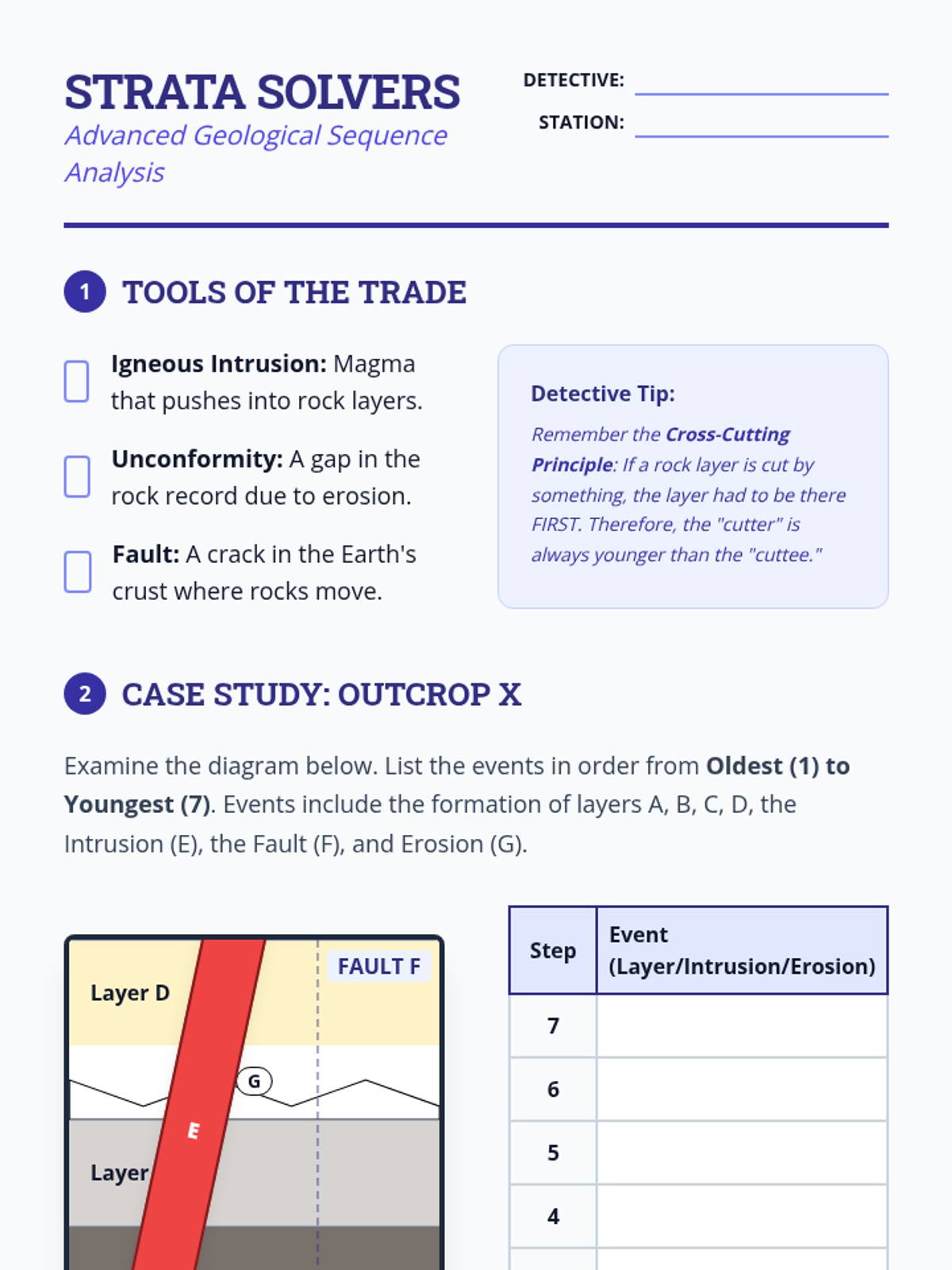 Students explore the principles of stratigraphy and the Law of Superposition to understand relative dating. They learn to read rock layers like a historical book, identifying index fossils and interpreting geological complexities to map Earth's history.