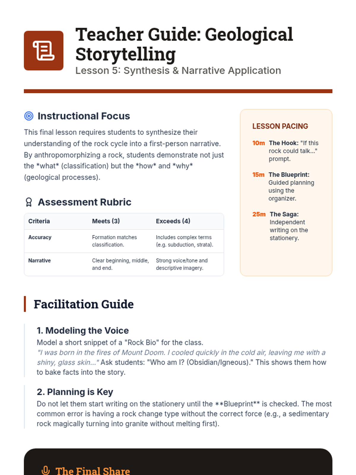 A comprehensive 4th-grade unit exploring the biological and geological mechanics of fossilization. Students move from identifying biological remains to simulating petrification, creating molds and casts, and understanding the rare conditions required for preservation.