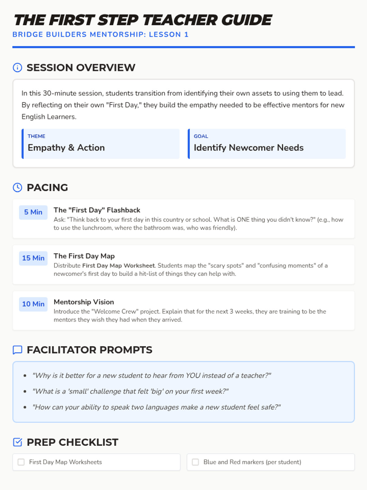 A four-week leadership sequence for English Learners to explore their cultural assets and linguistic strengths, culminating in the creation of personalized visual identity posters. This asset-based program focuses on 'Cultural Wealth' and leadership through a lens of diversity and pride.