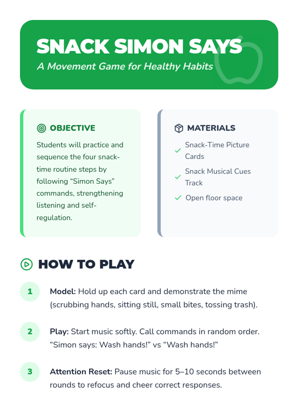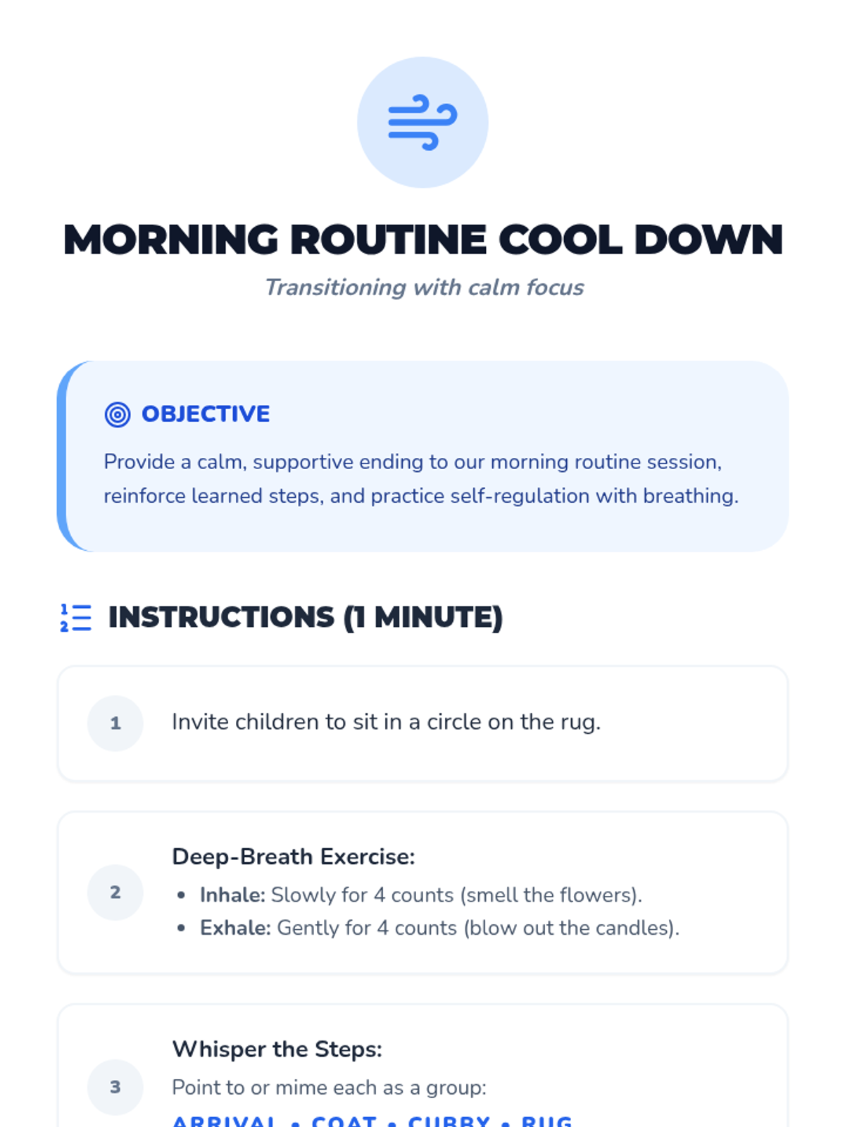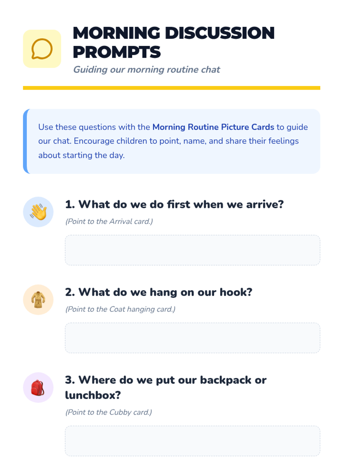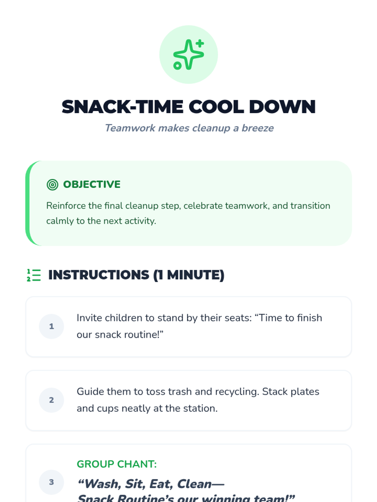 A comprehensive sequence designed to teach preschoolers essential classroom routines (Morning, Snack, and Cleanup) through stories, games, and visual aids.
