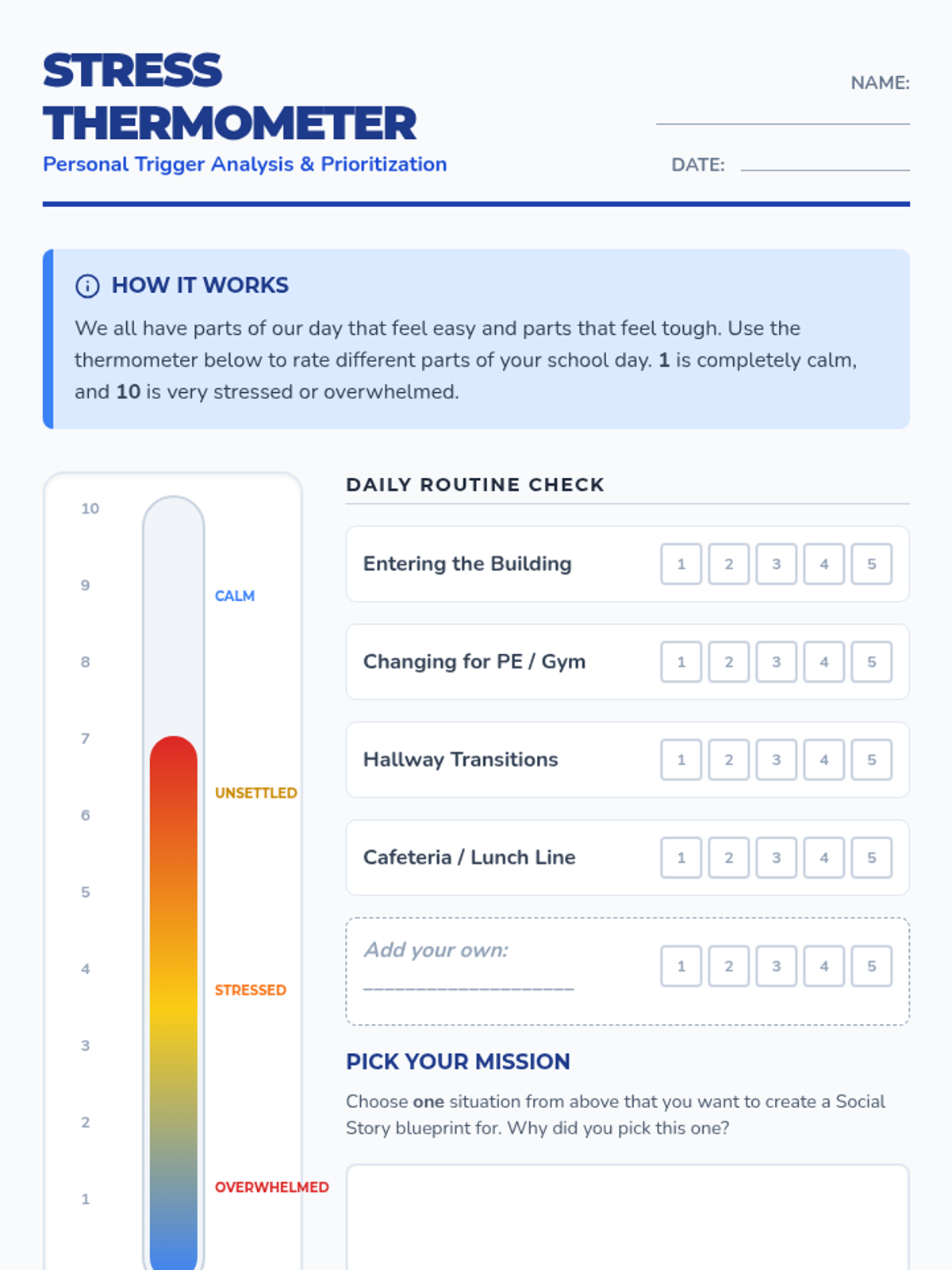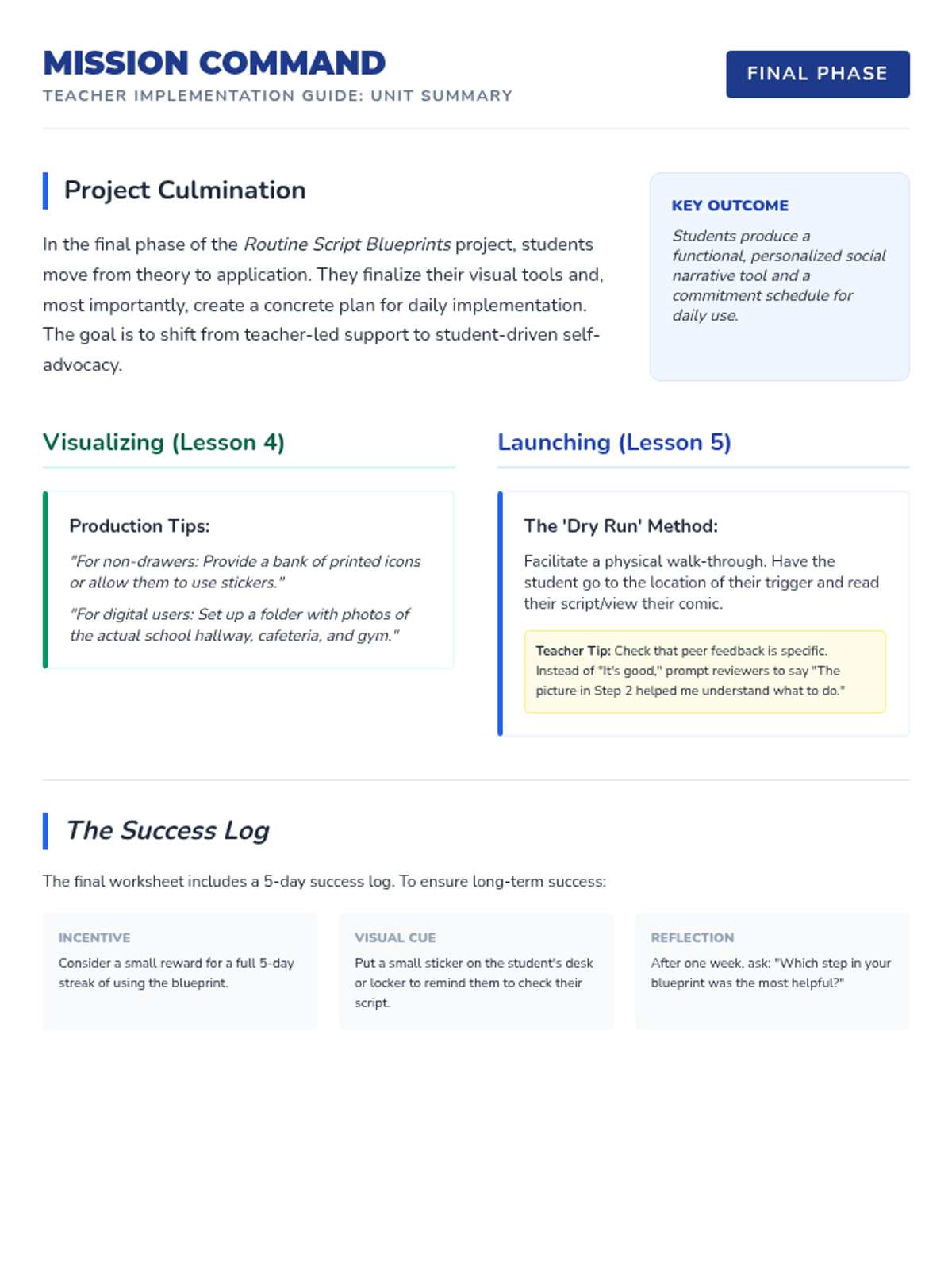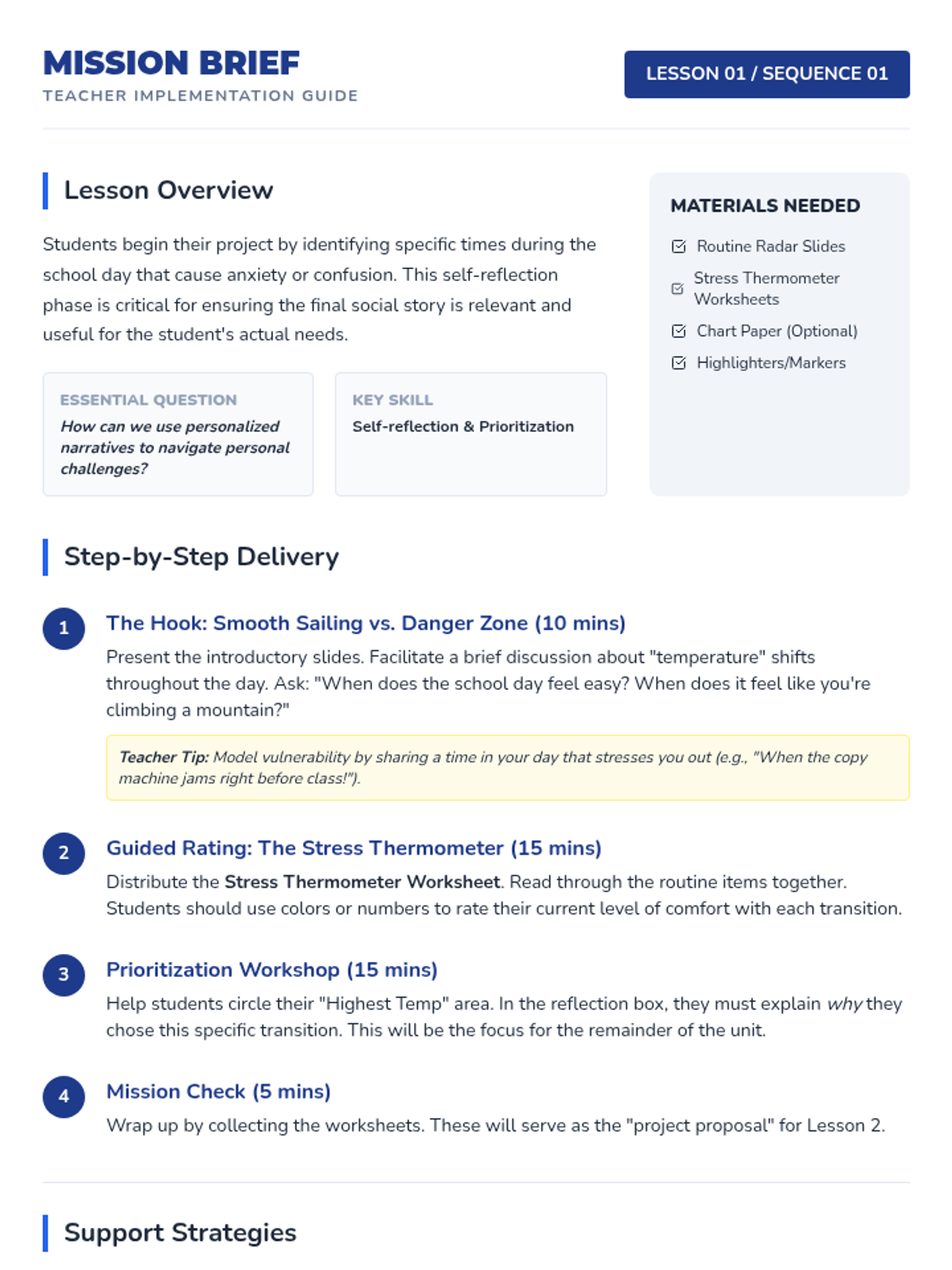 Students apply social narrative structures to create personalized tools for daily transitions and stressors. They move from identifying personal triggers to drafting, visualizing, and implementing custom routine scripts for self-advocacy and regulation.