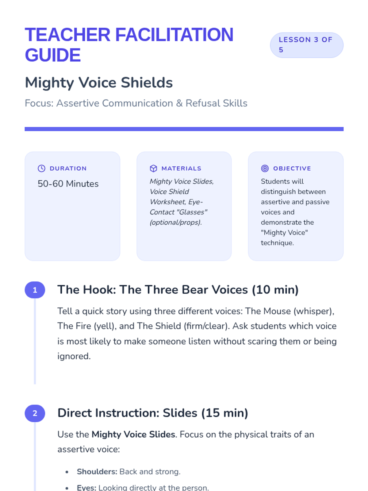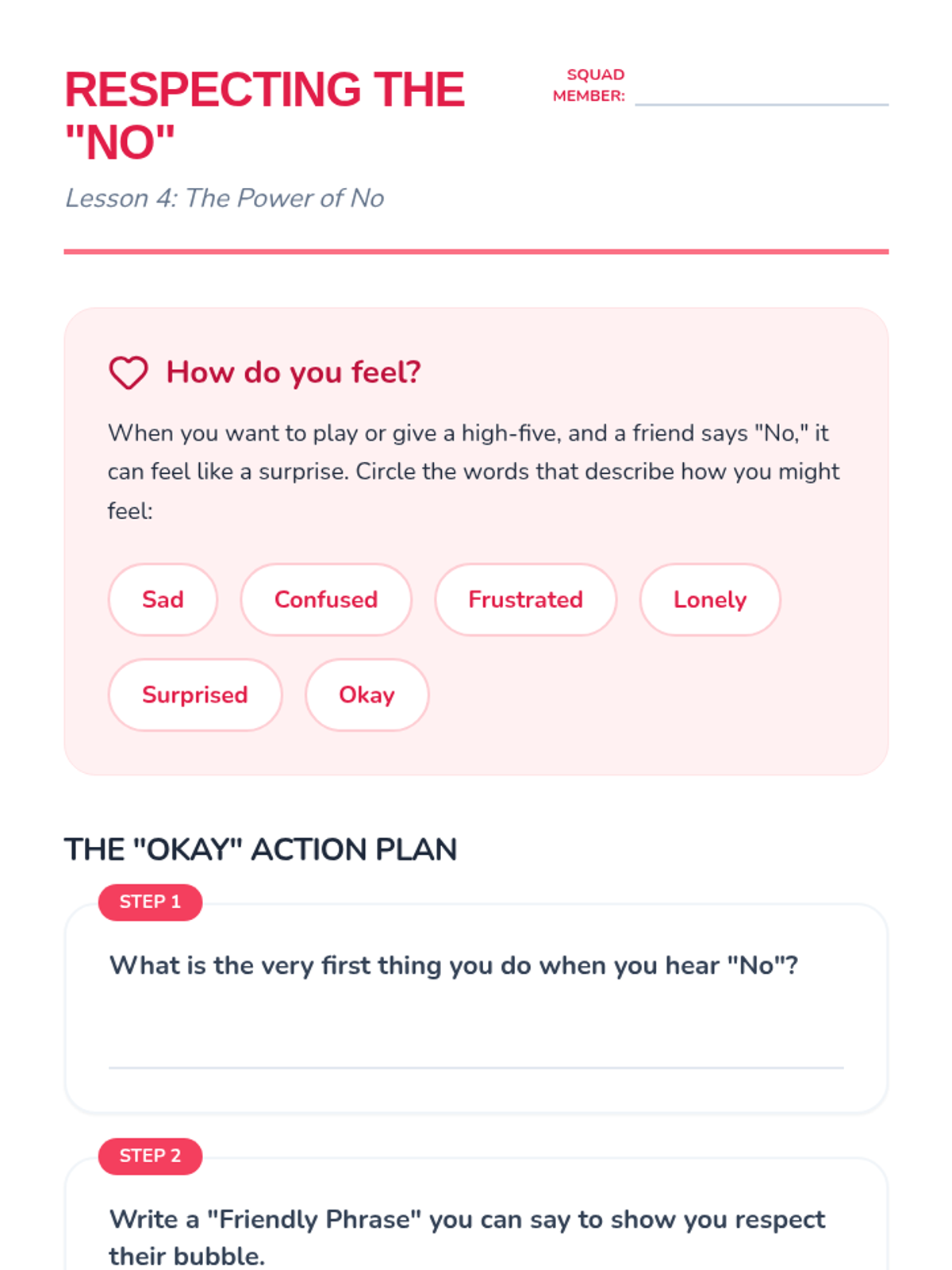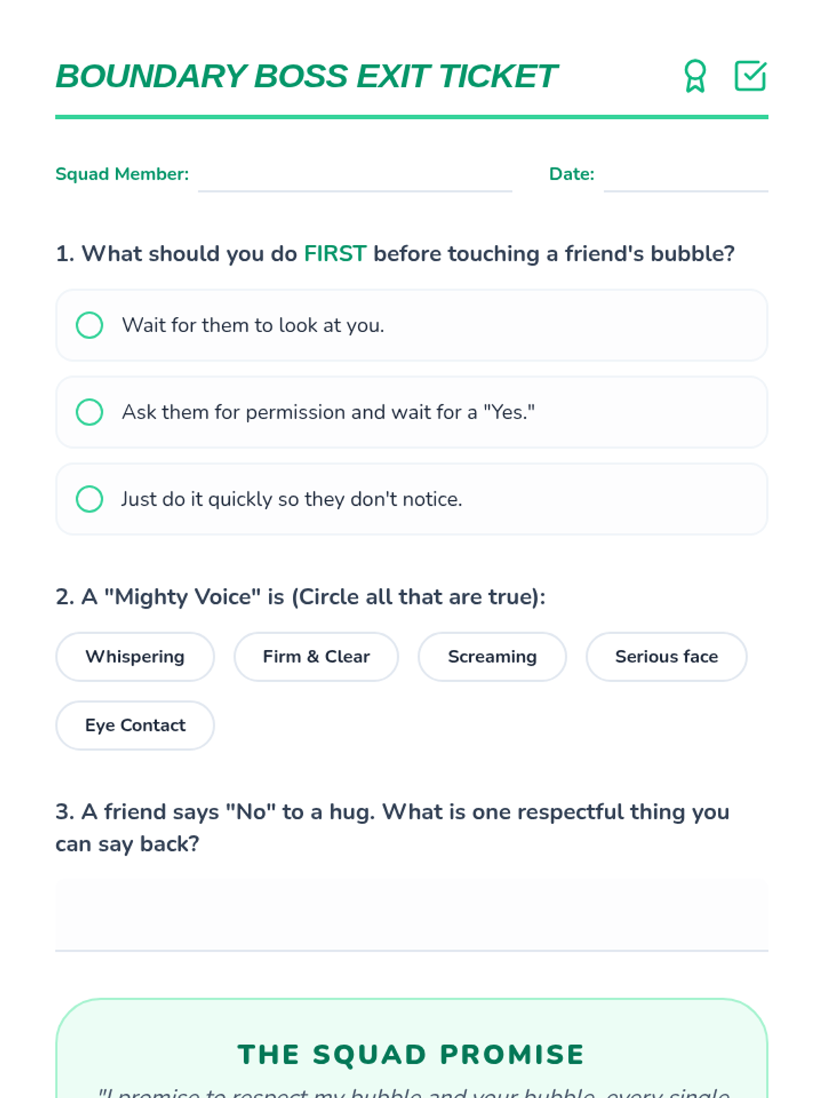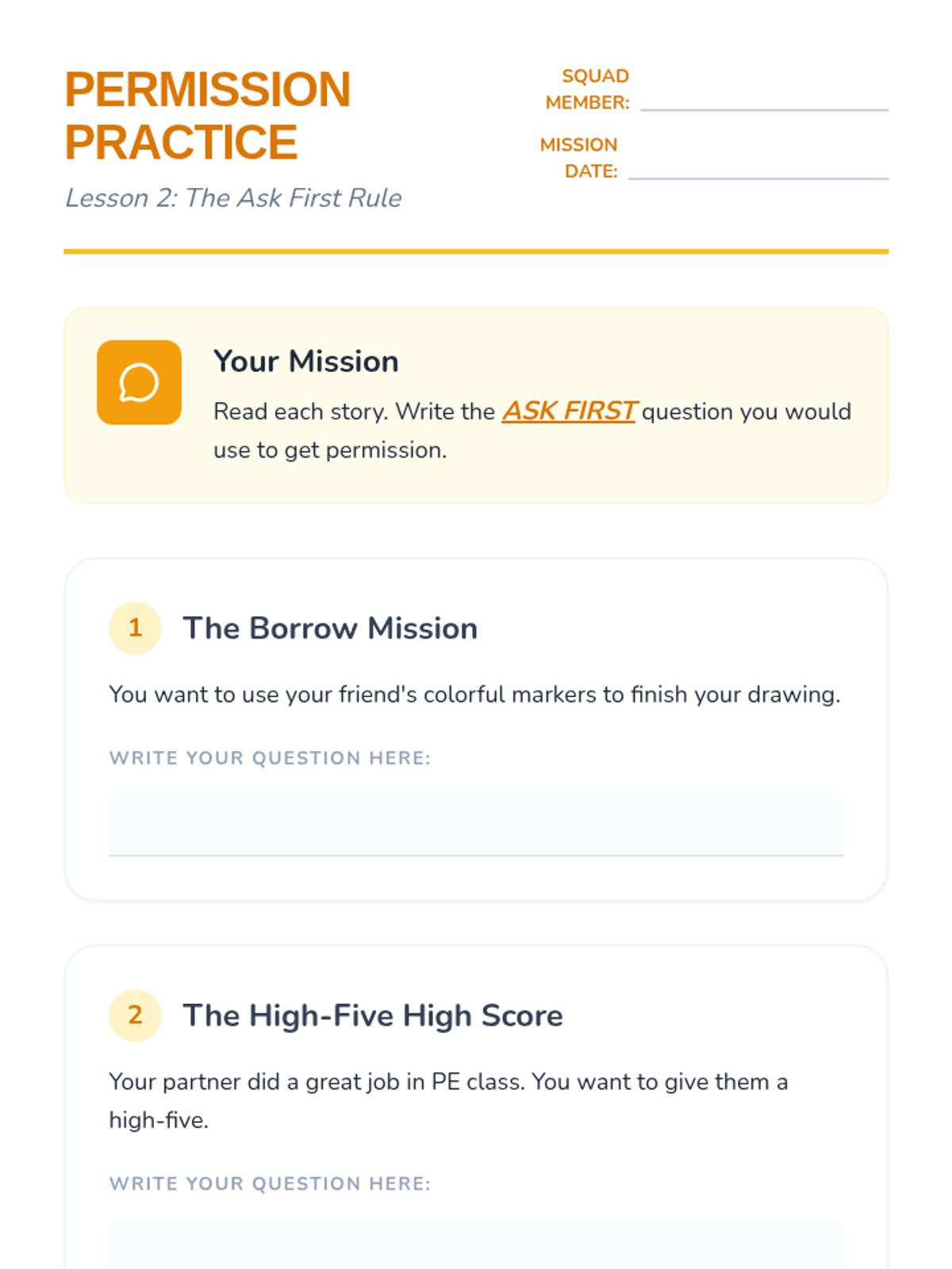This sequence introduces students to the fundamental concepts of personal space and physical boundaries through interactive movement and role-playing activities. Students learn to define their personal space, practice asking for consent, and develop assertive communication skills to maintain their safety and respect the boundaries of others.