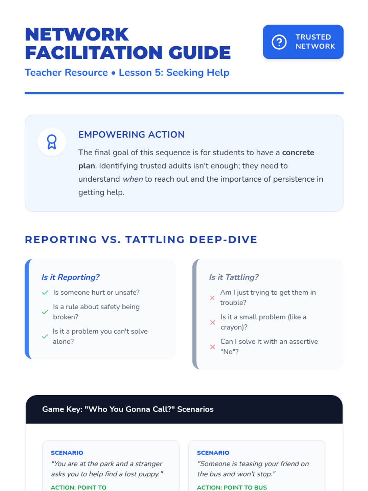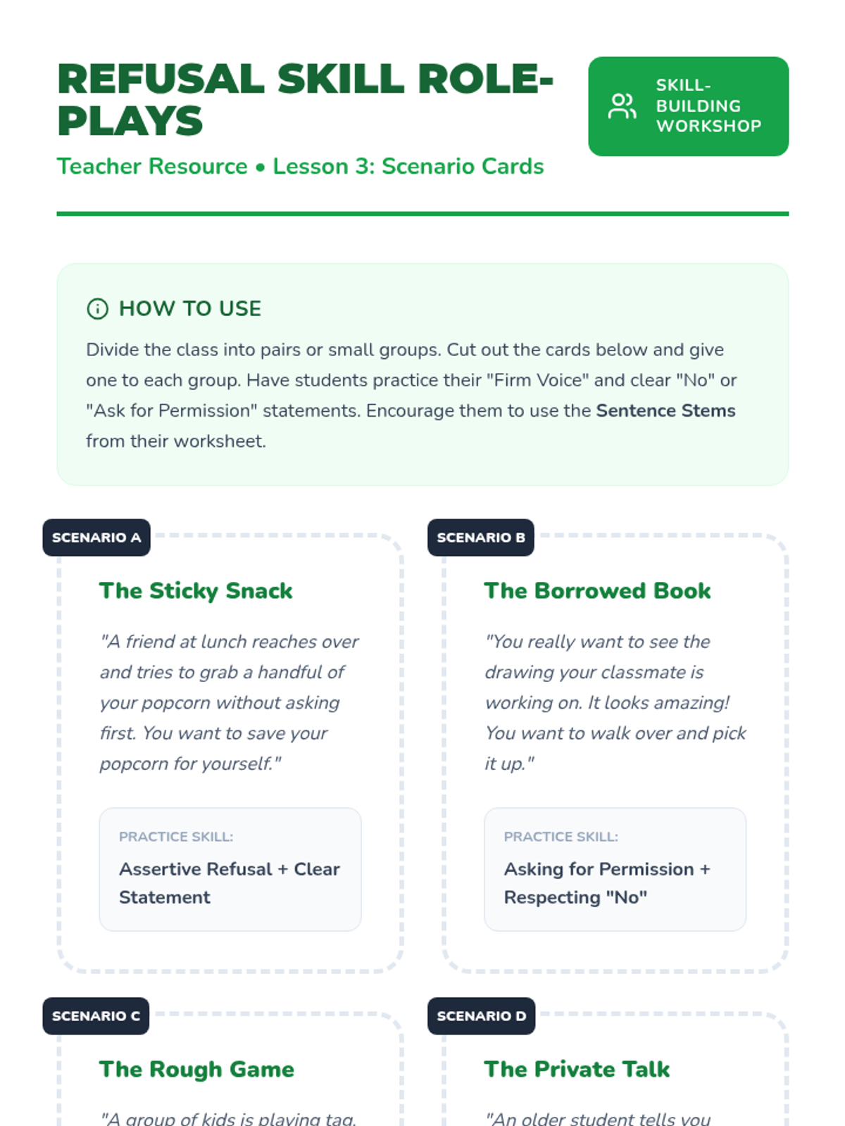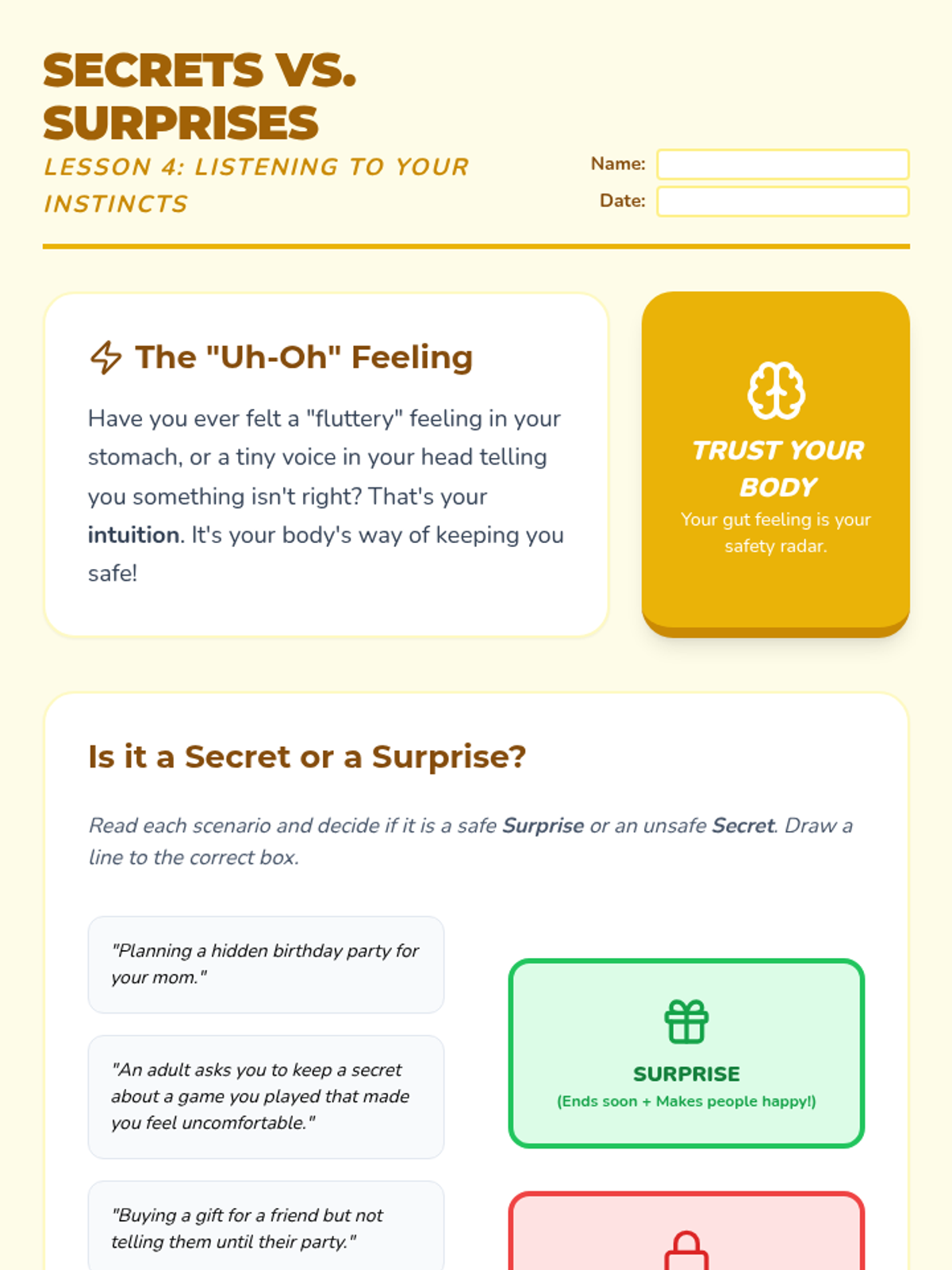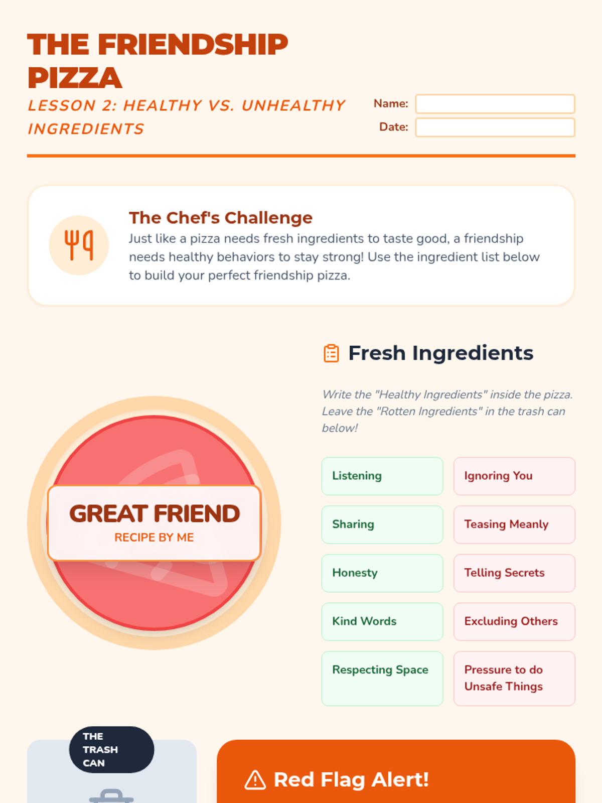 A 5-lesson sequence designed for 4th-grade students to understand personal boundaries, differentiate between healthy and unhealthy relationship traits, practice assertive communication, and build a trusted adult safety network. Students develop the self-awareness and practical skills needed to navigate social interactions safely and confidently.