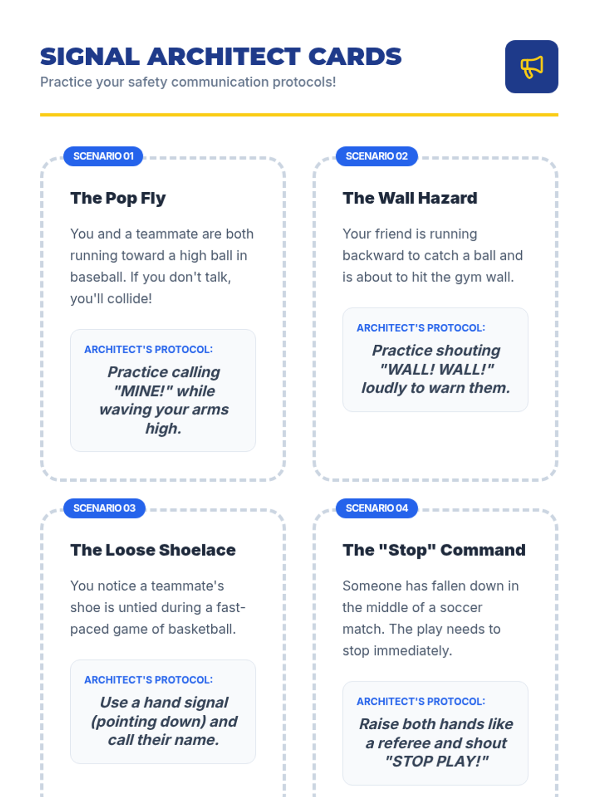 This project-based sequence for 3rd graders explores how safety protocols, rules, and communication prevent injuries in physical activities. Students transition from analyzing existing rules to designing and teaching their own 'Safe Games,' emphasizing safety as a shared responsibility.