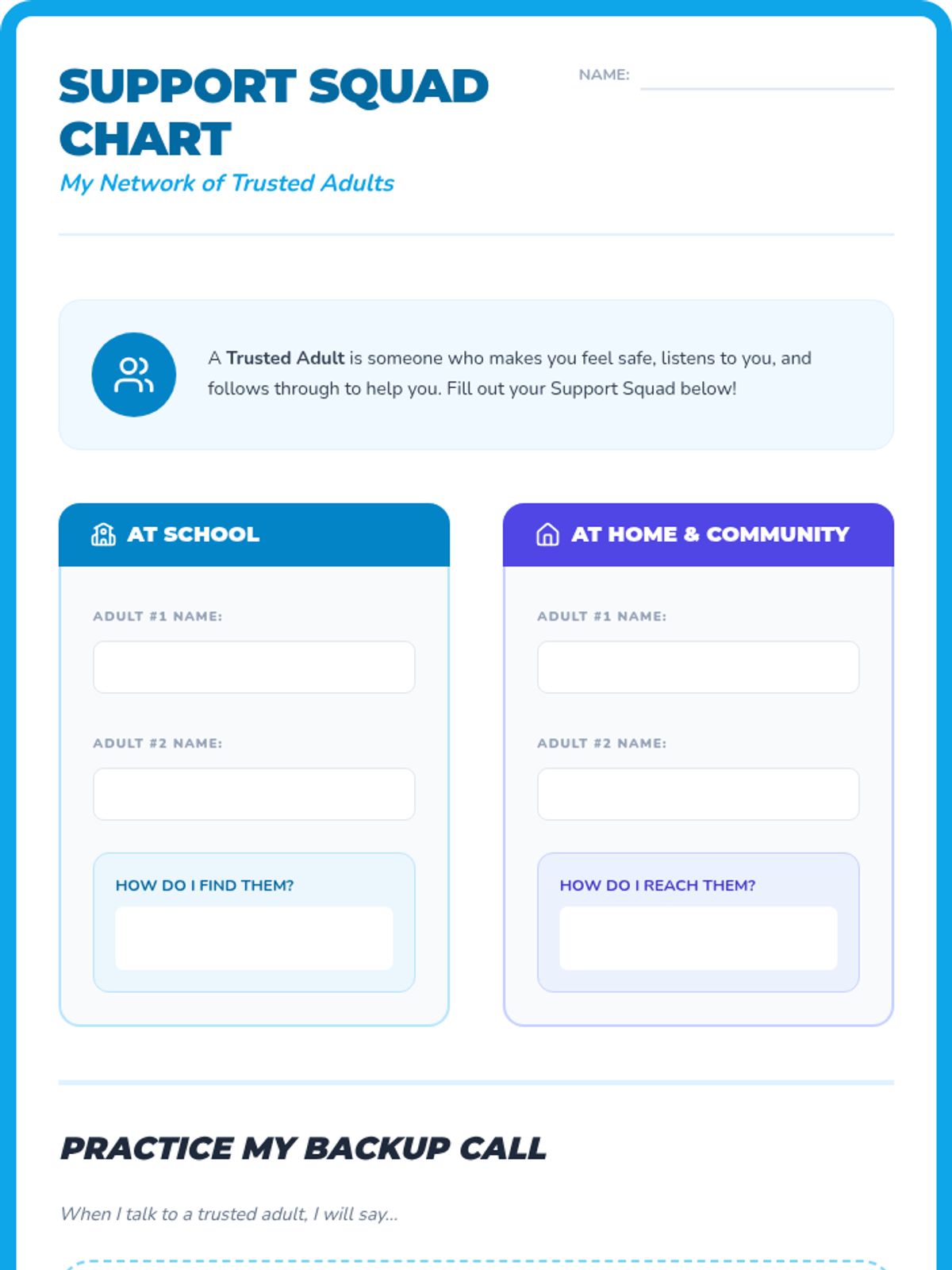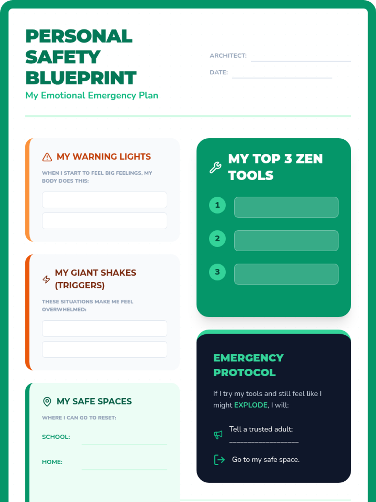 A comprehensive 5-lesson unit for 4th graders focused on identifying physiological stress signals, understanding emotional triggers, practicing grounding techniques, and developing a personal safety plan with a support network.